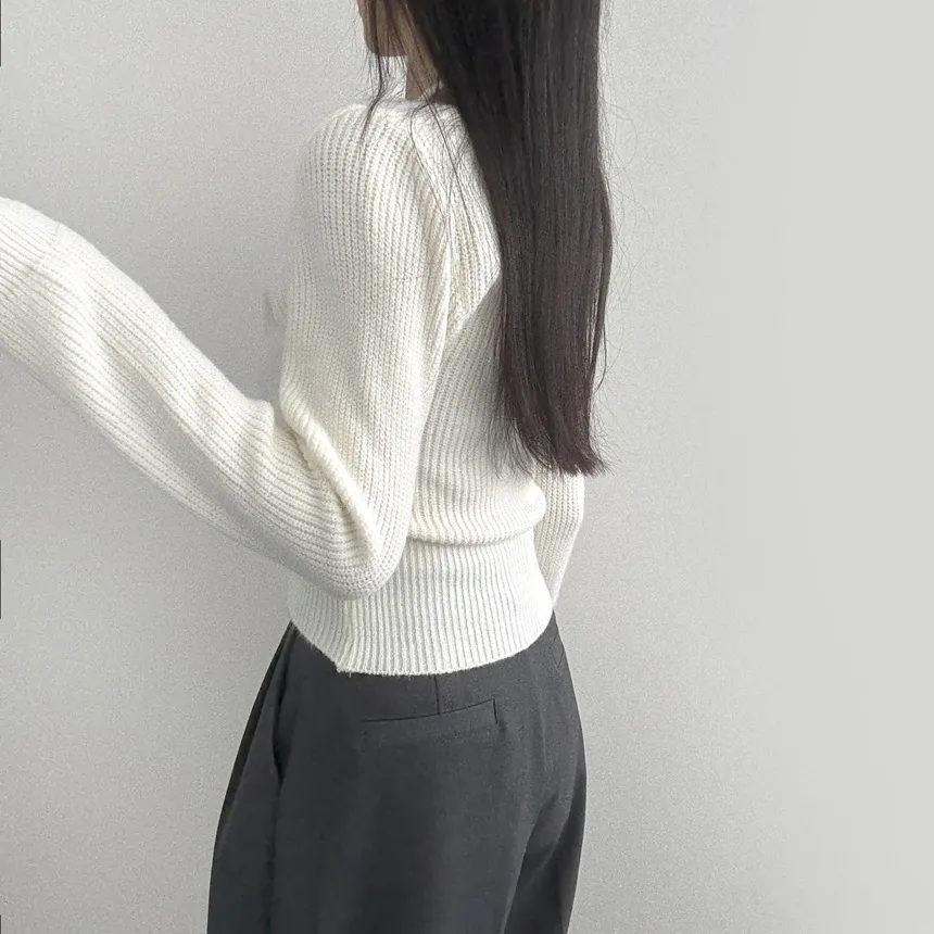 Vネック長袖ボタンスリーブニット