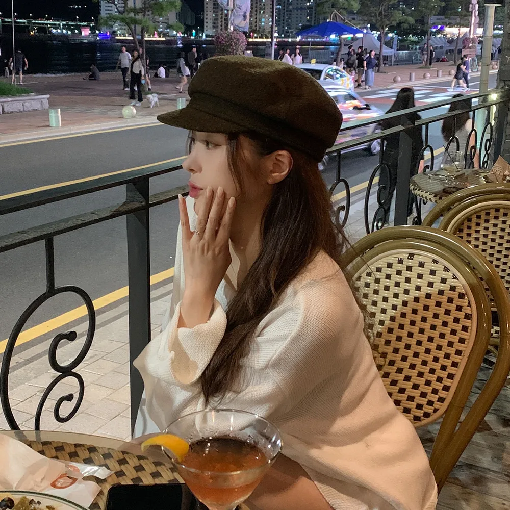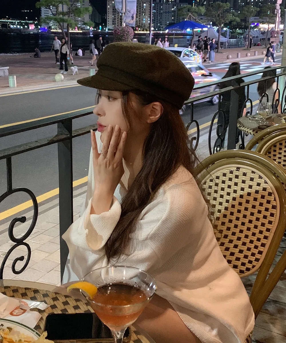 ウール混ゴールドボタンキャスケット