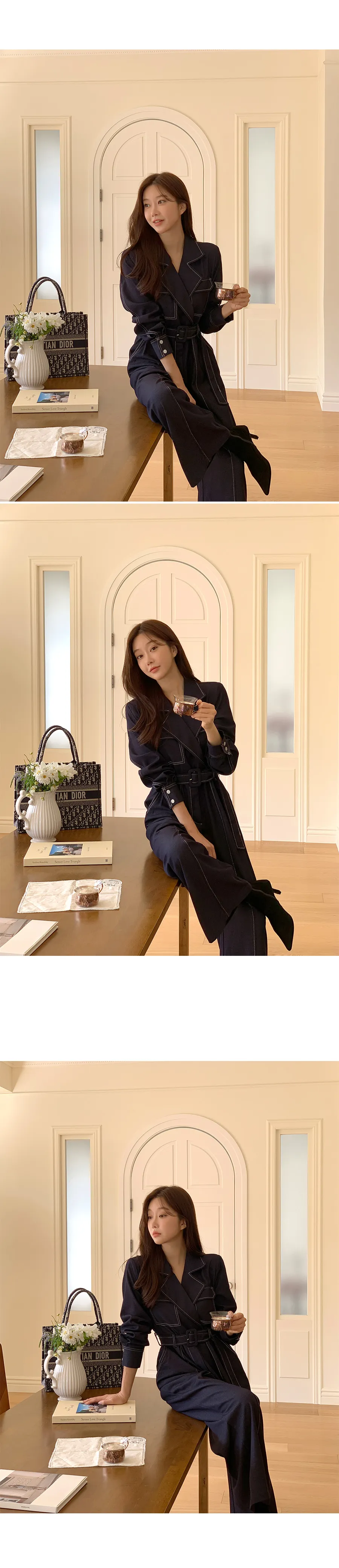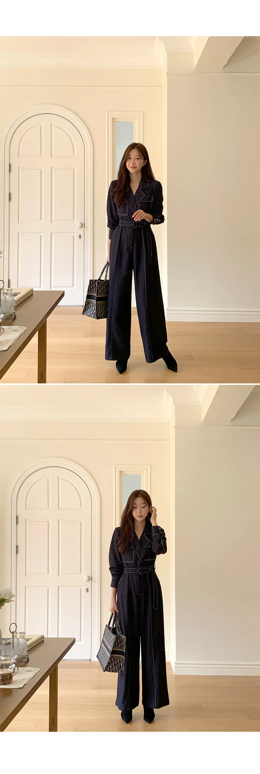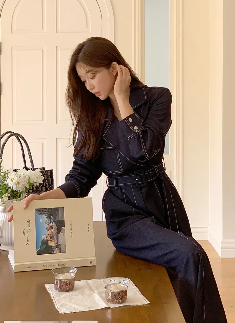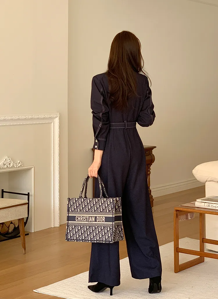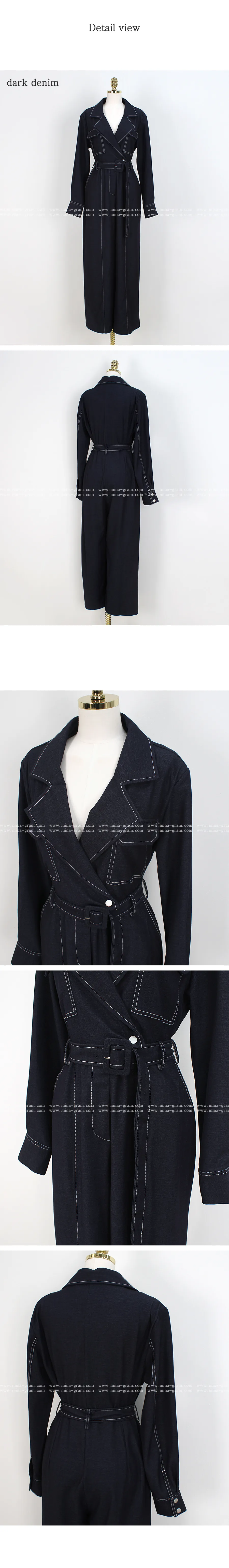 ベルト付ステッチ長袖カラーオールインワン・S1938322
