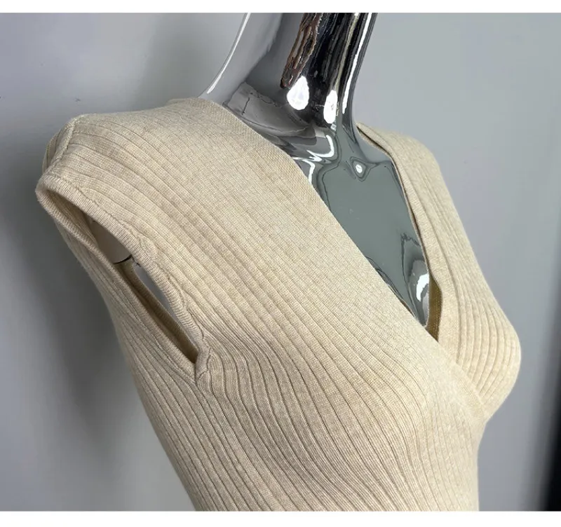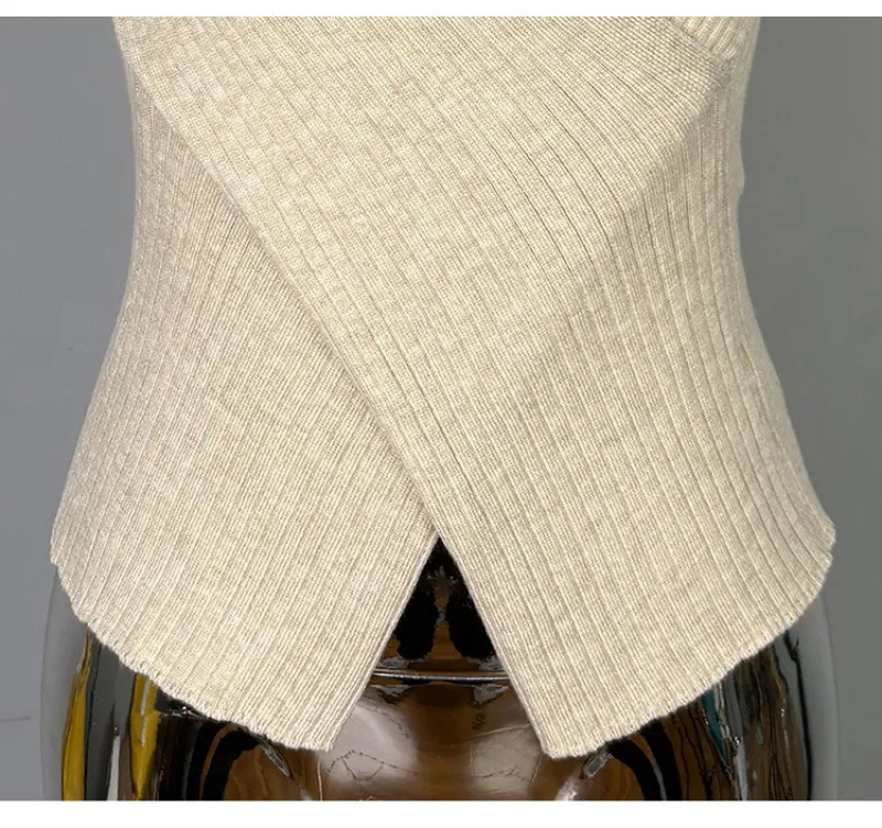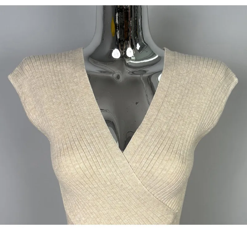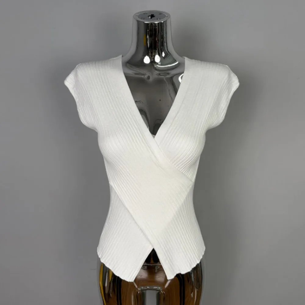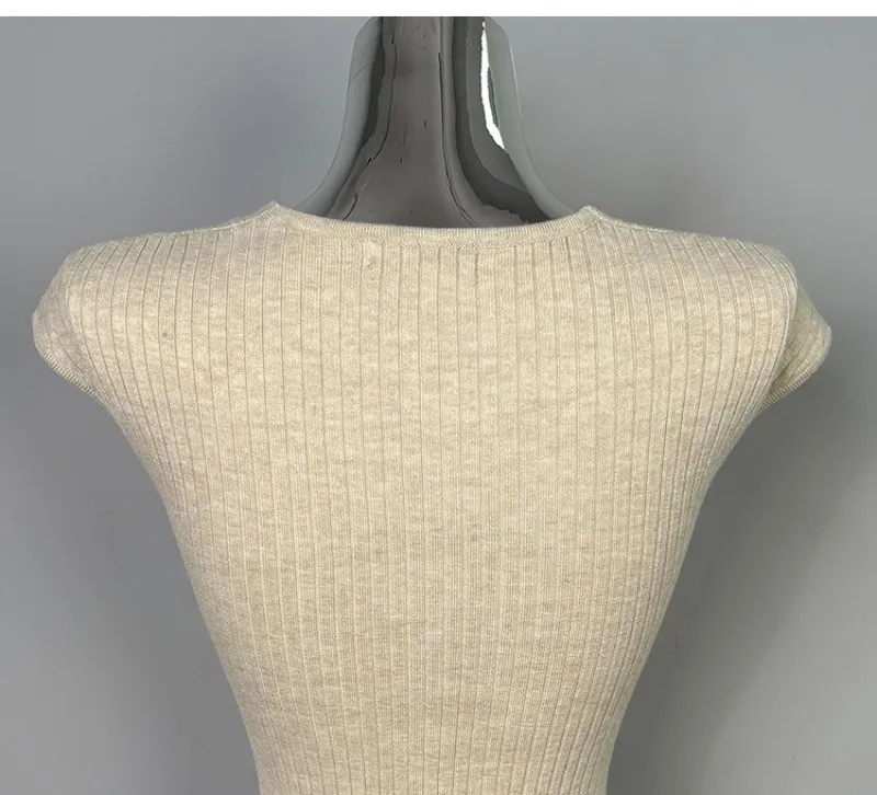 クロスがポイントの半袖ニット。