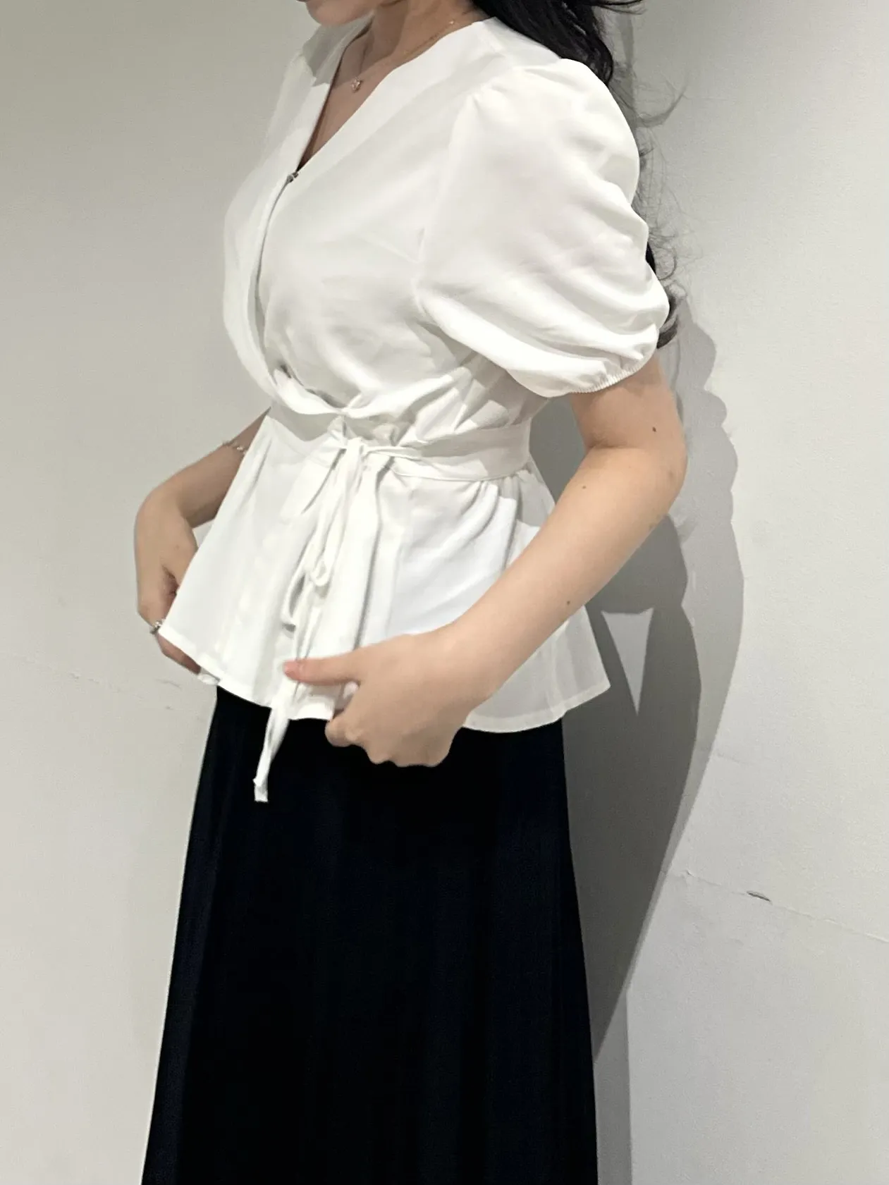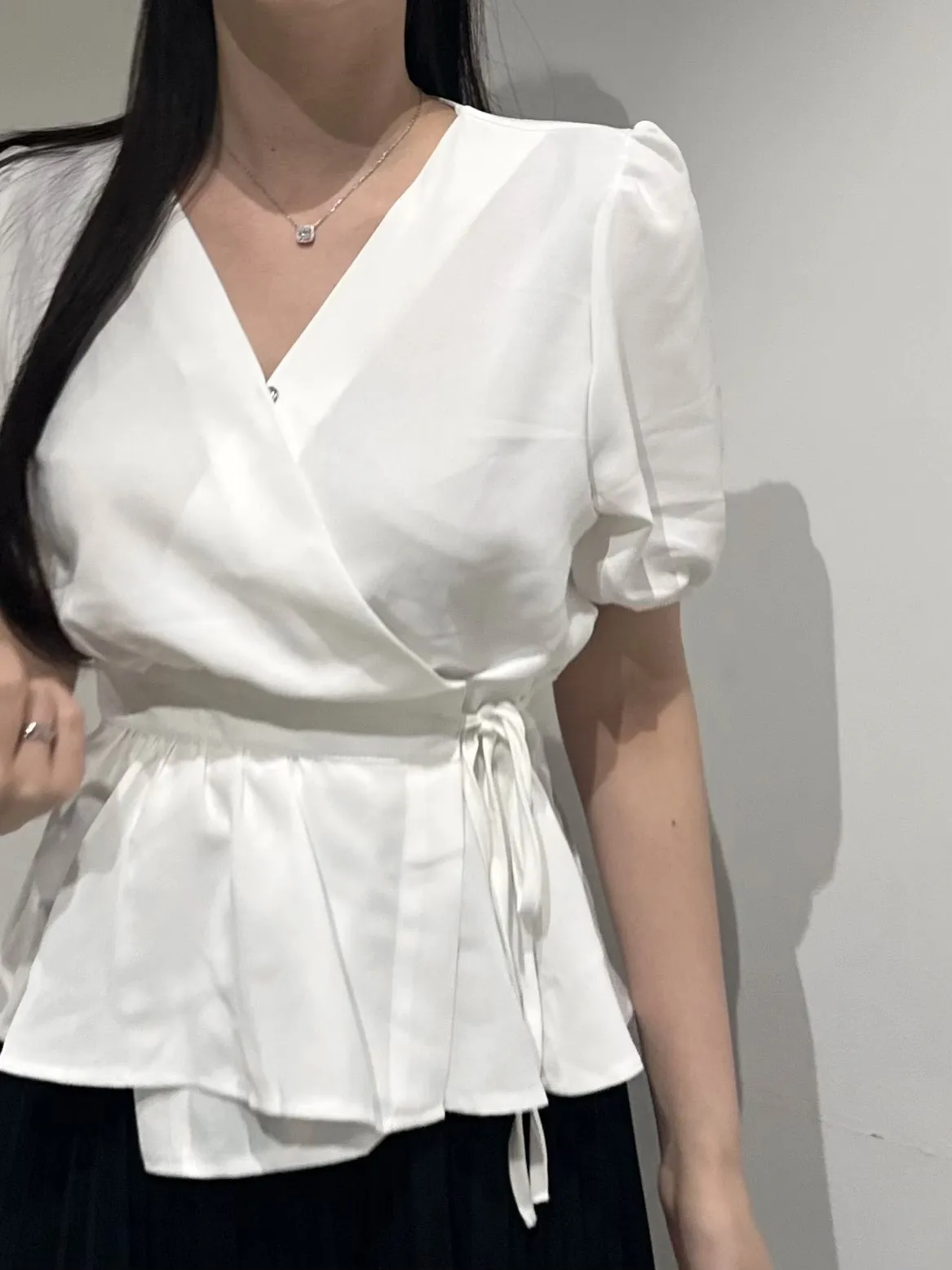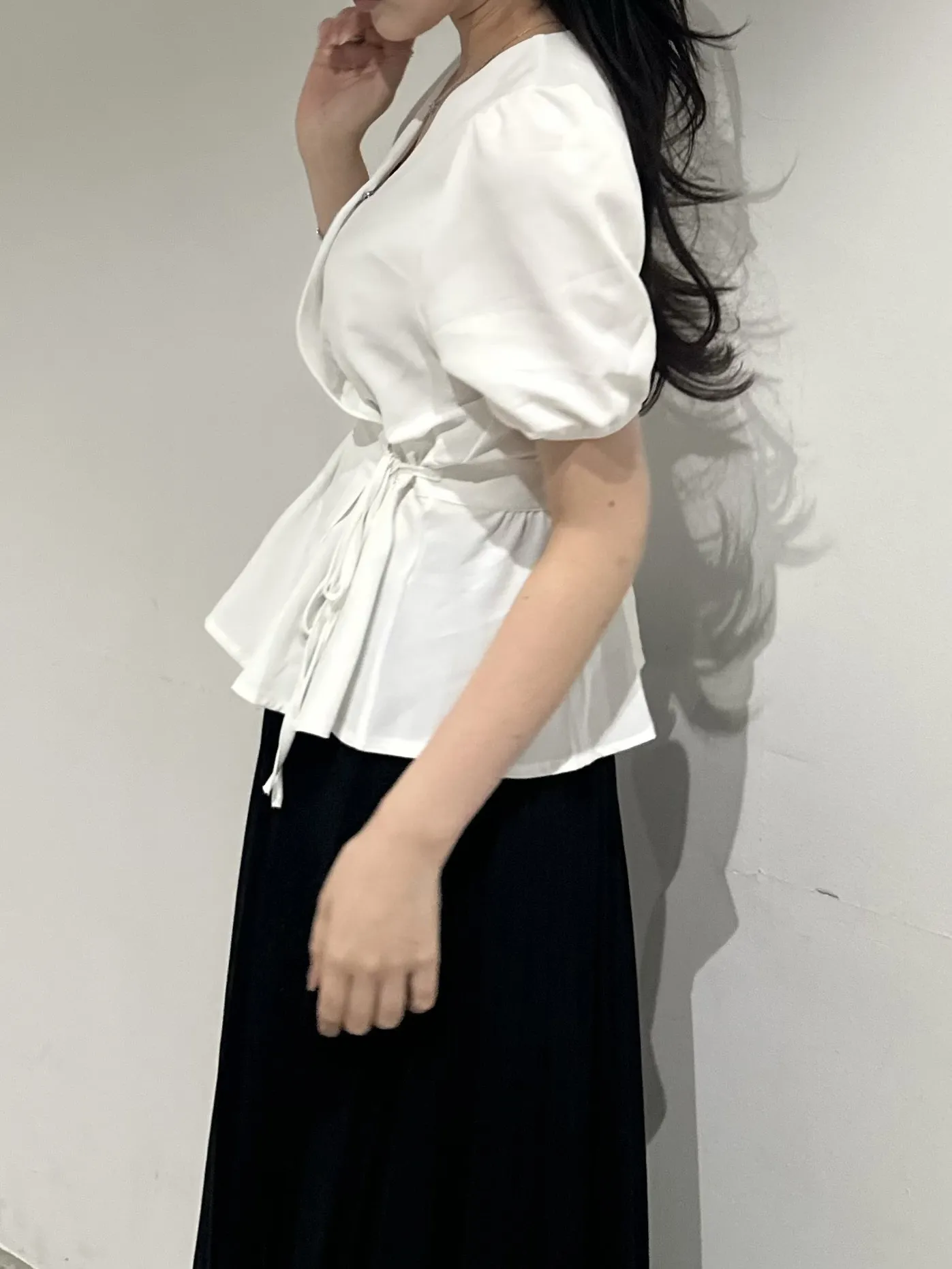 ペプラムパフスリーブ半袖ブラウス