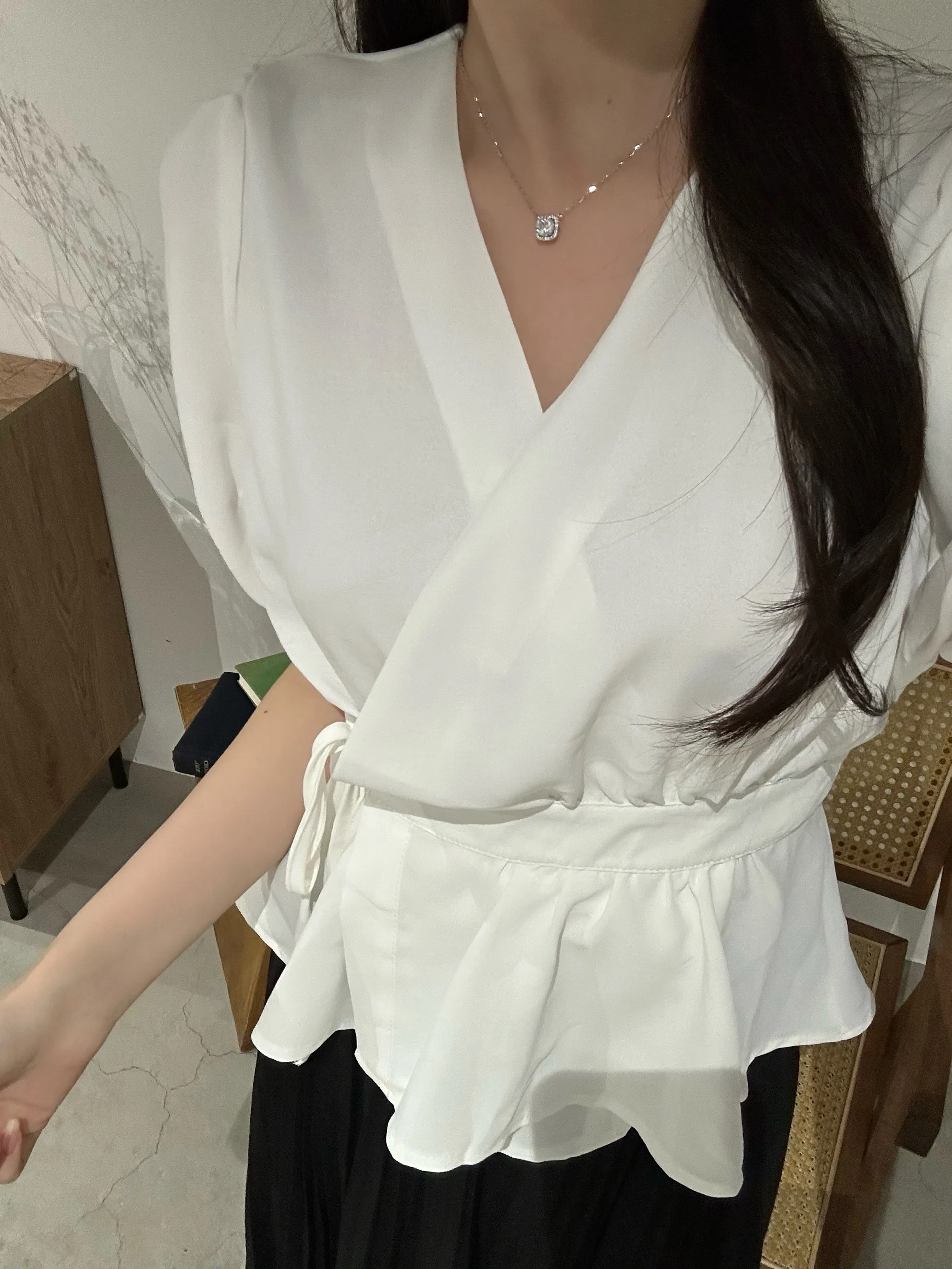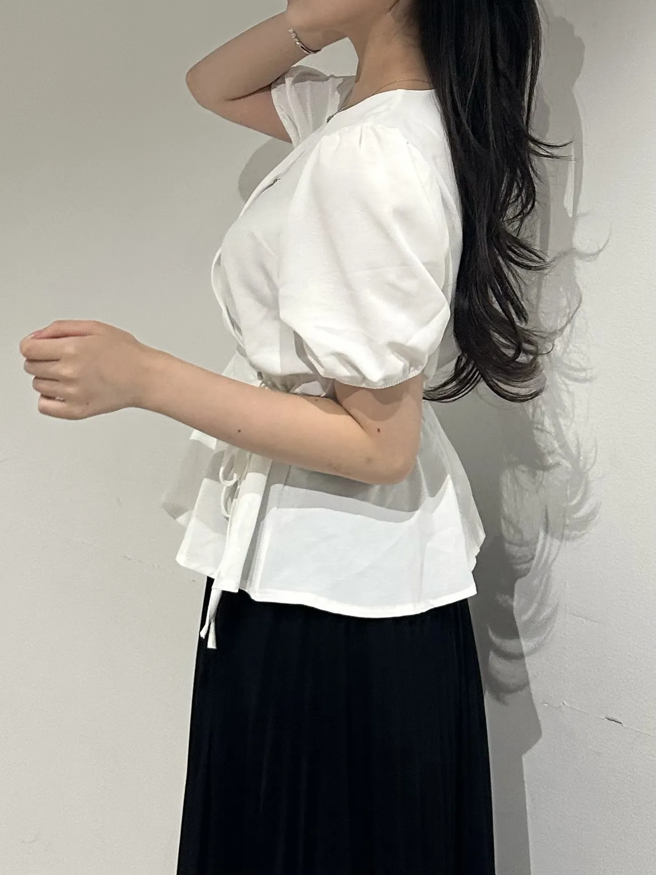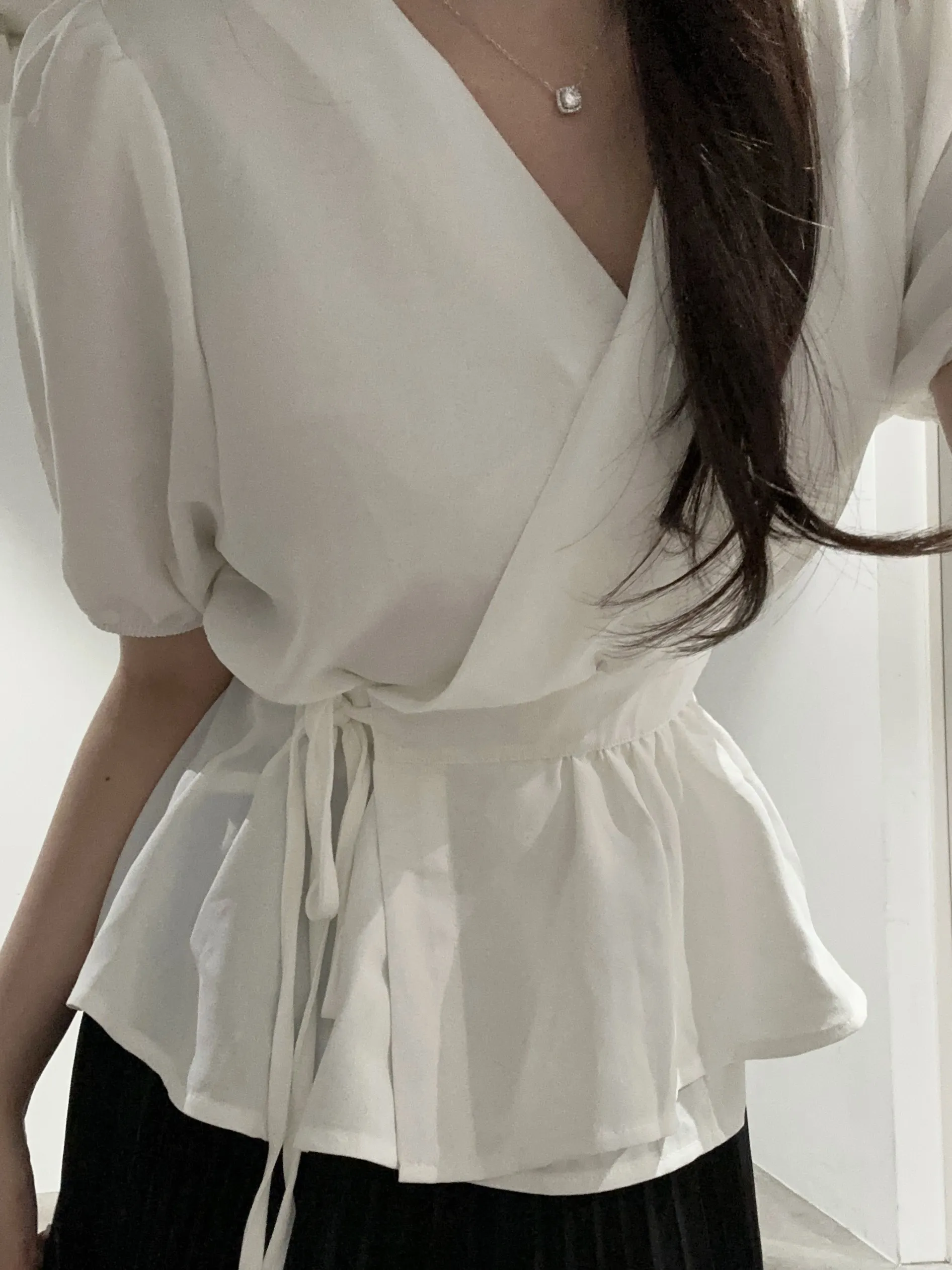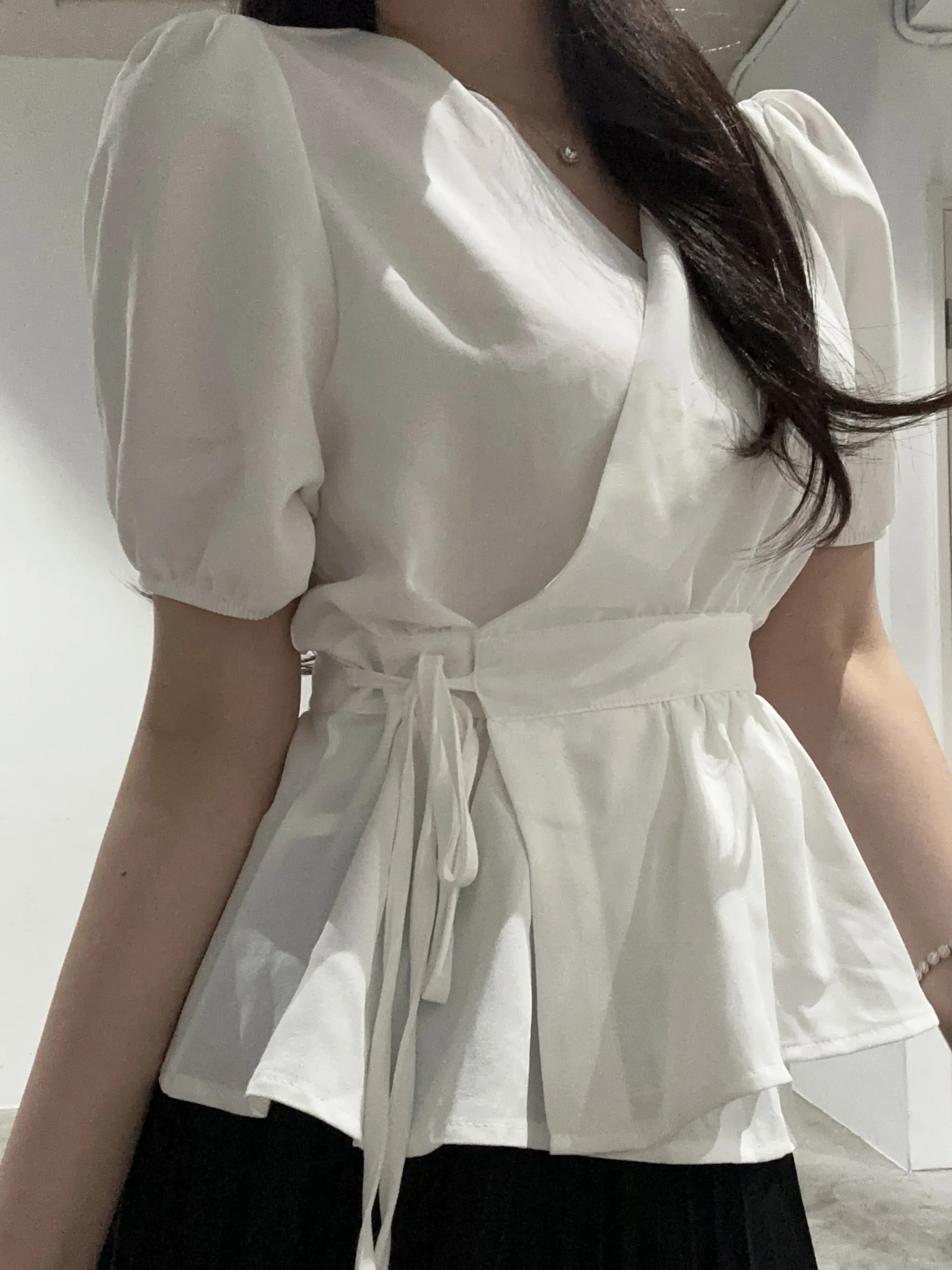 ペプラムパフスリーブ半袖ブラウス