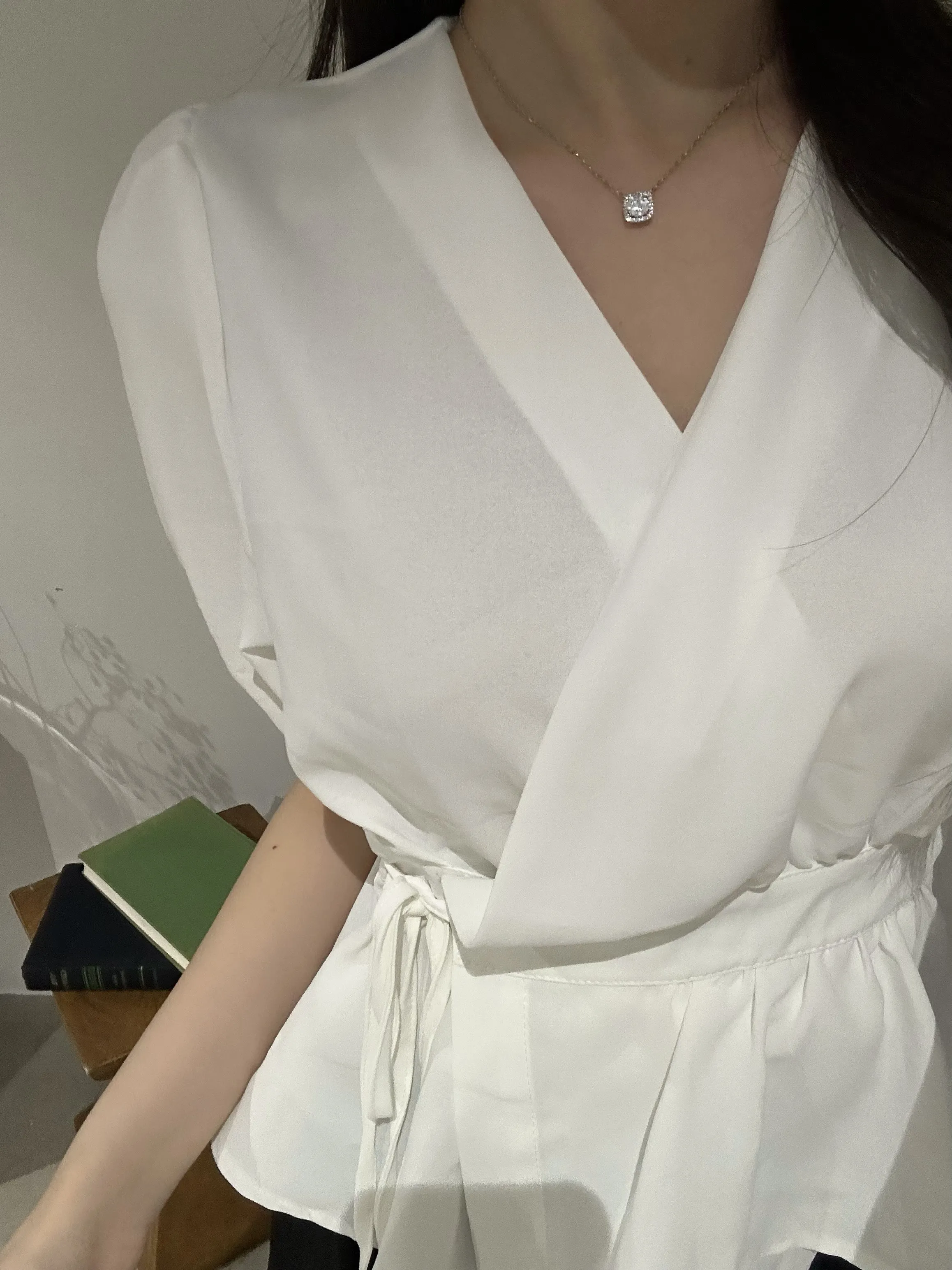 Vネックシャーリングブラウス