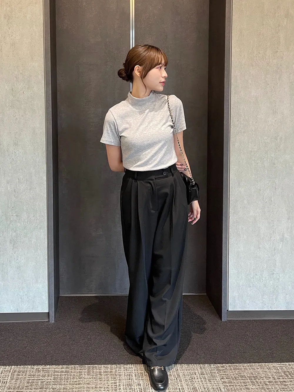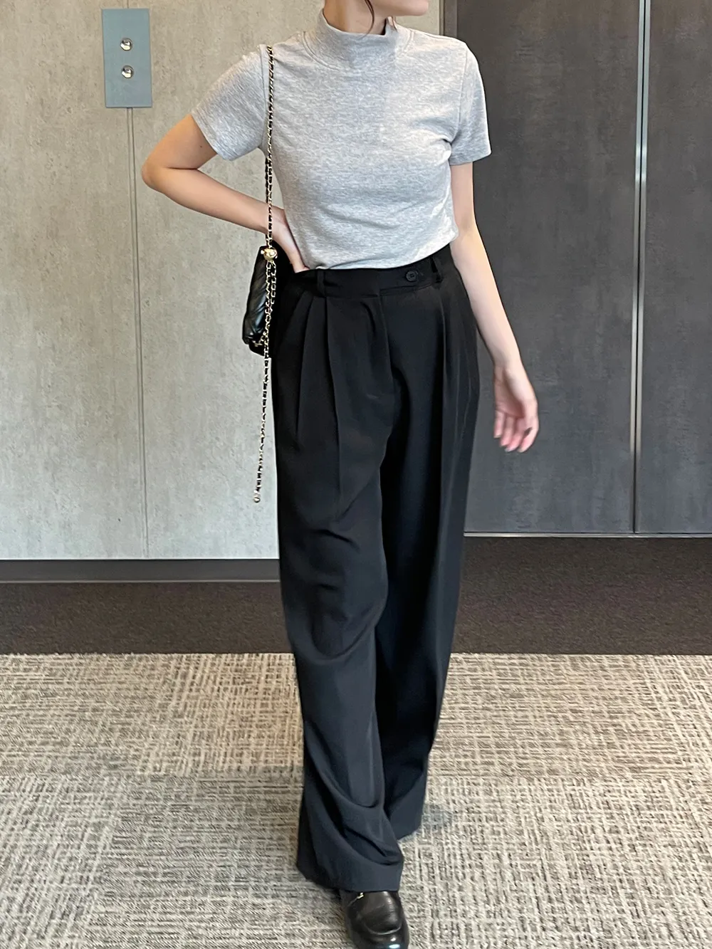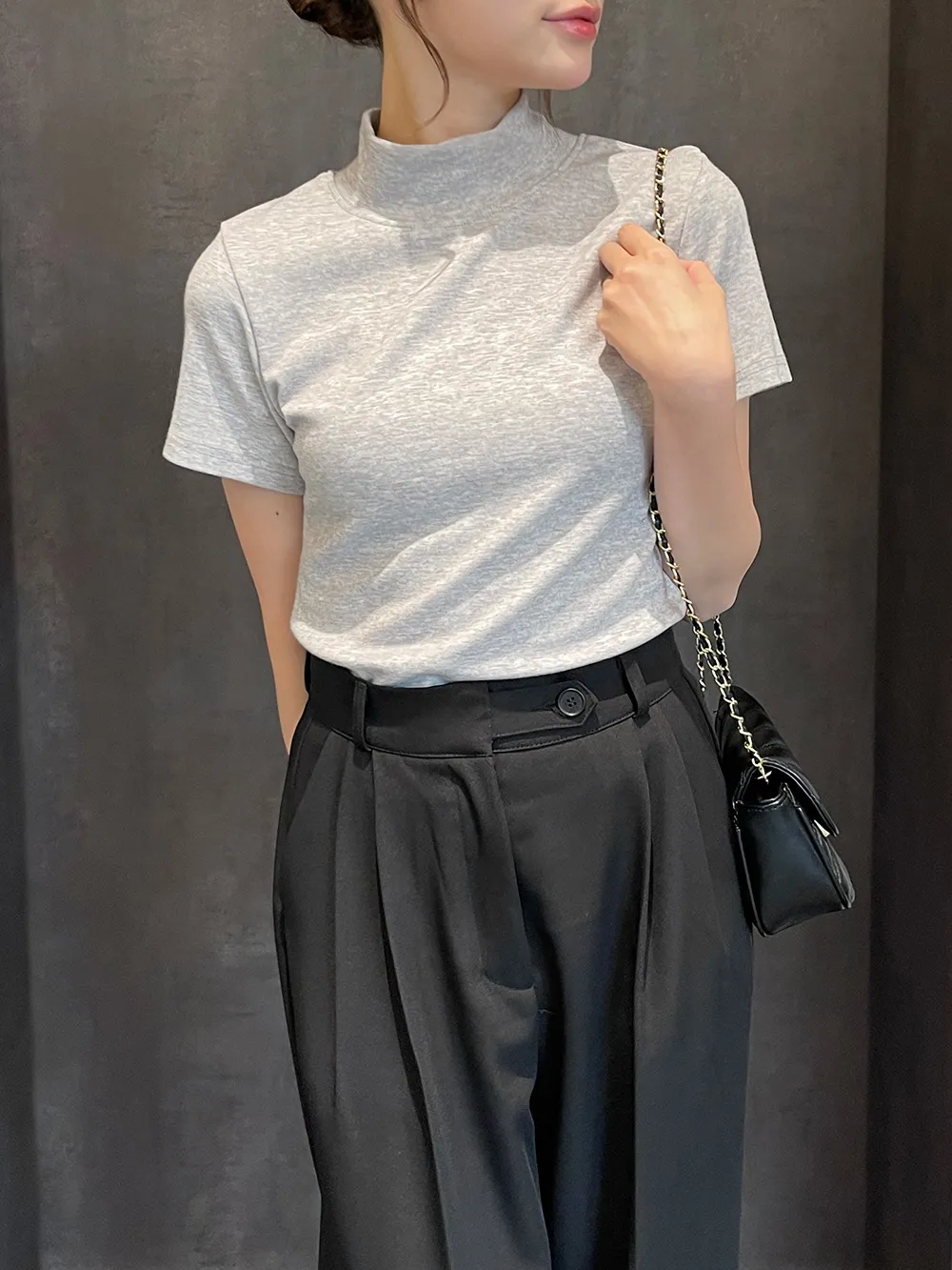 メランジソフトタートルネックスリム半袖Tシャツ