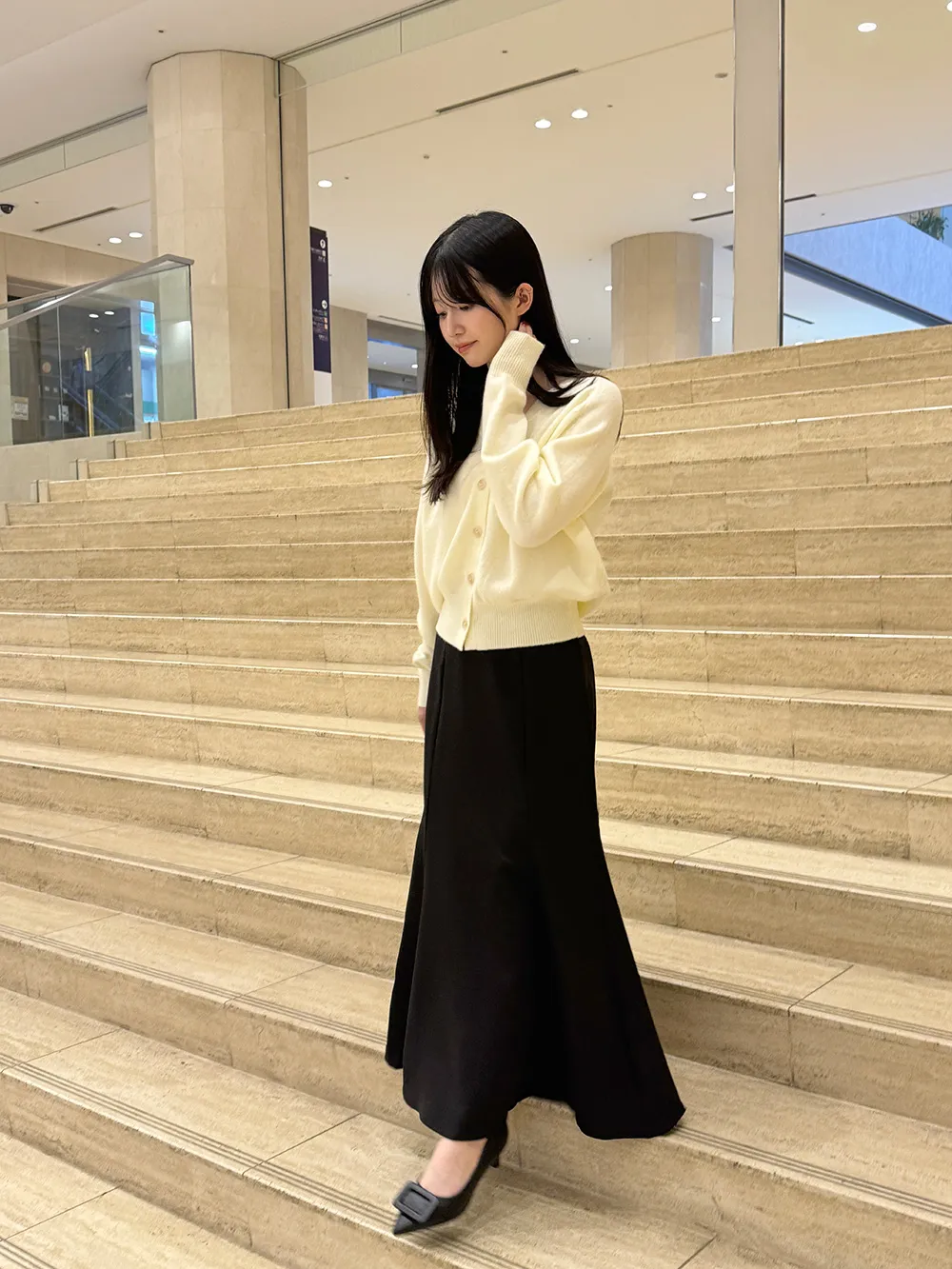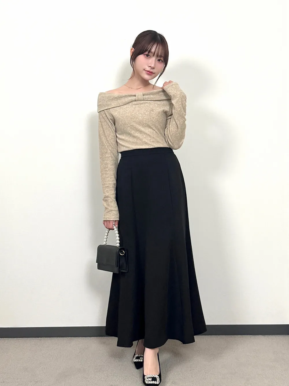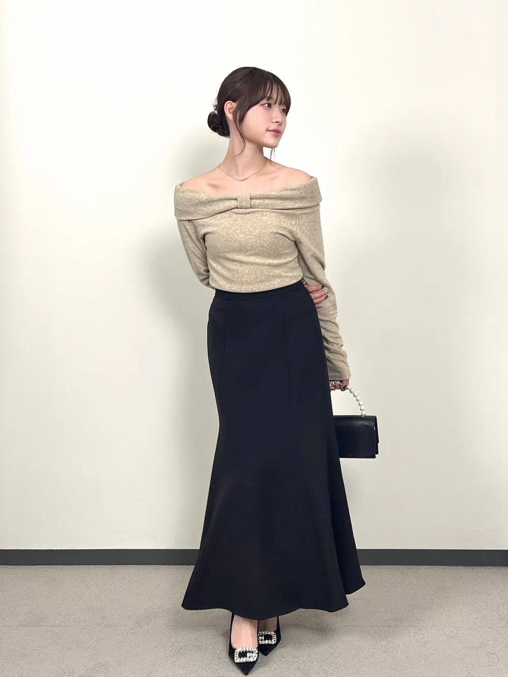 ニットやブラウスはもちろん、スウェットでカジュアルダウンすると韓国風に◎