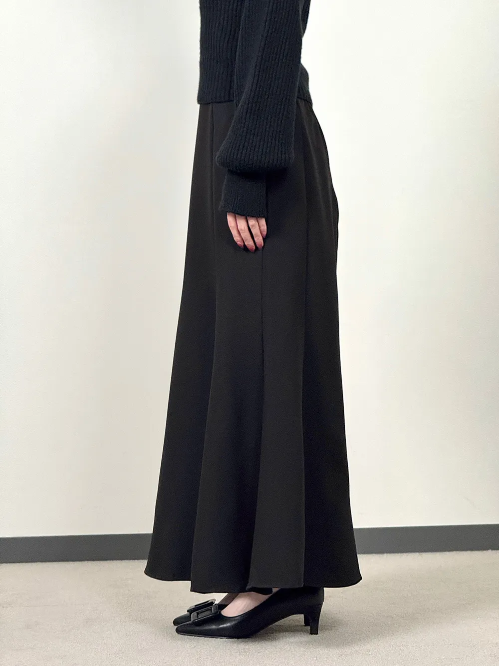 フェミニンなマーメイドスカートです。 ウエストゴムになっているので息苦しさなく着用できます。