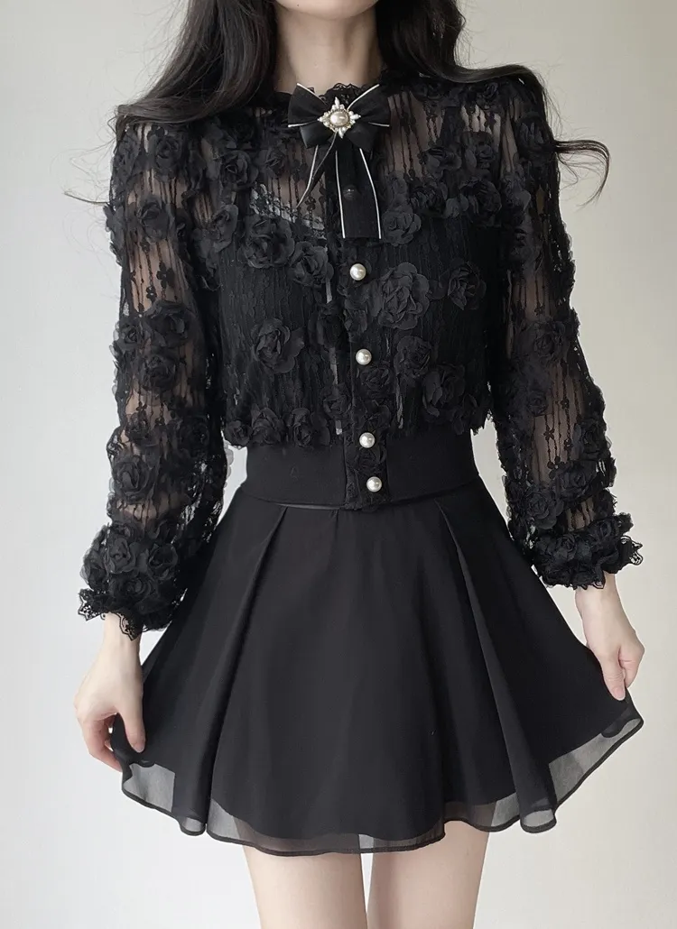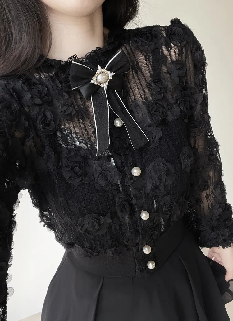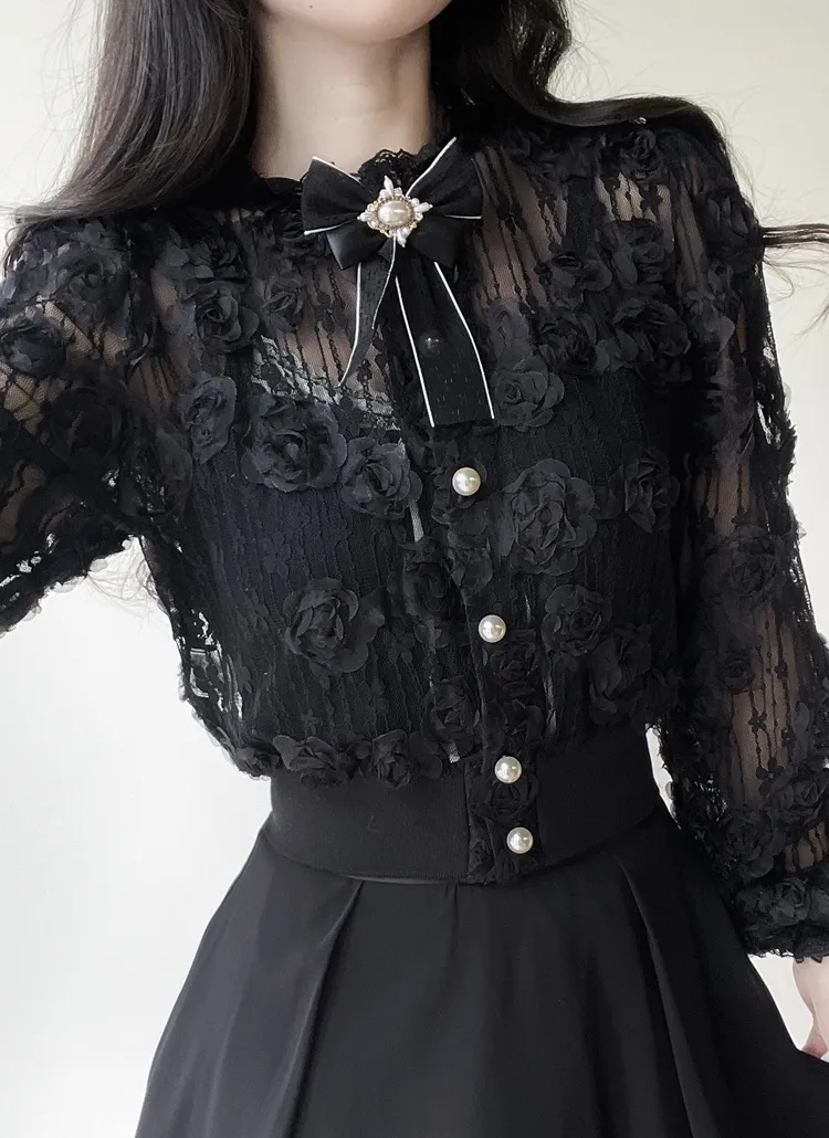 ボタンVネッククロップドスリム長袖カーディガン