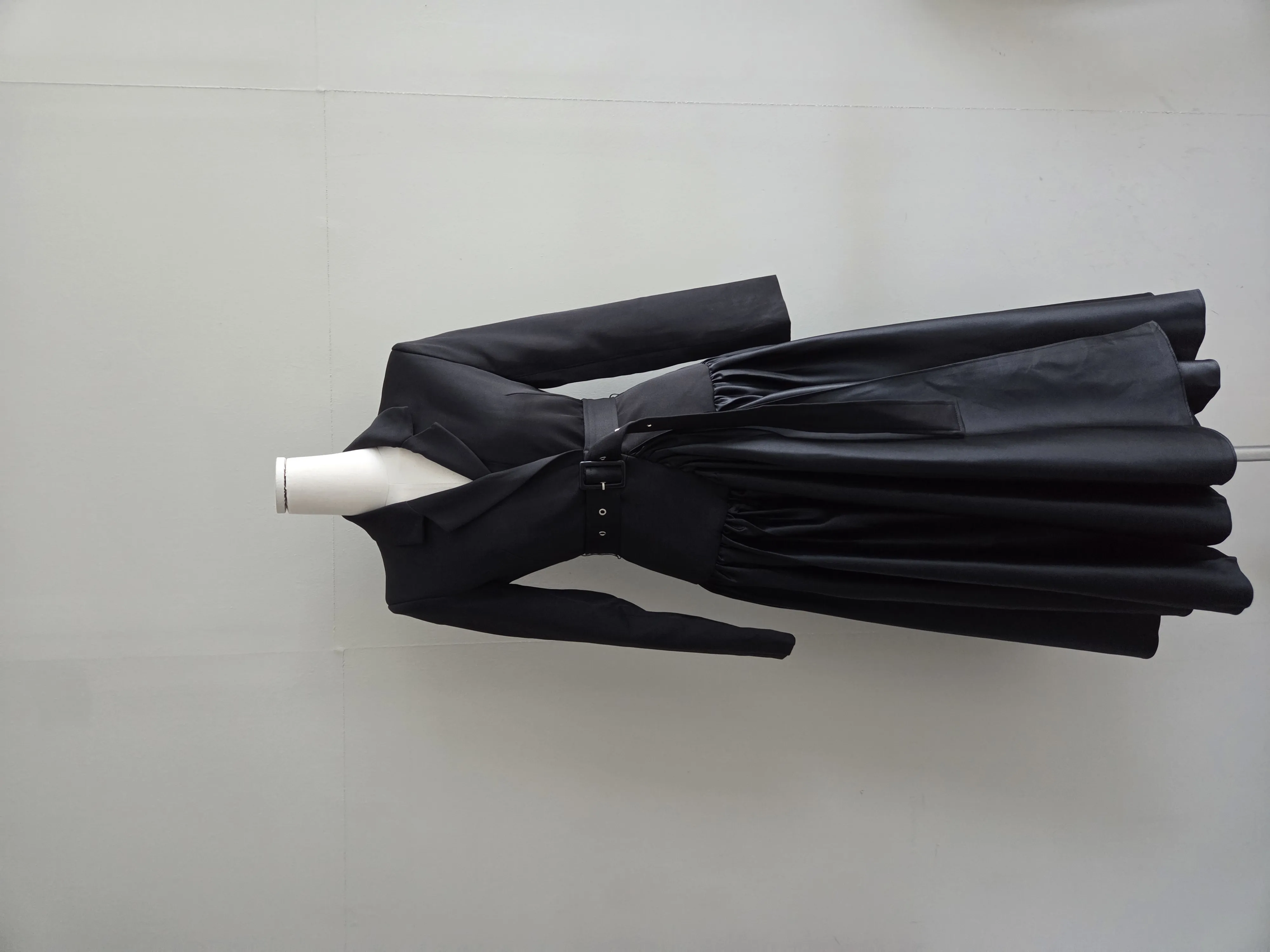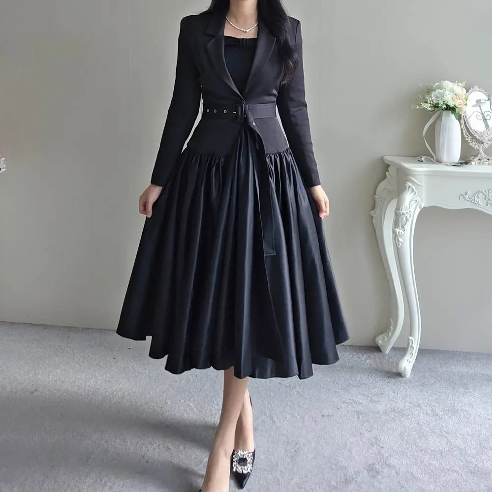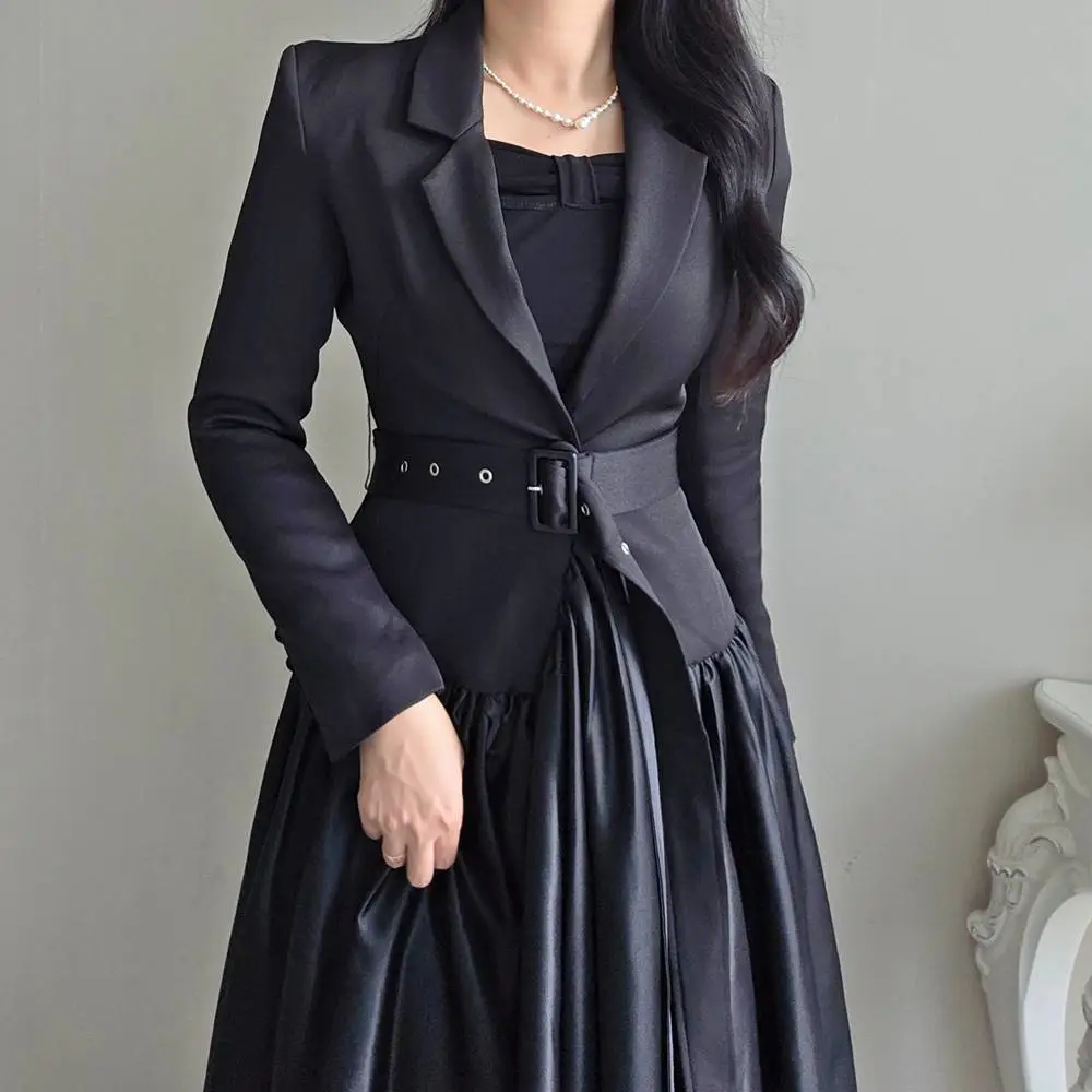 ベルト付肩パッドテーラードカラーギャザーフレアワンピース・S1939069