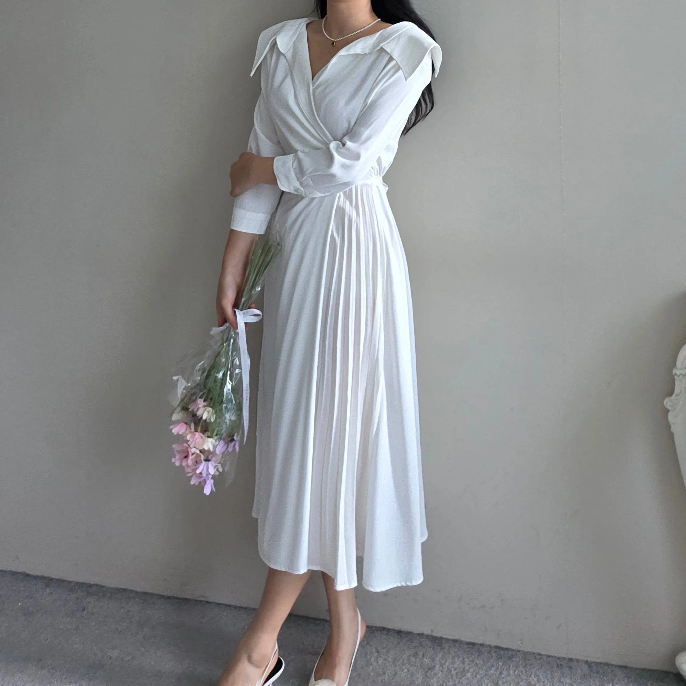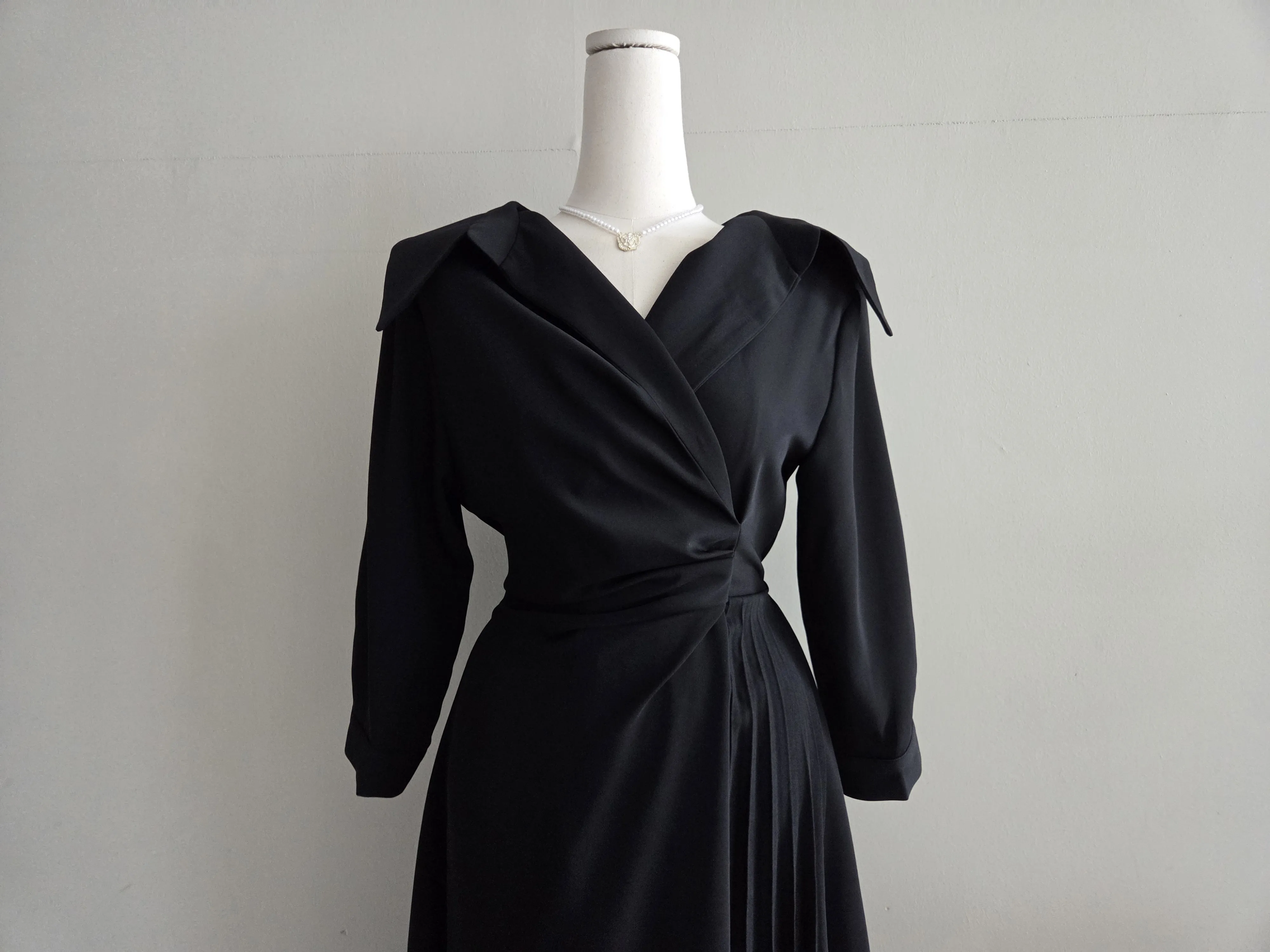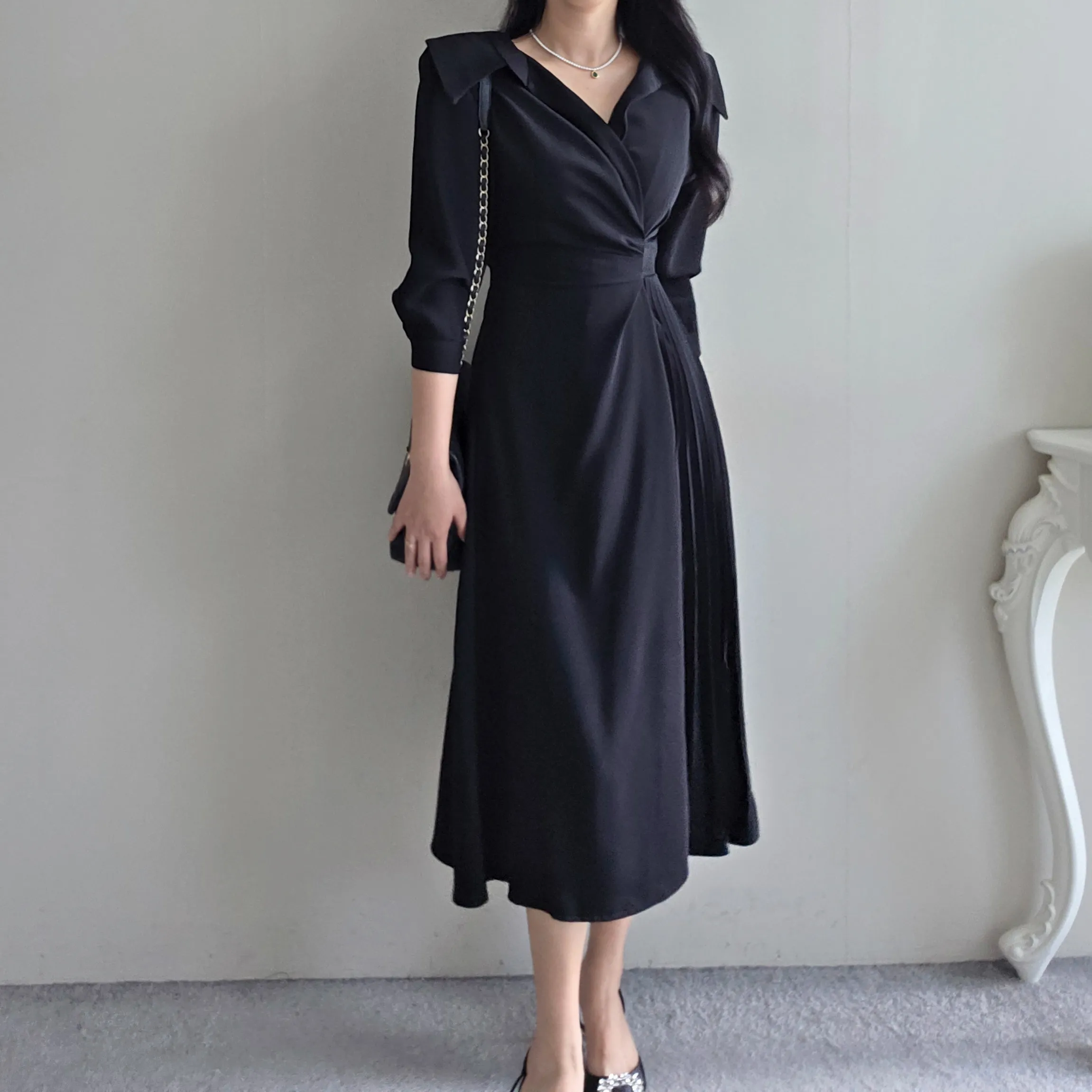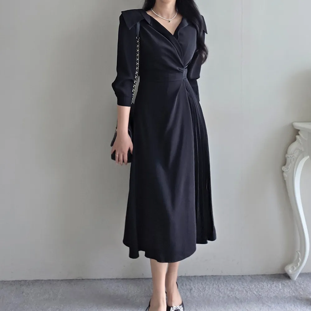 ロングカラーラップ調バックゴムバックストラッププリーツジップアップワンピース・S1939188