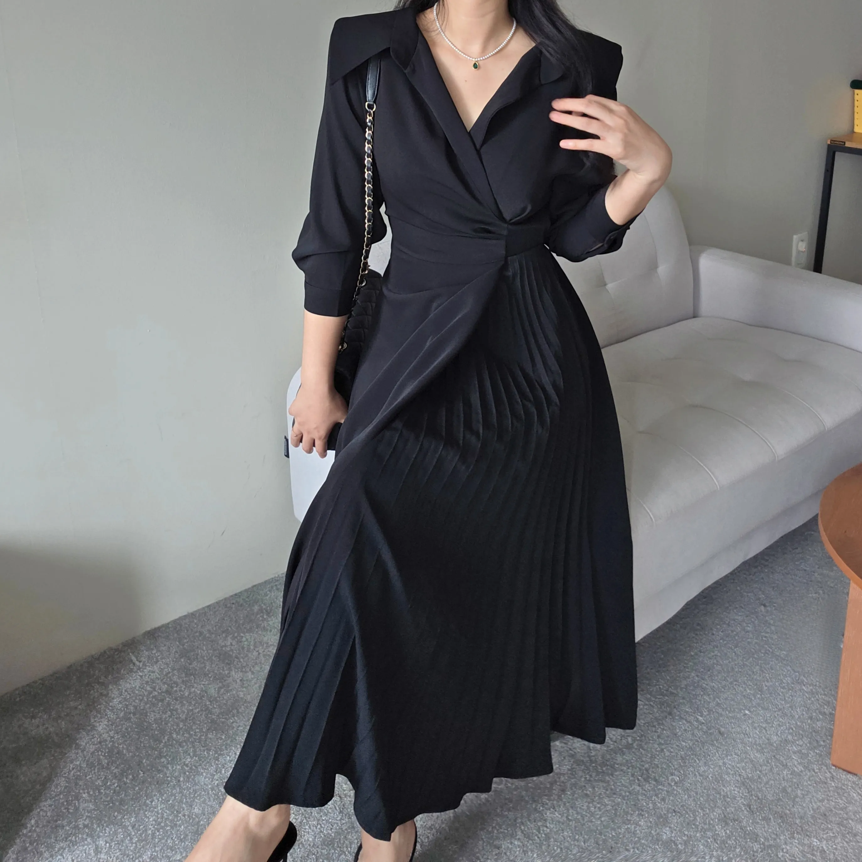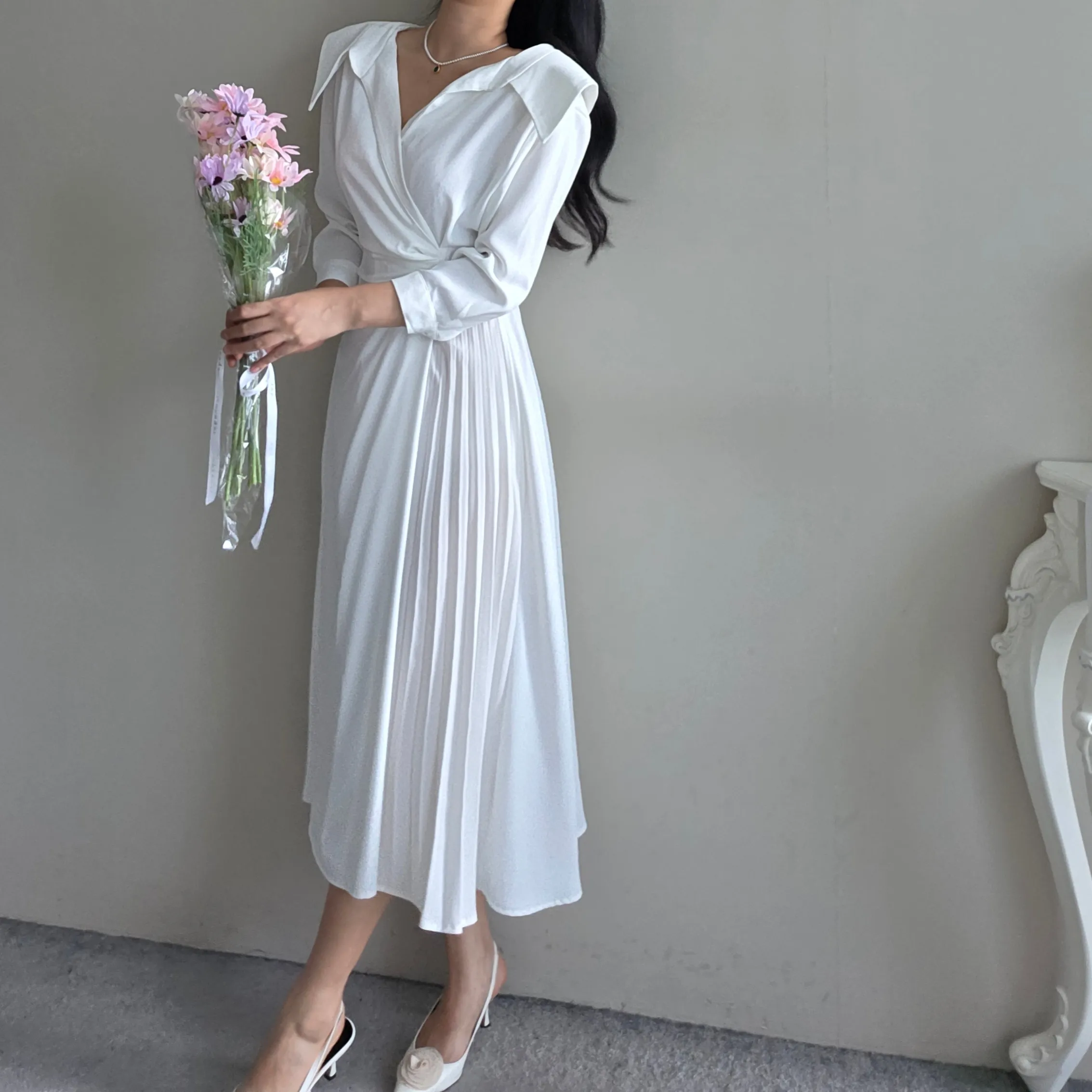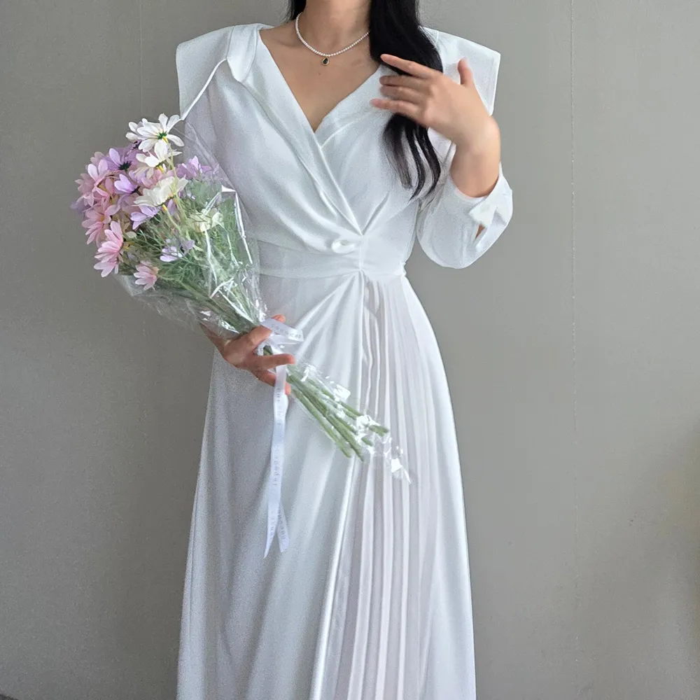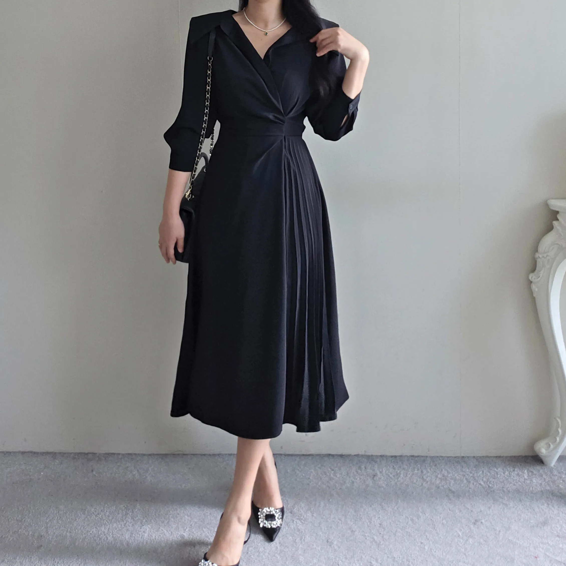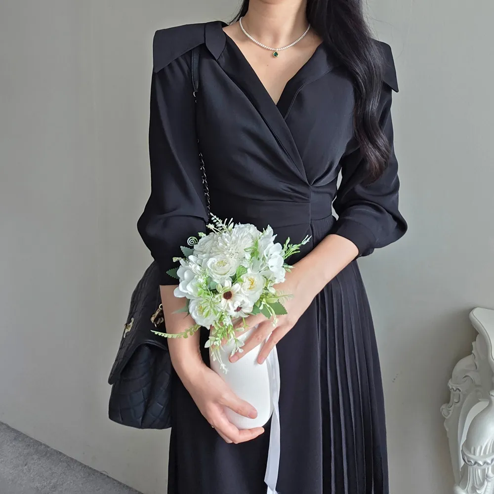 ロングカラーラップ調バックゴムバックストラッププリーツジップアップワンピース・S1939188