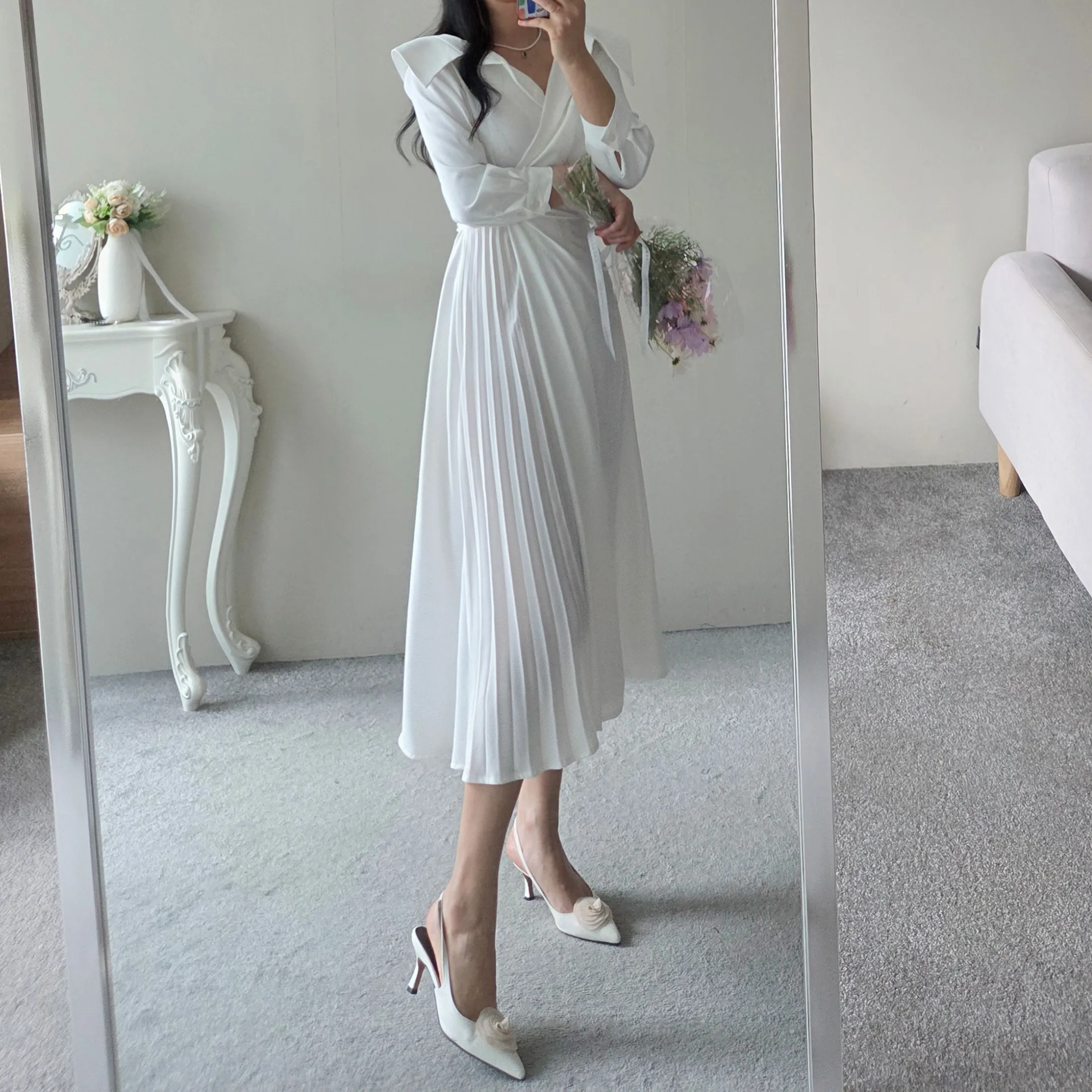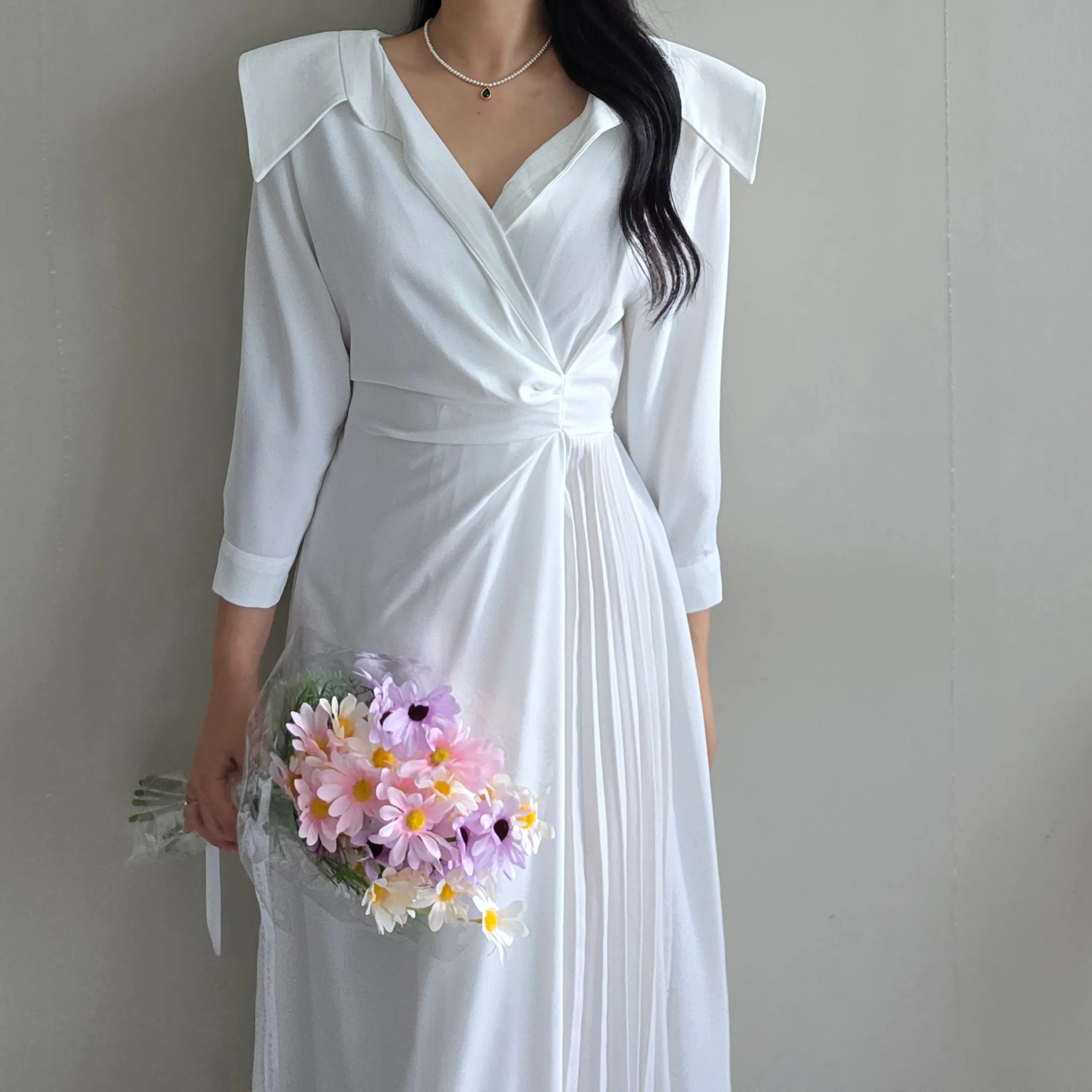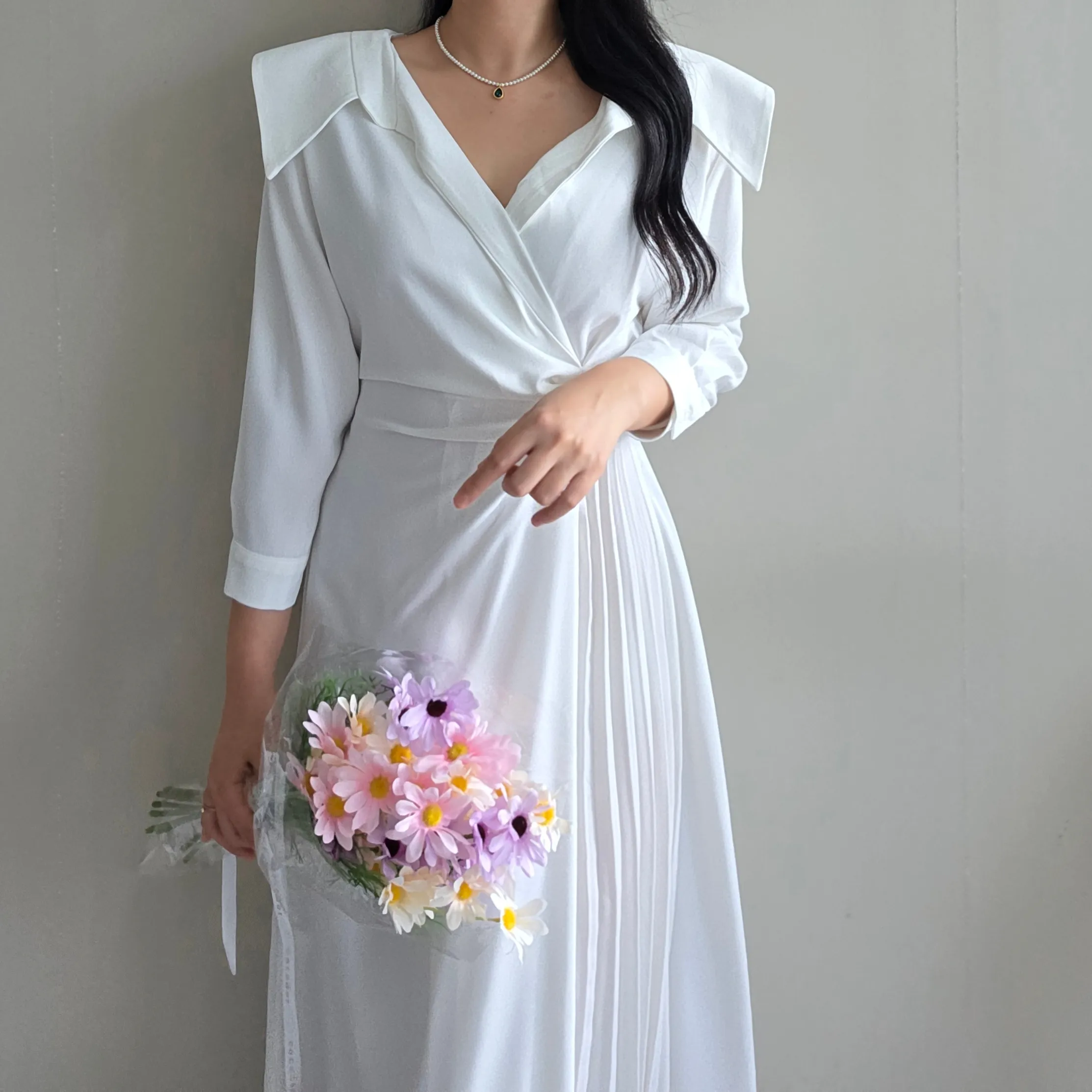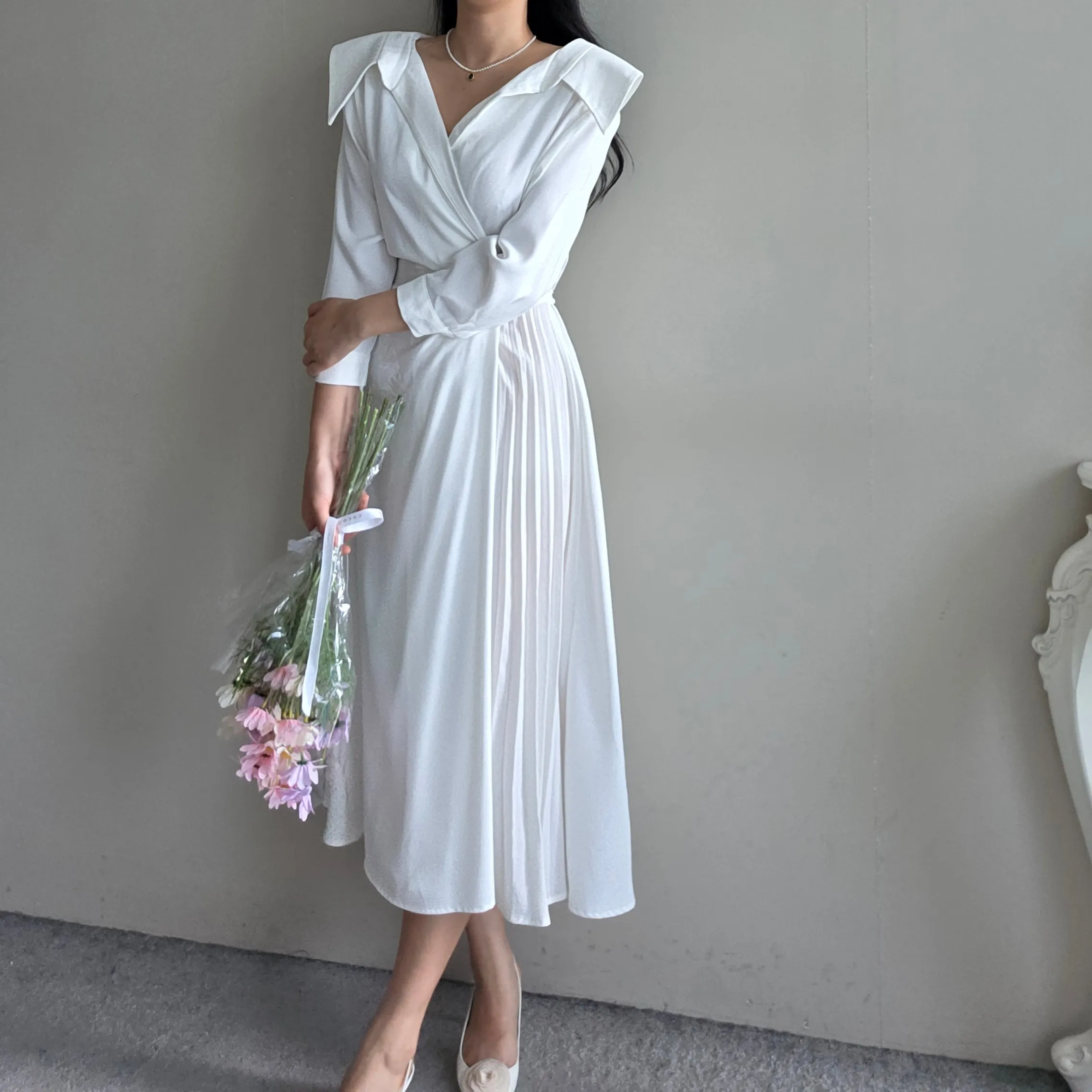 ロングカラーラップ調バックゴムバックストラッププリーツジップアップワンピース・S1939188