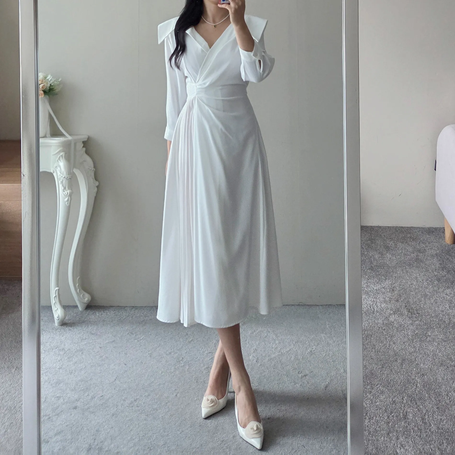 スキッパーカラータックスリムワンピース