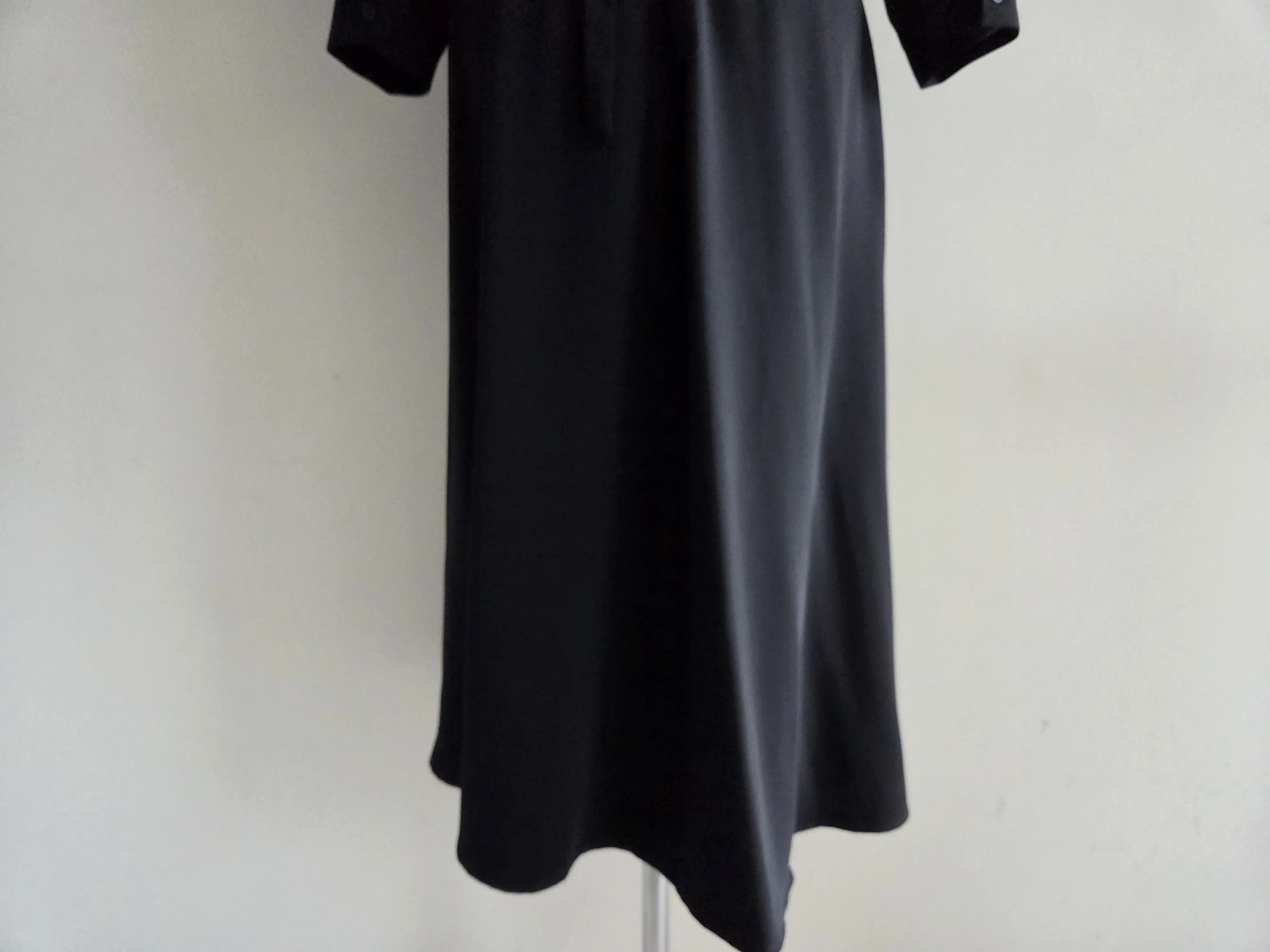 リブストレッチスリムロングHライン(ロング丈)フェイクボタンカラー長袖ワンピース