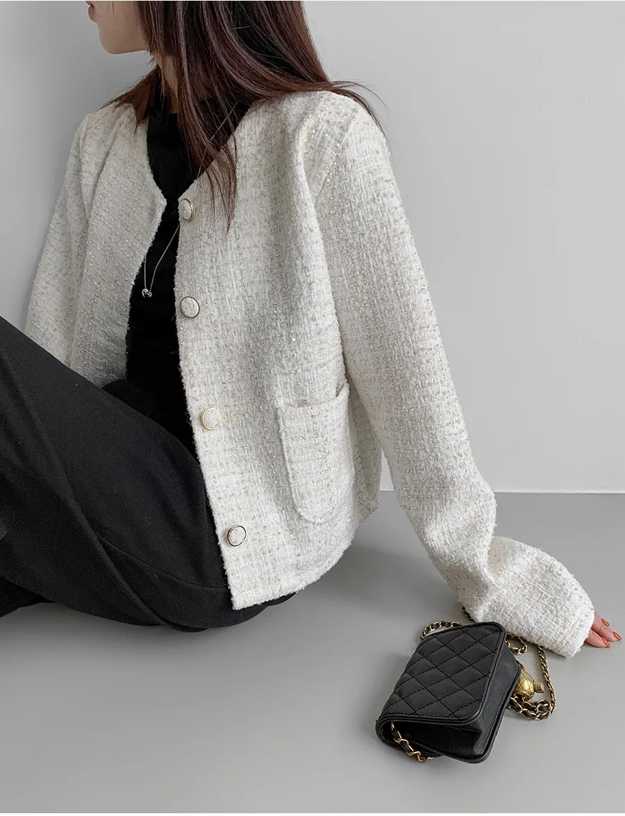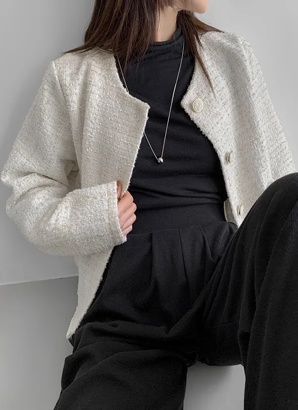 ゴールドボタンノーカラーツイードジャケット