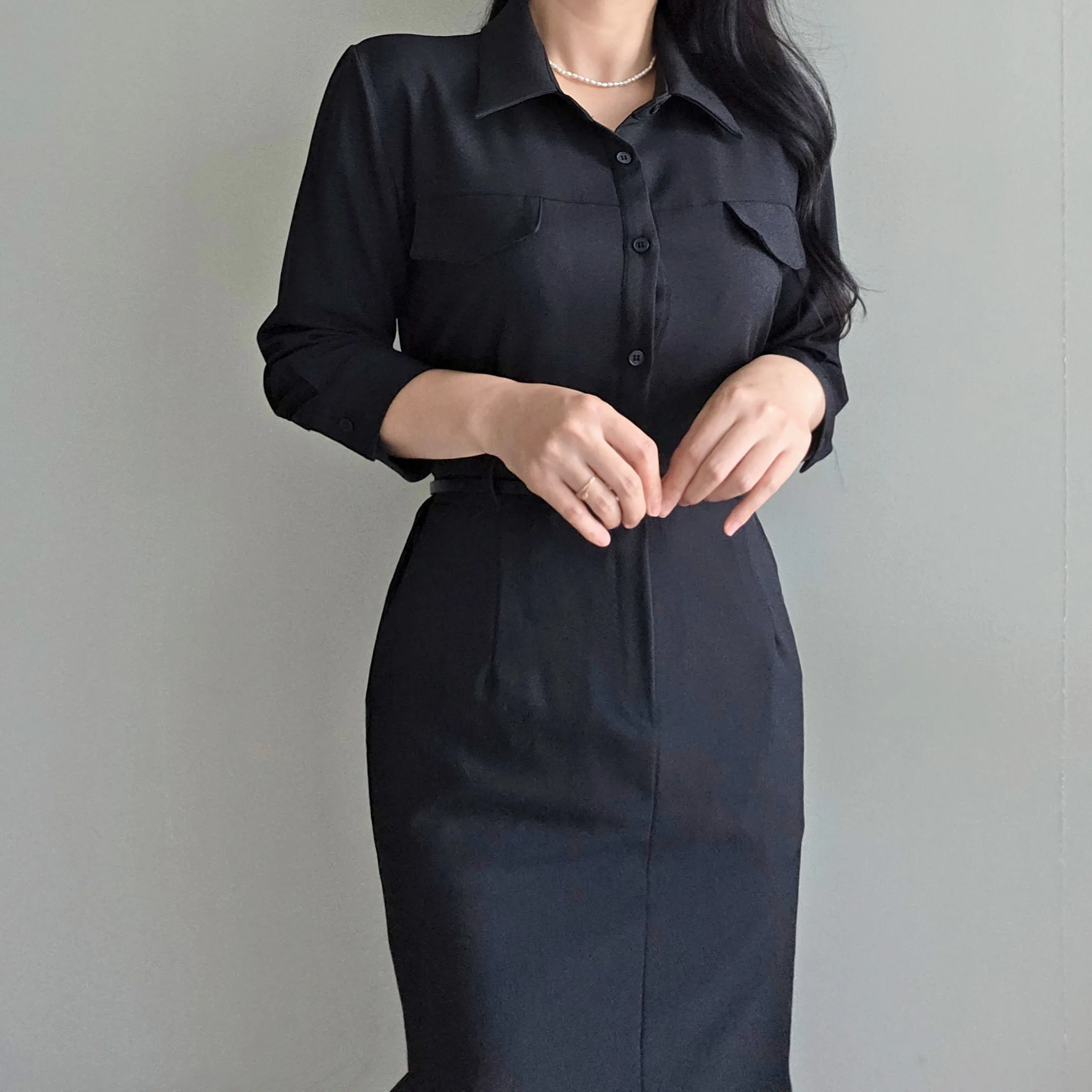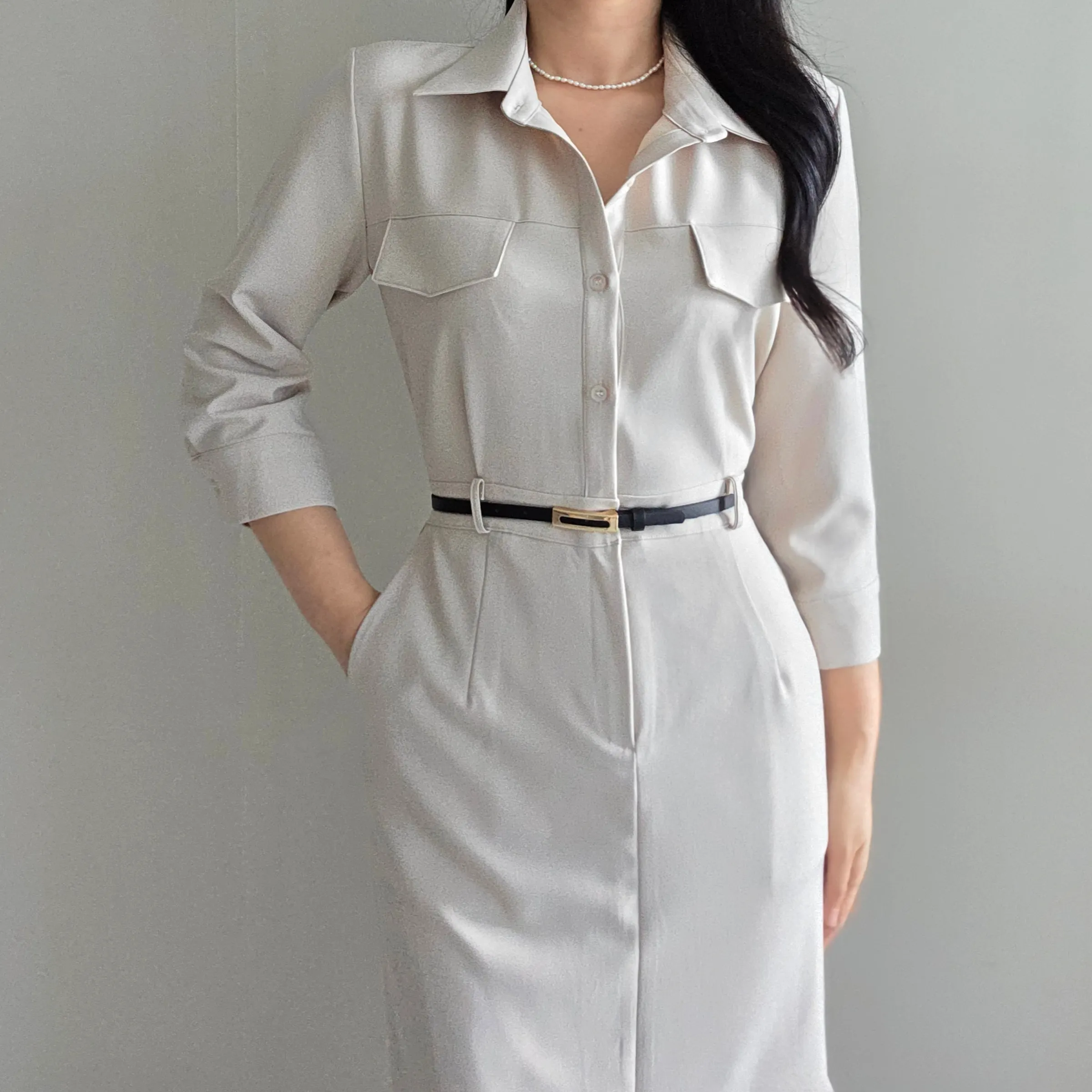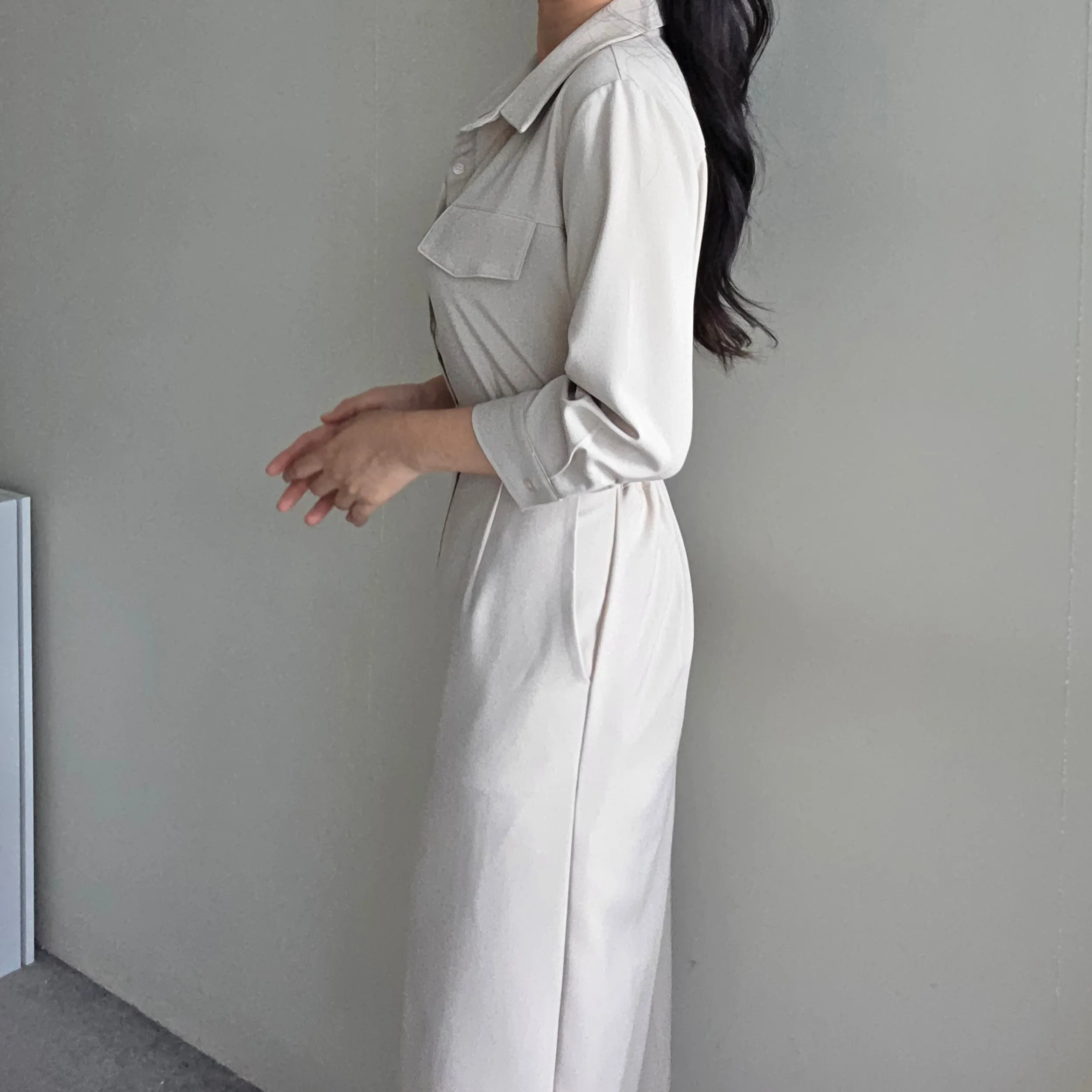 フラップポケットシャツワンピース