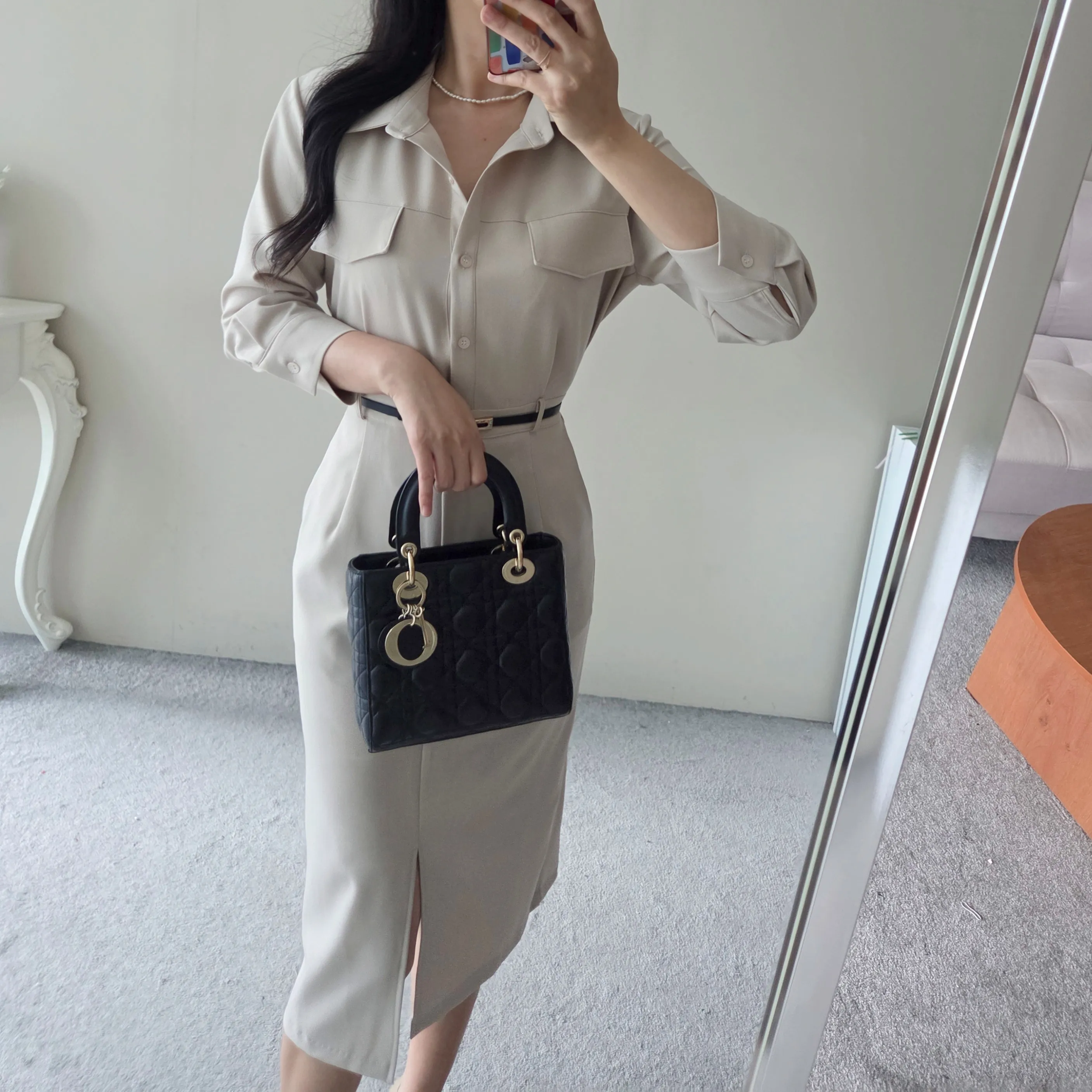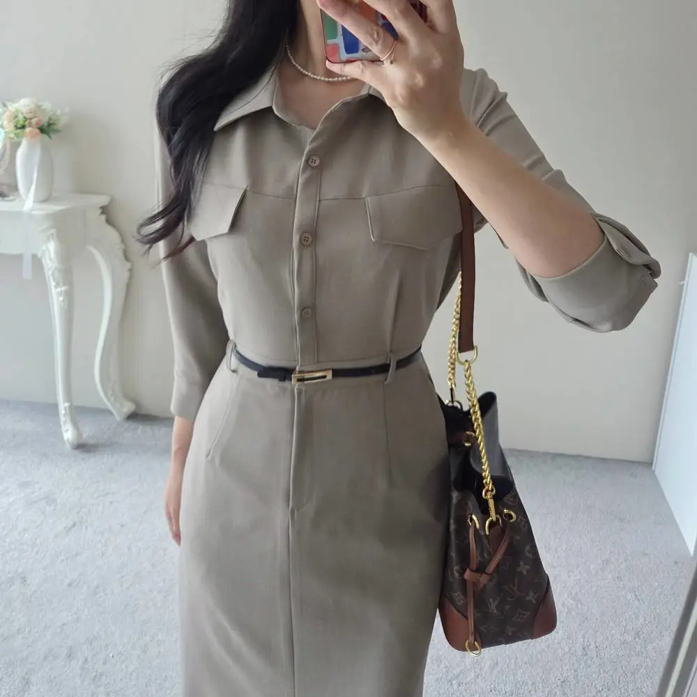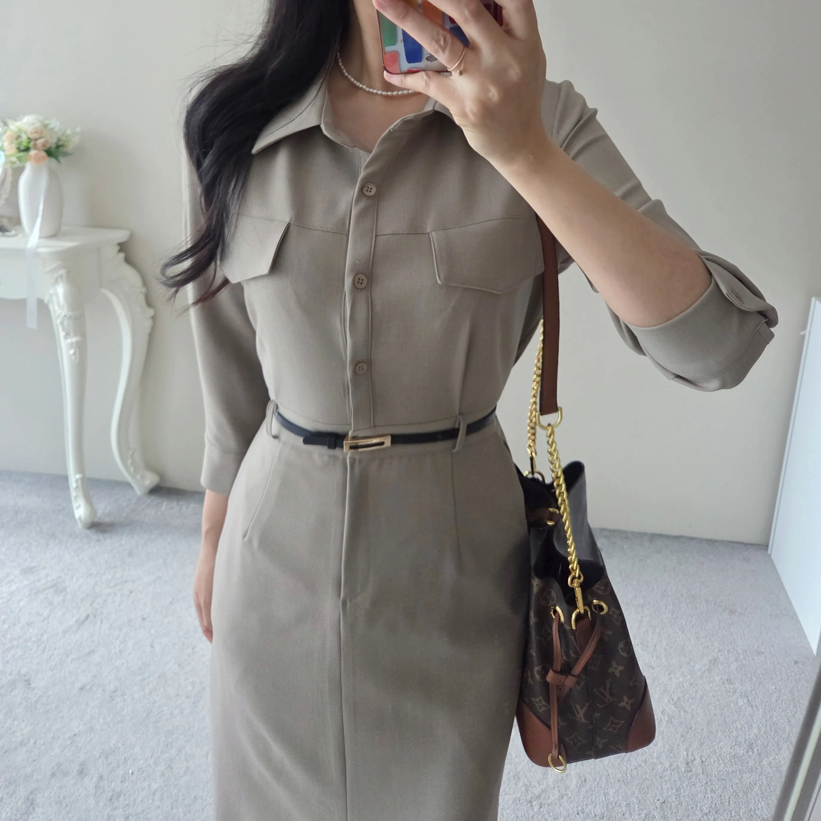 フラップポケットシャツワンピース