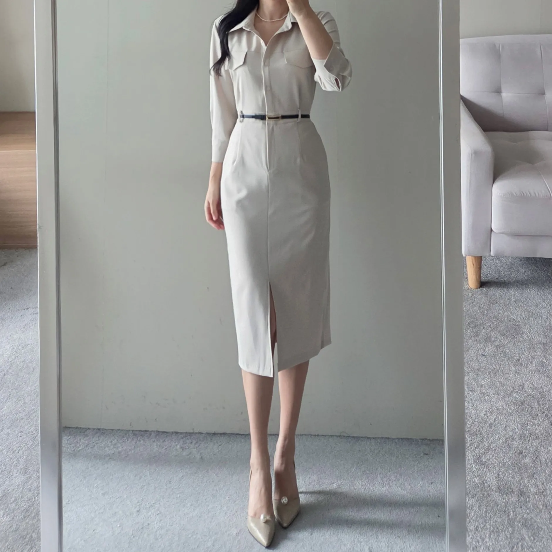 サイドバックルシャツワンピース