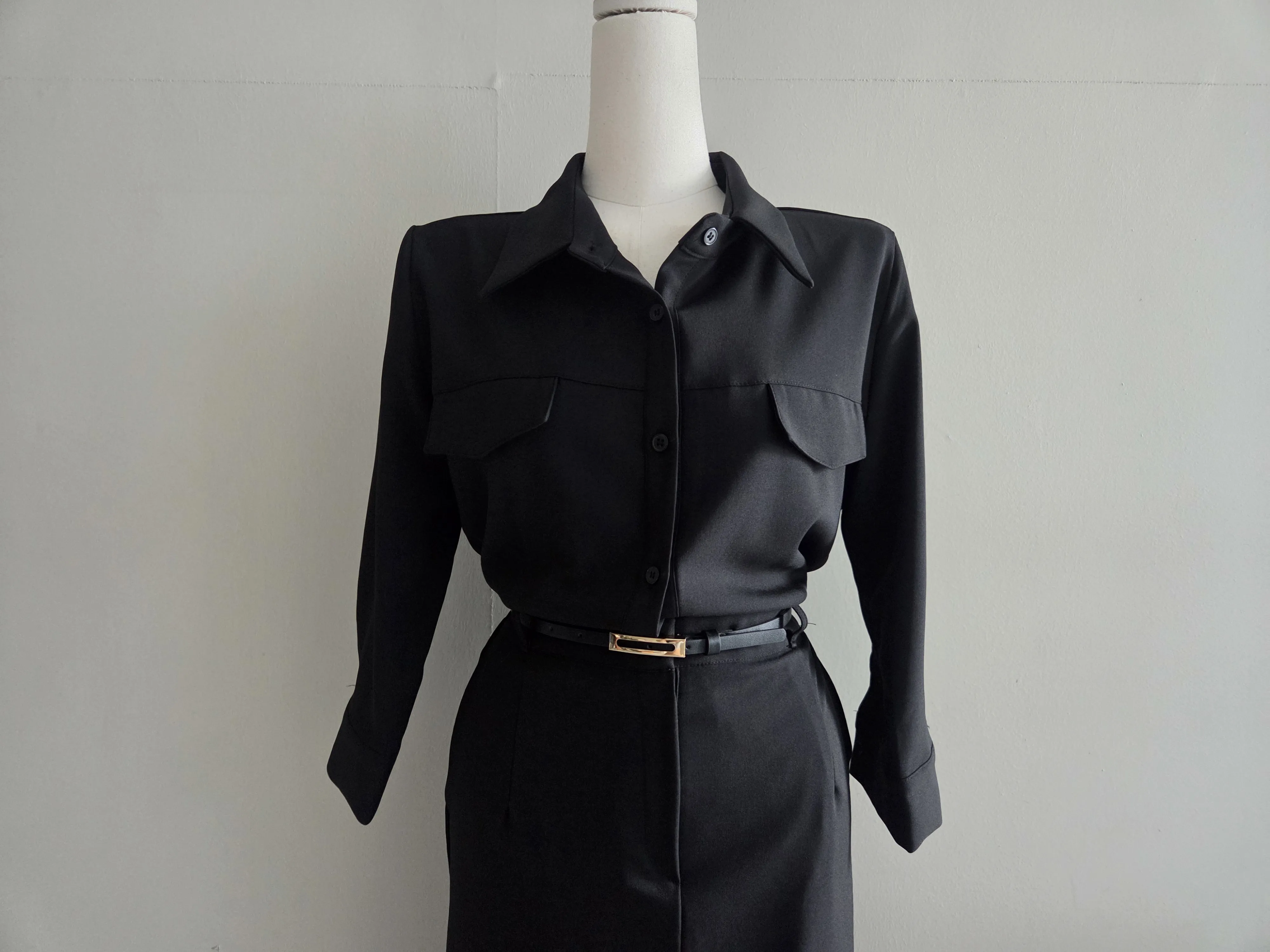 ベルト付ガンフラップシャツワンピース