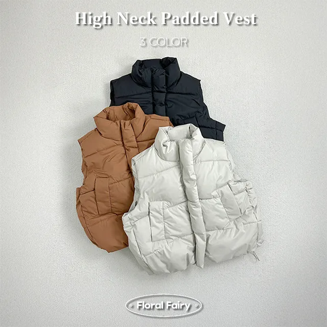 中綿ジップアップハイネックドローストリングマットベストダウンジャケット