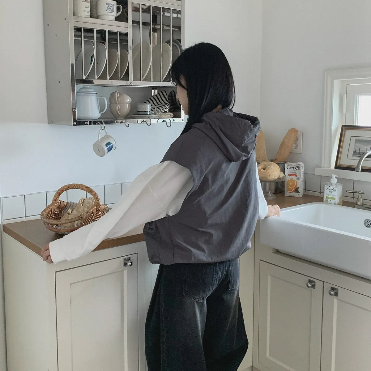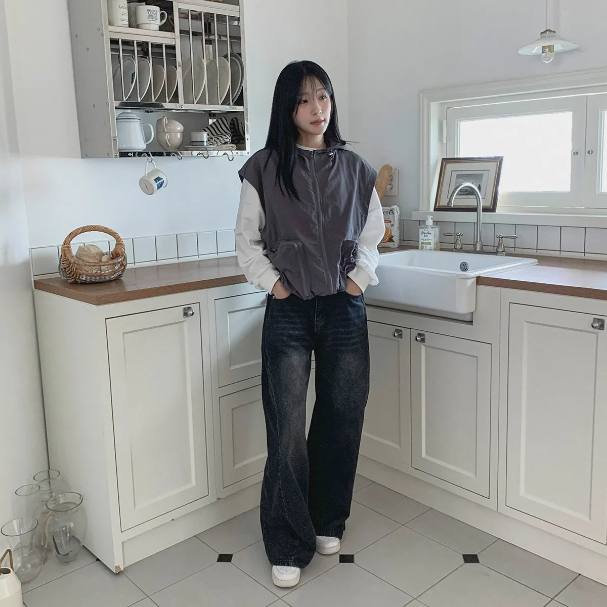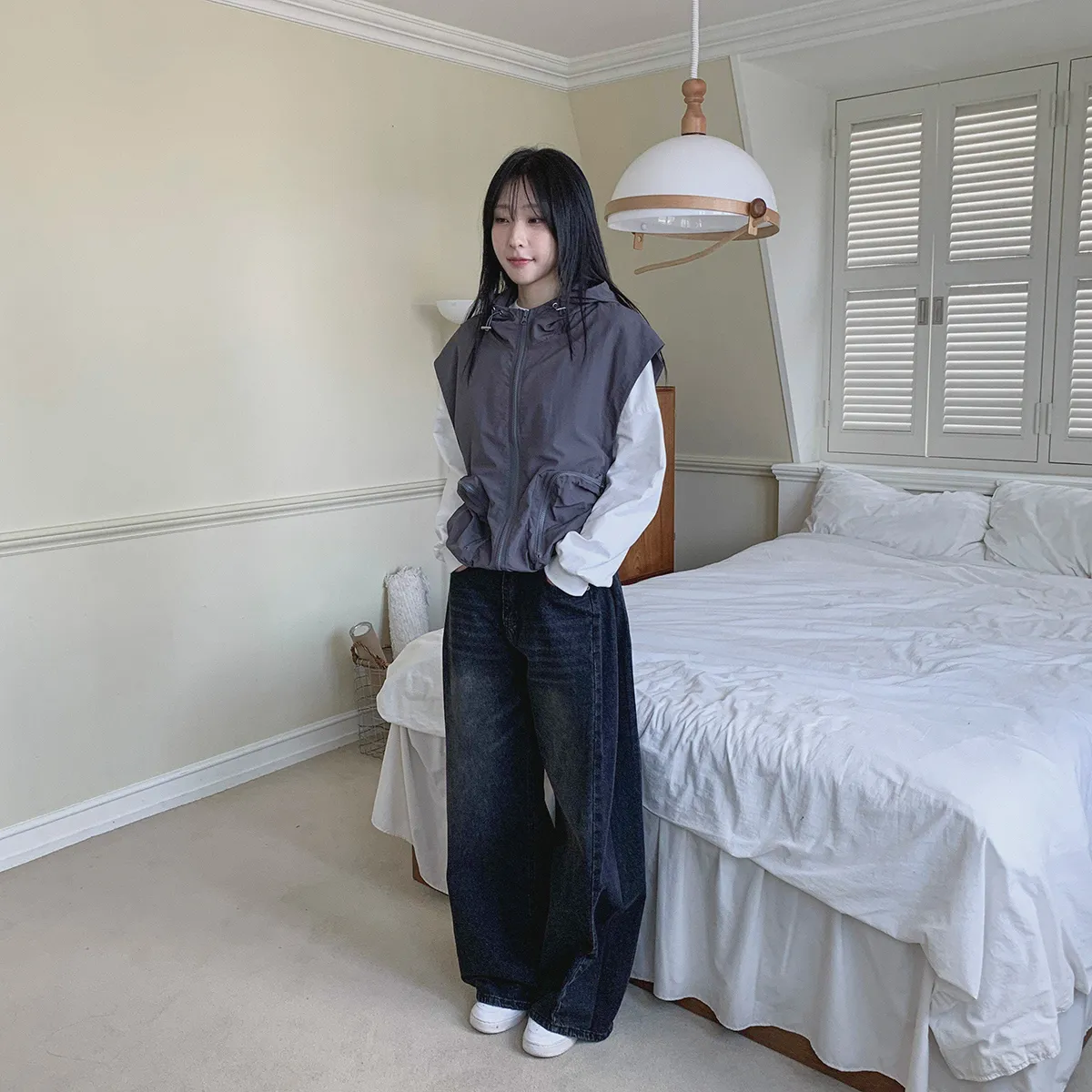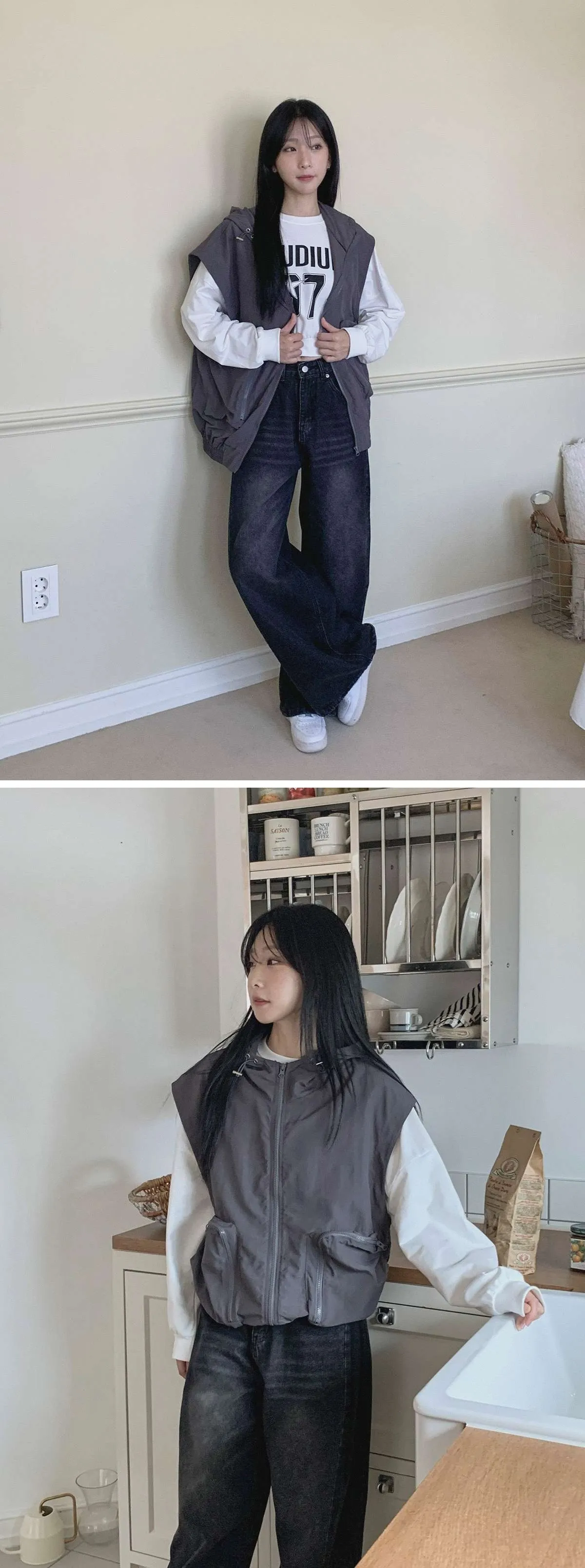 ジップアップフードドローストリングポケットボクシールーズベスト・S1939994