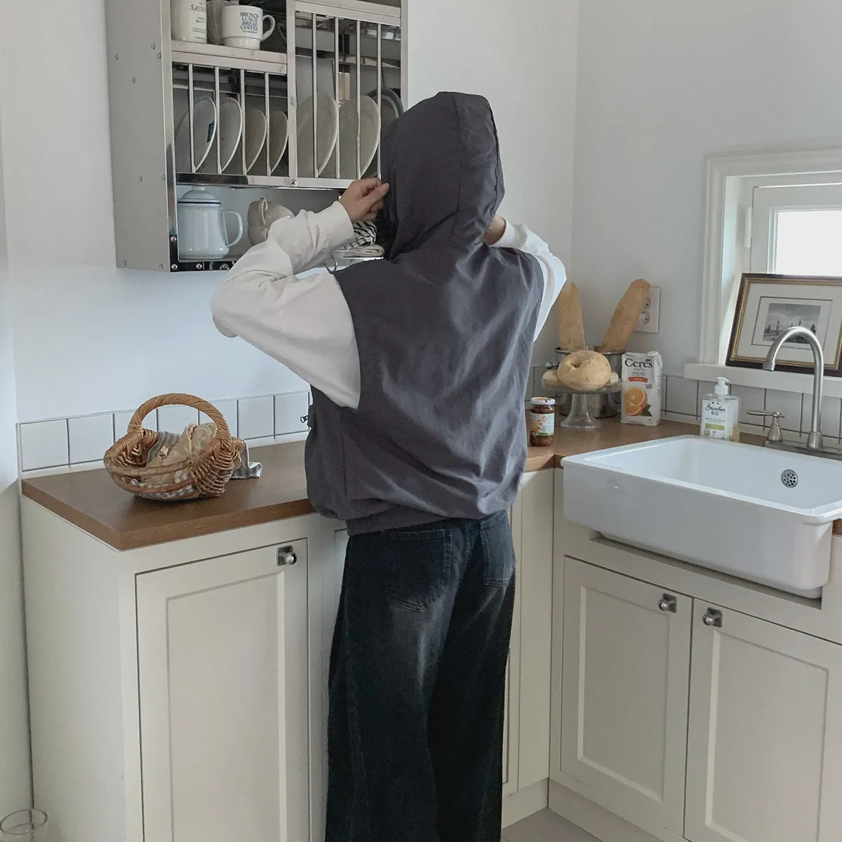 ニットフードジップアップベスト