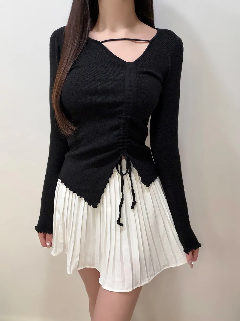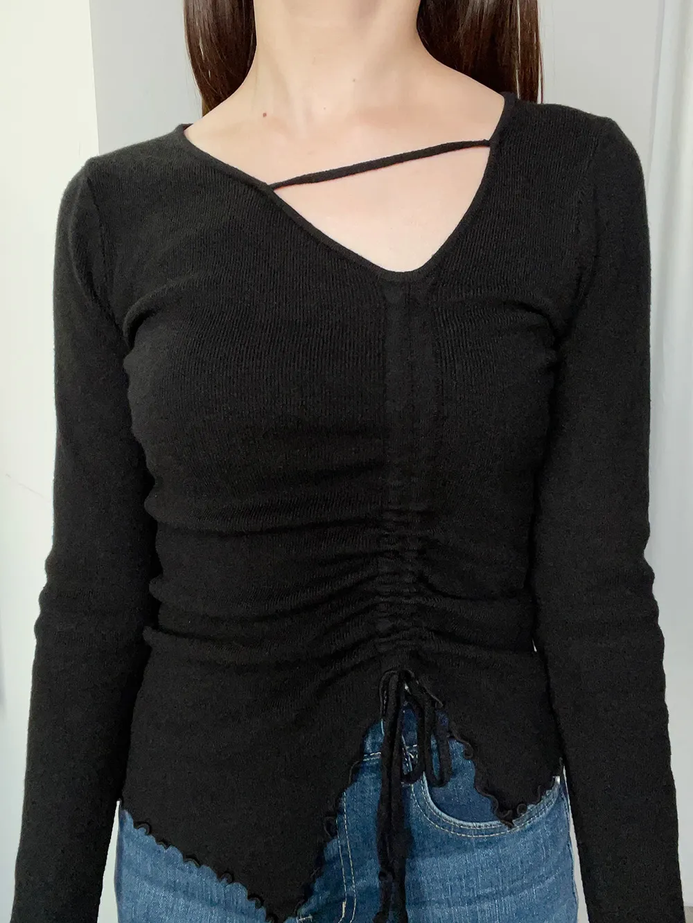フロントのギャザーデザインがポイントのトップス。