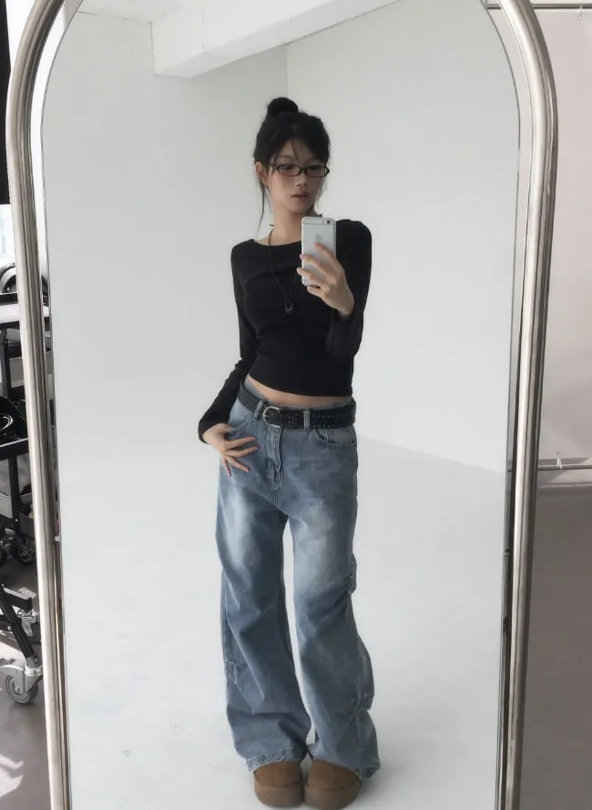 ソフトドレープクロップド長袖Tシャツ