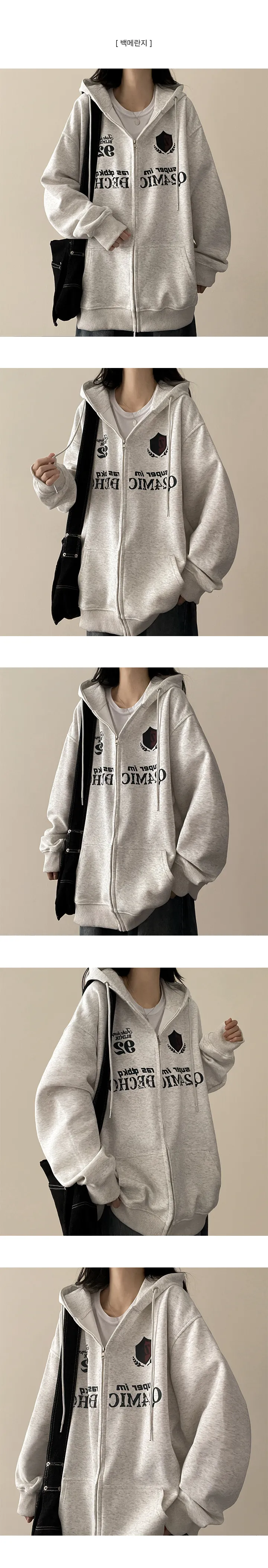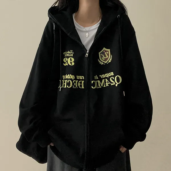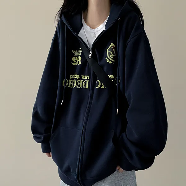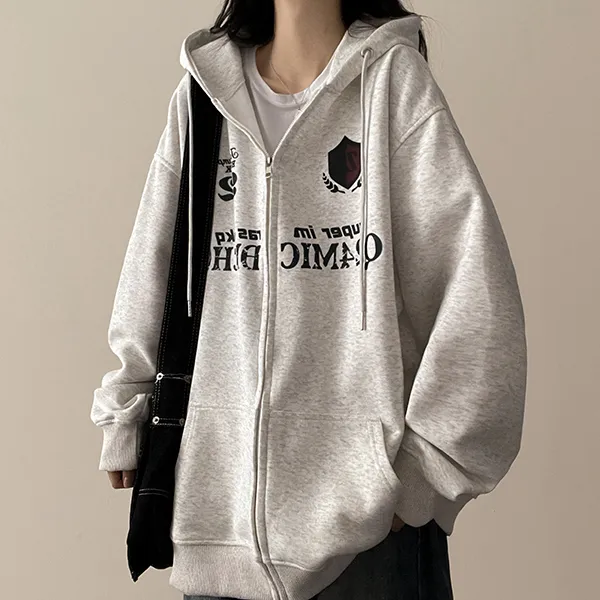 ルーズ刺繍レタリングジップパーカー