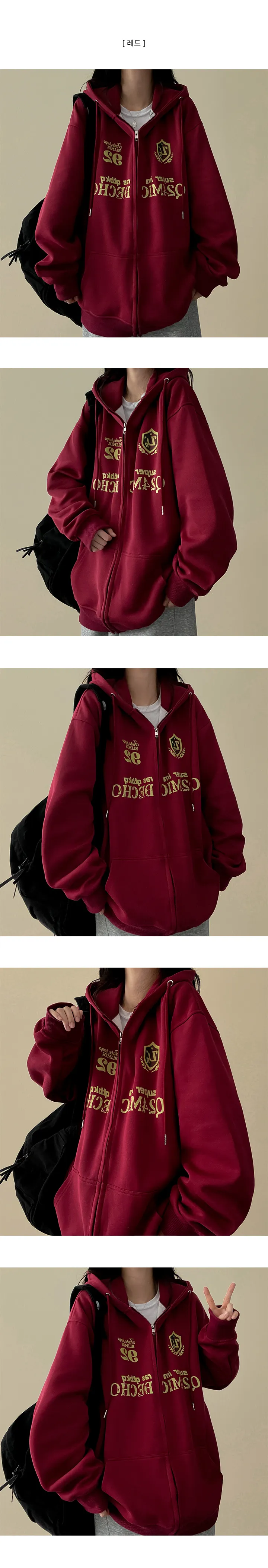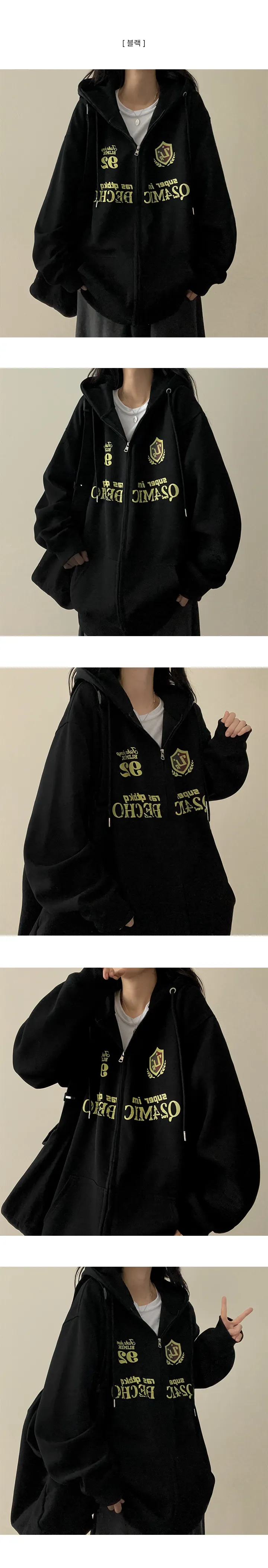 オーバーサイズ刺繍ジップパーカー