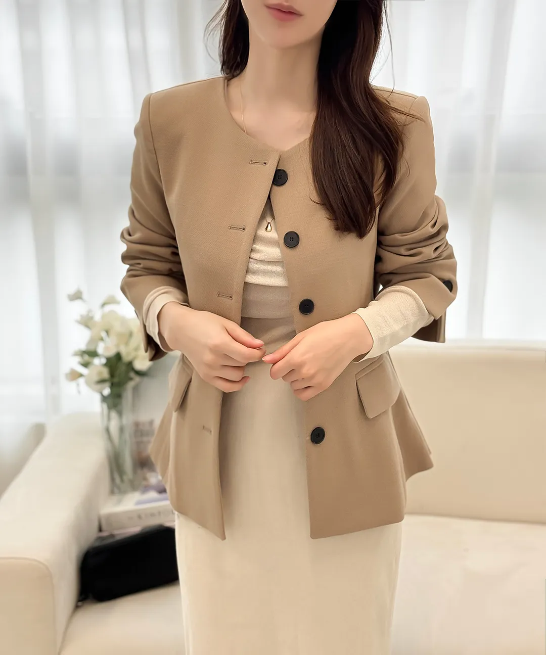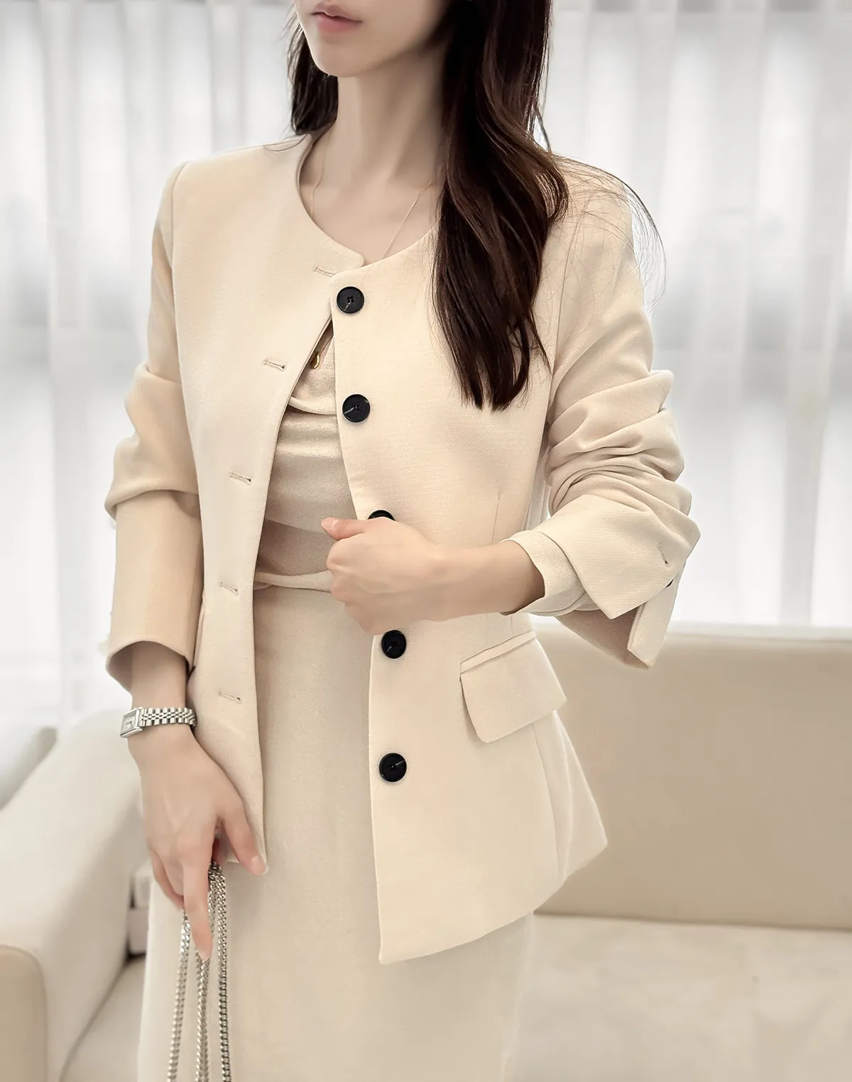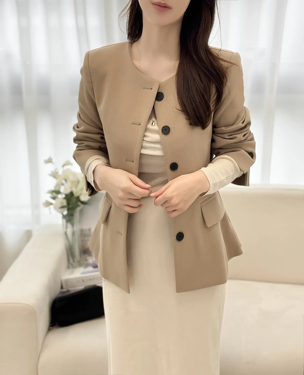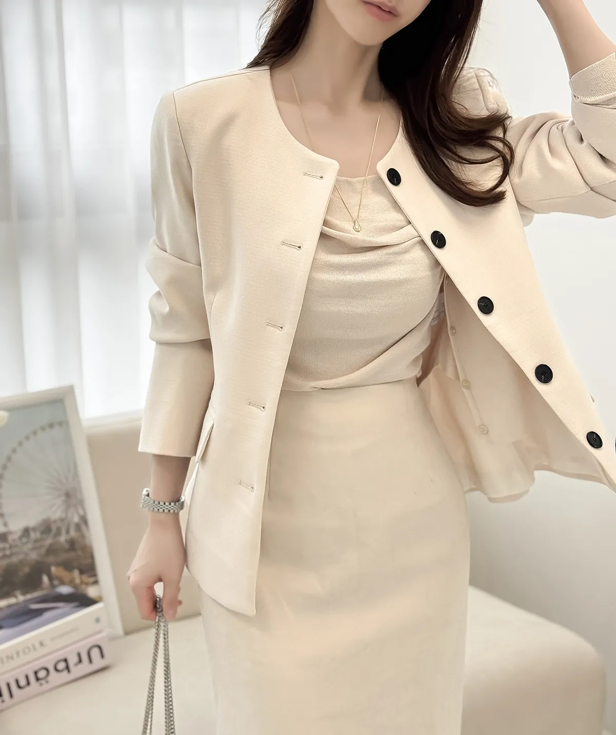 着用 : クリーム / S,ベージュ / S,ブラック / S