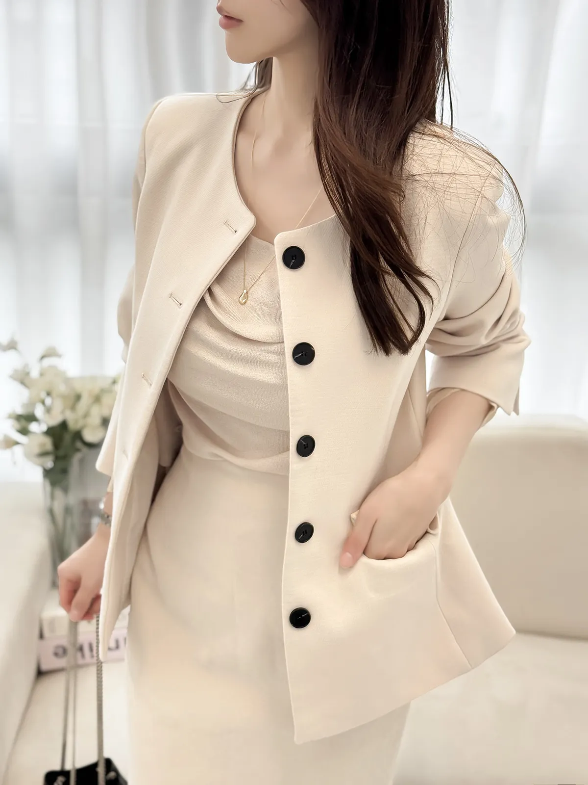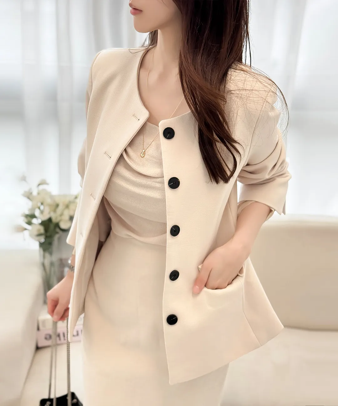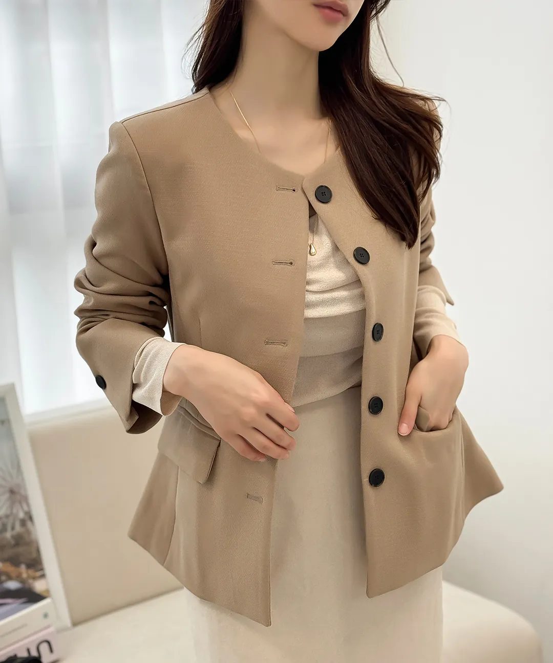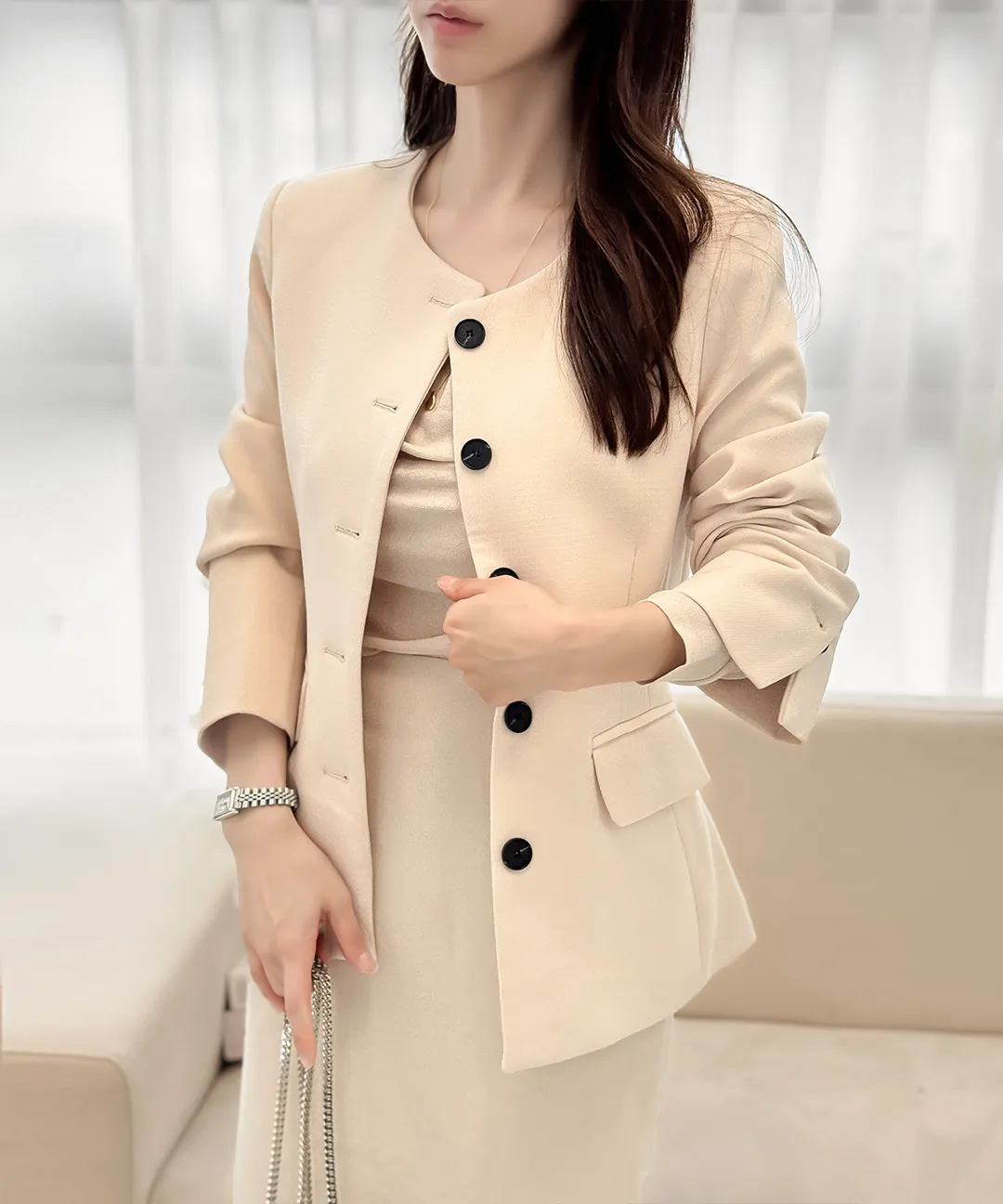 着用 : クリーム / S,ベージュ / S,ブラック / S