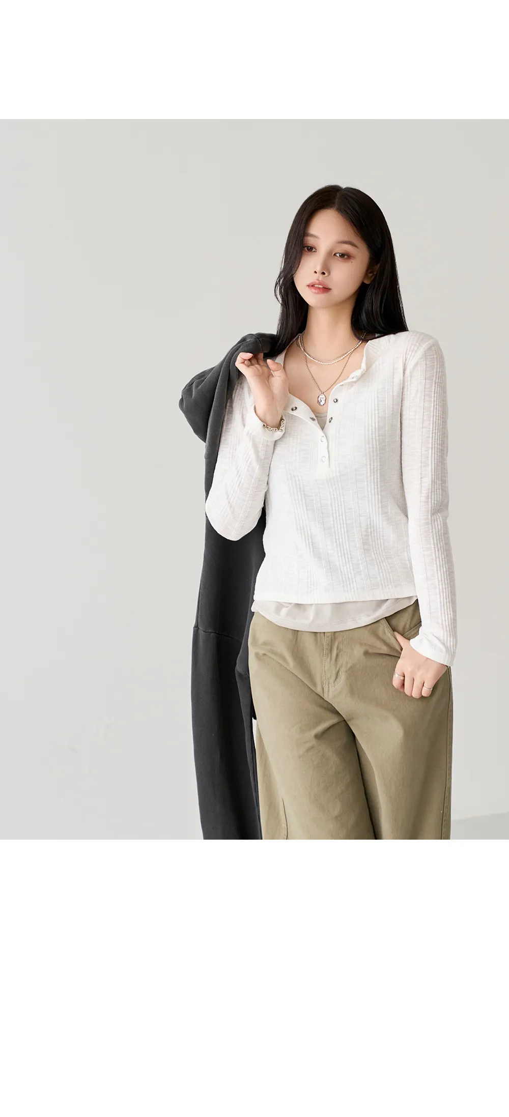 着用 : アイボリー / FREE,ライトカーキ / FREE,ネイビー / FREE