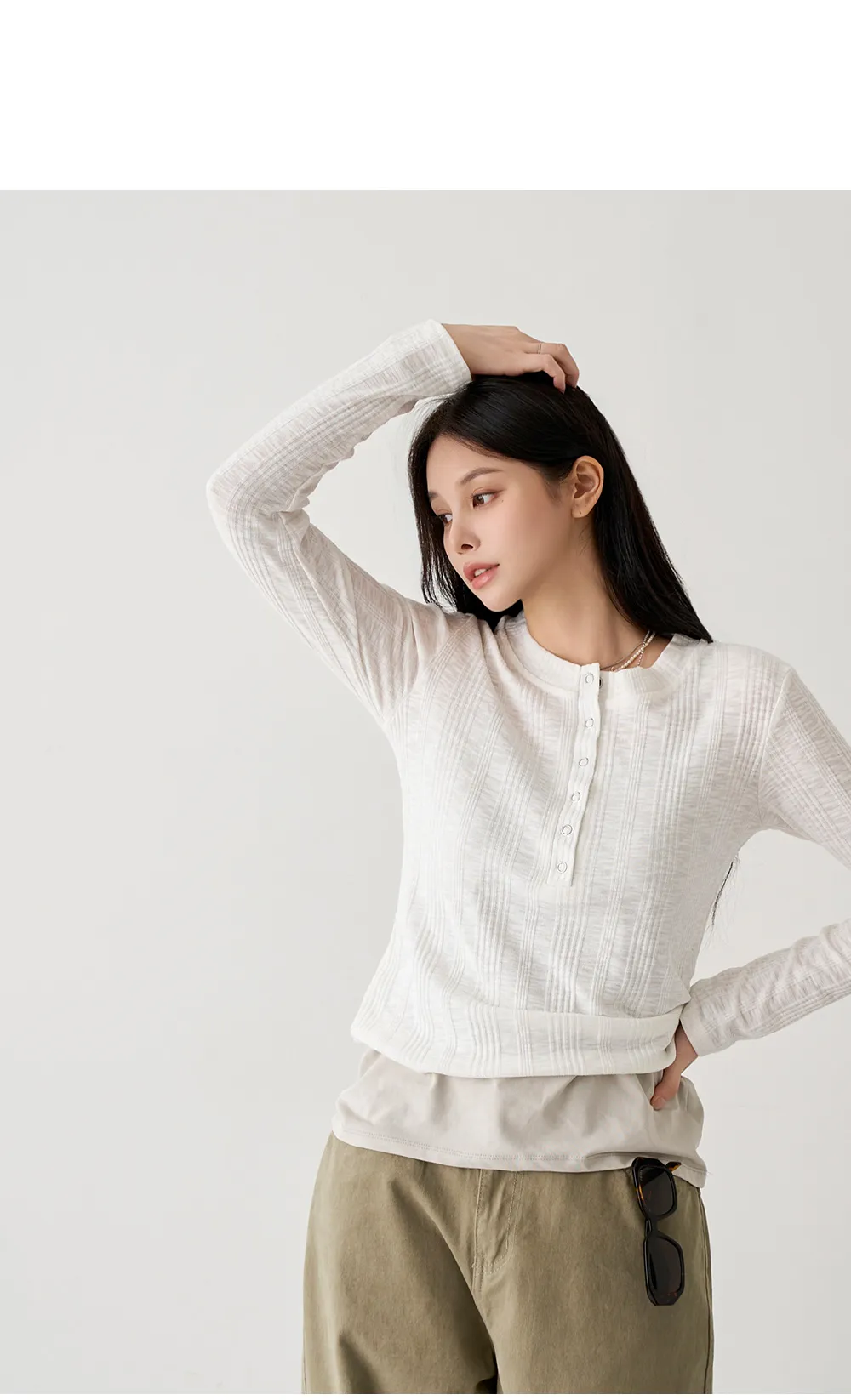 ソフトドレープクロップド長袖Tシャツ