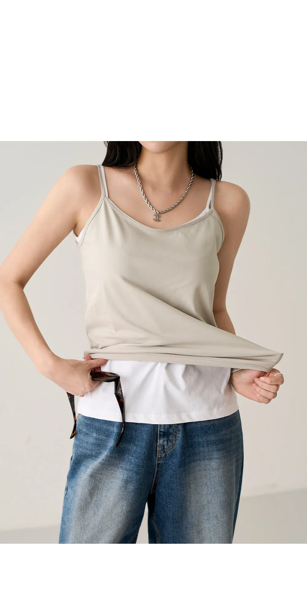 スリムホルターネックレイヤードノースリーブ