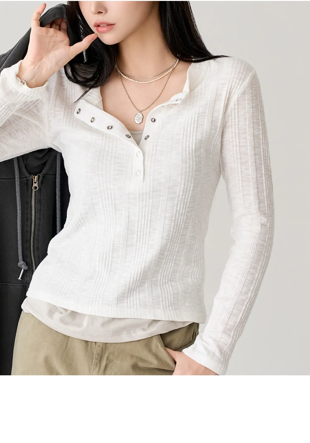 リブボタンラウンドネックカラーニット