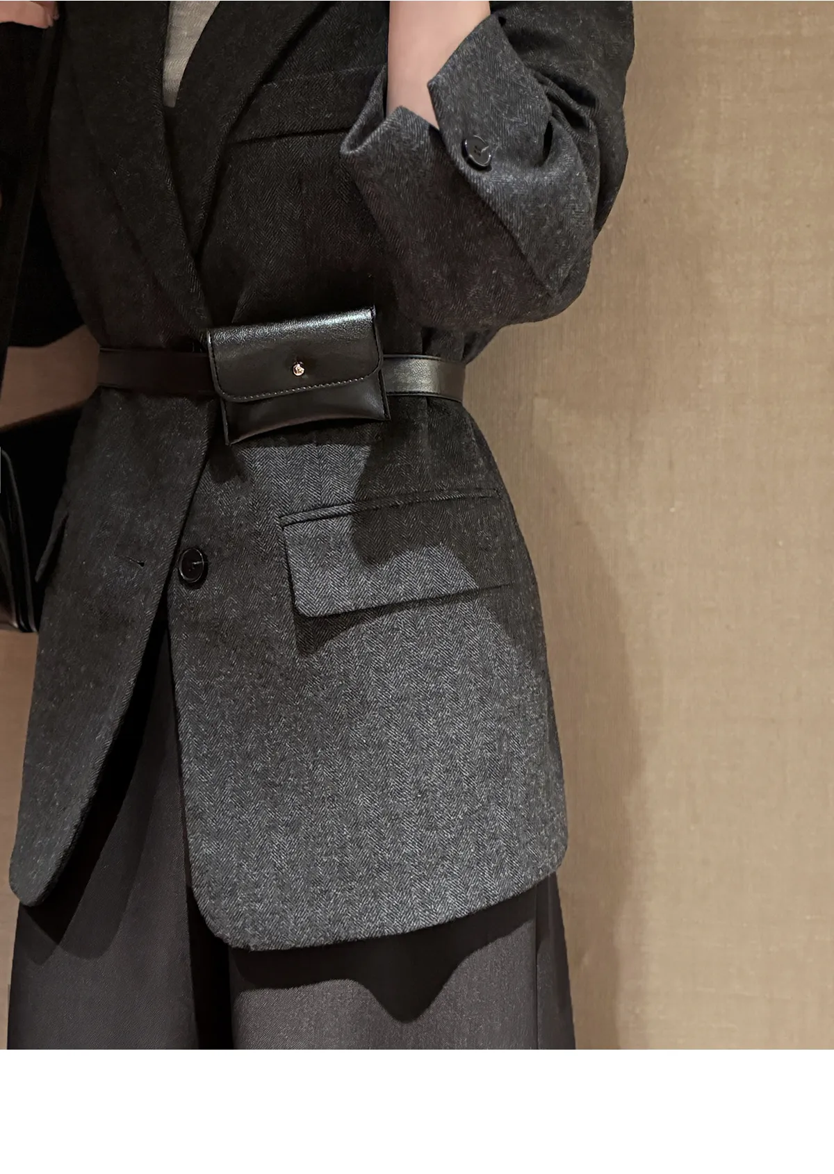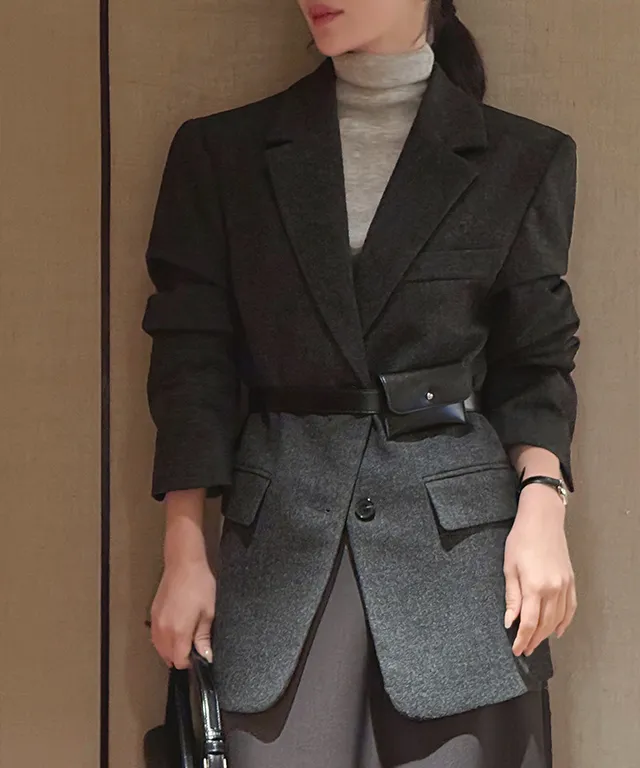 カラーボタンルーズ肩パッドポケットジャケット