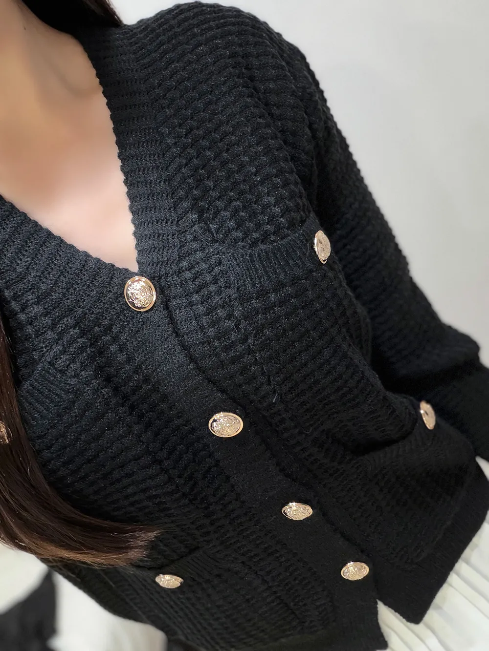 ボタンVネッククロップドスリム長袖カーディガン