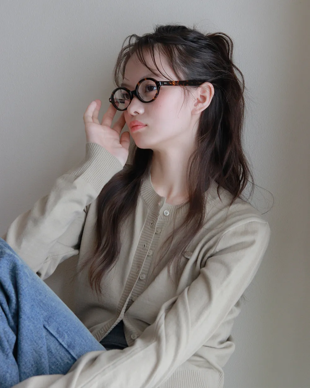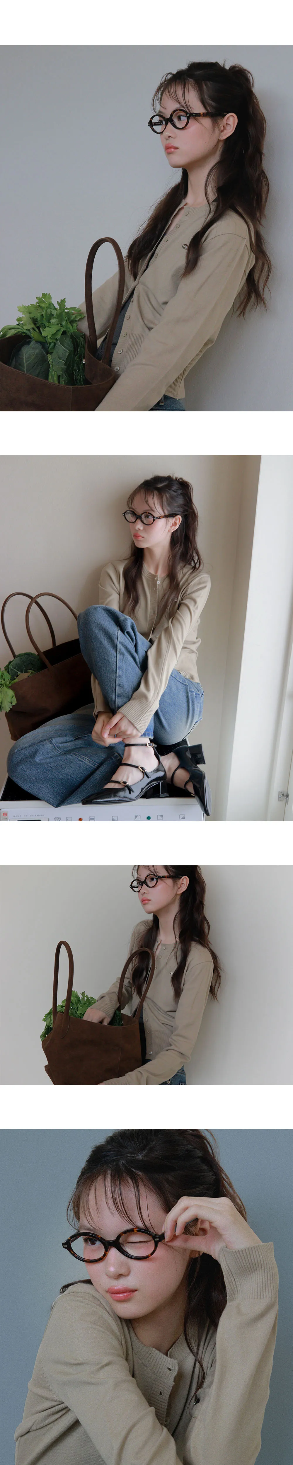 長袖ボタンラウンドネックスリムカーディガン