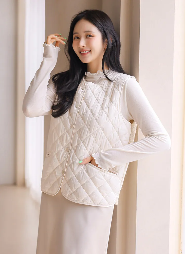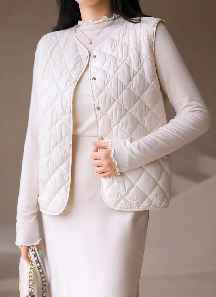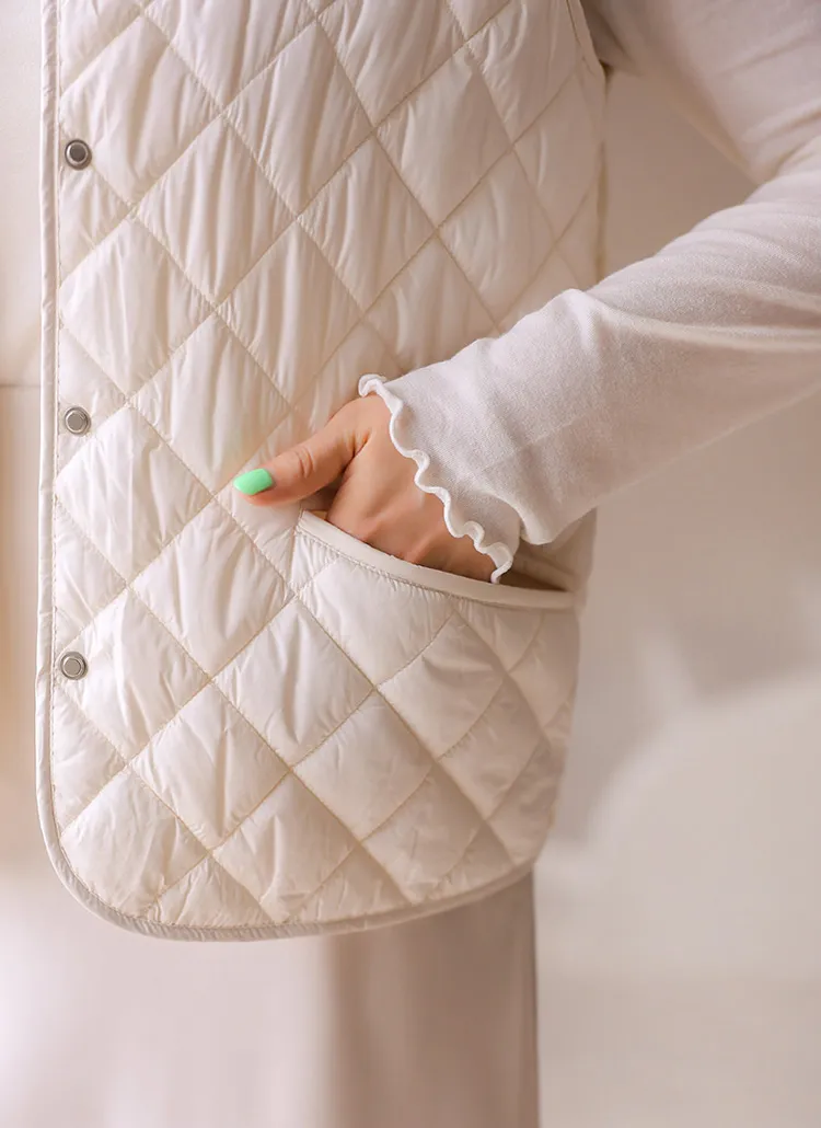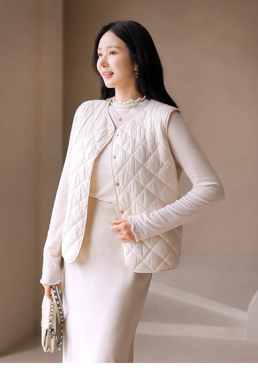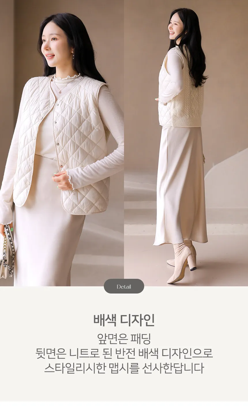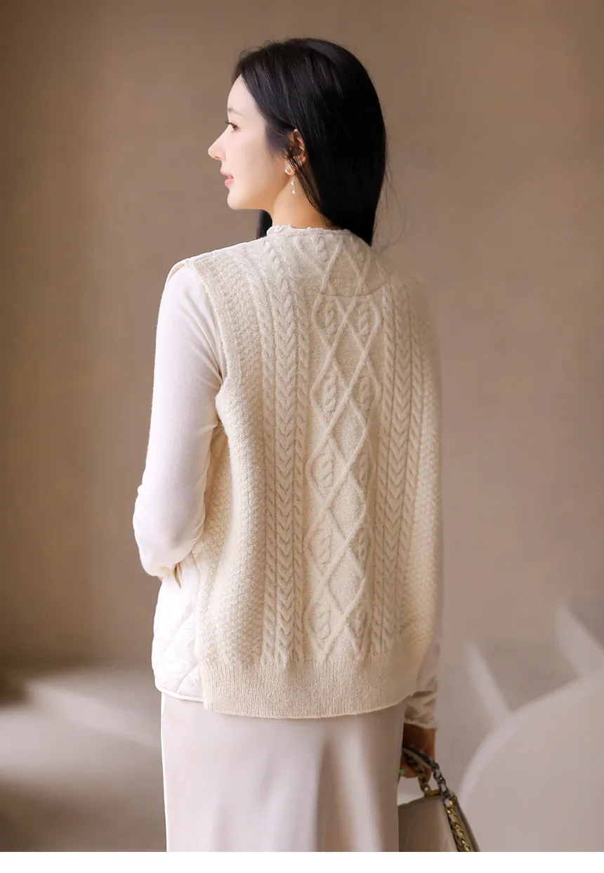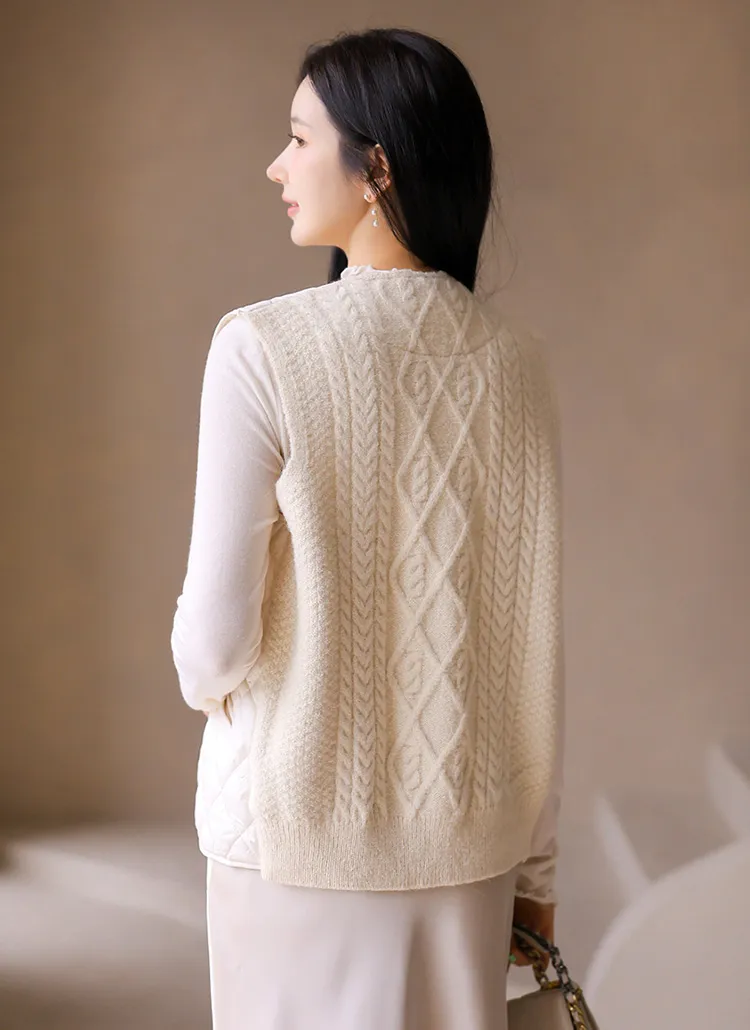 ニットコンビキルティングポケットケーブルベスト軽量ダウンジャケット・S1942022