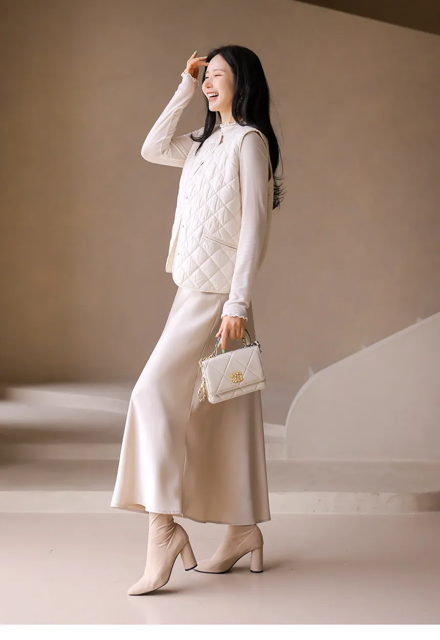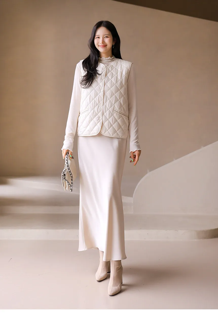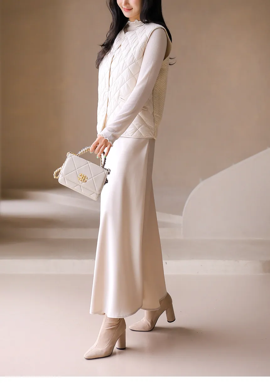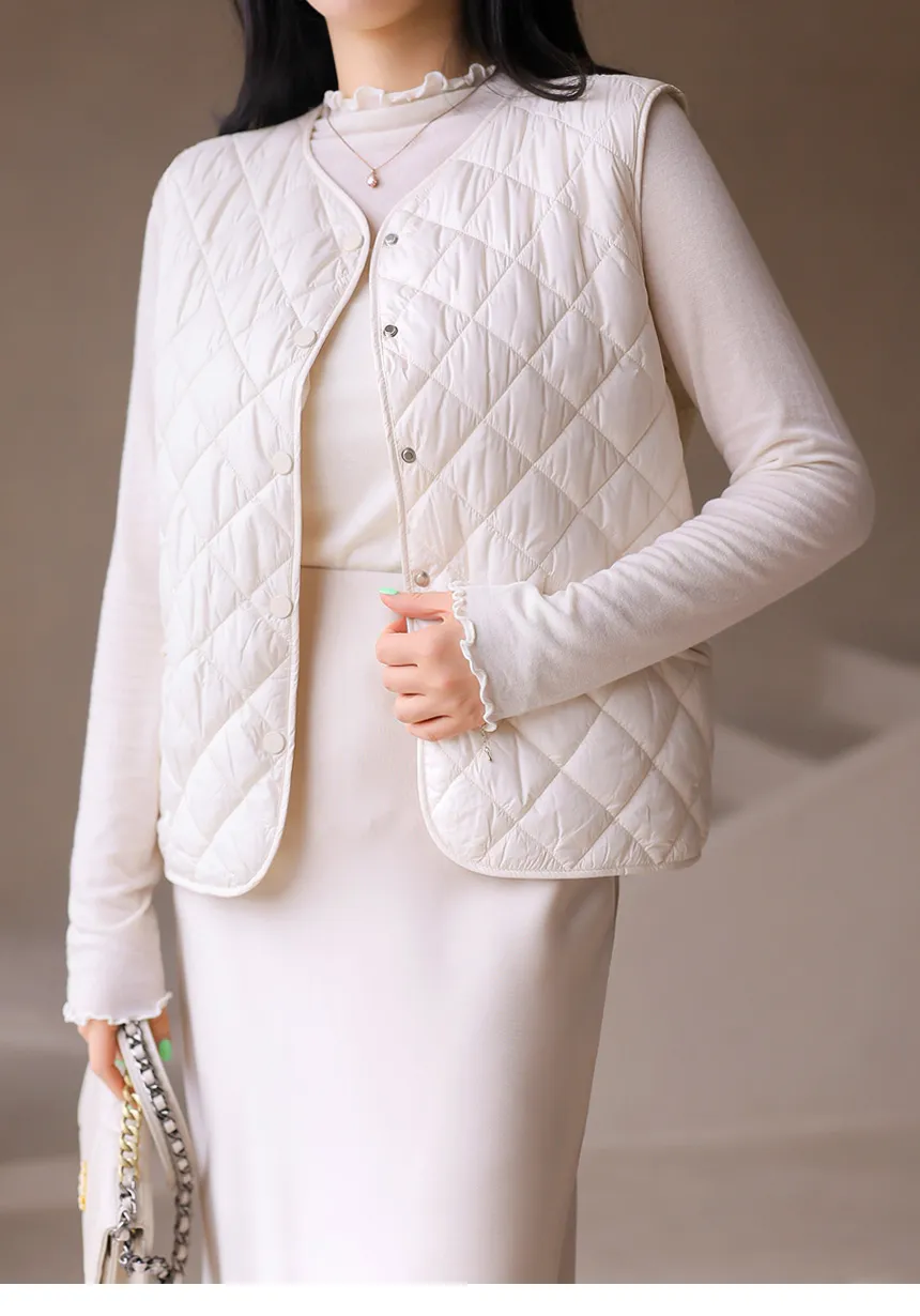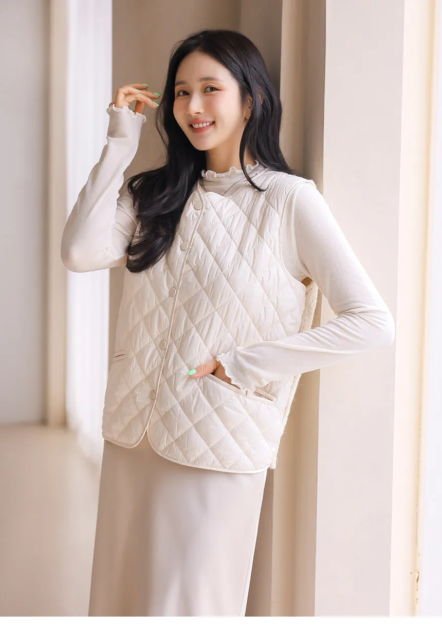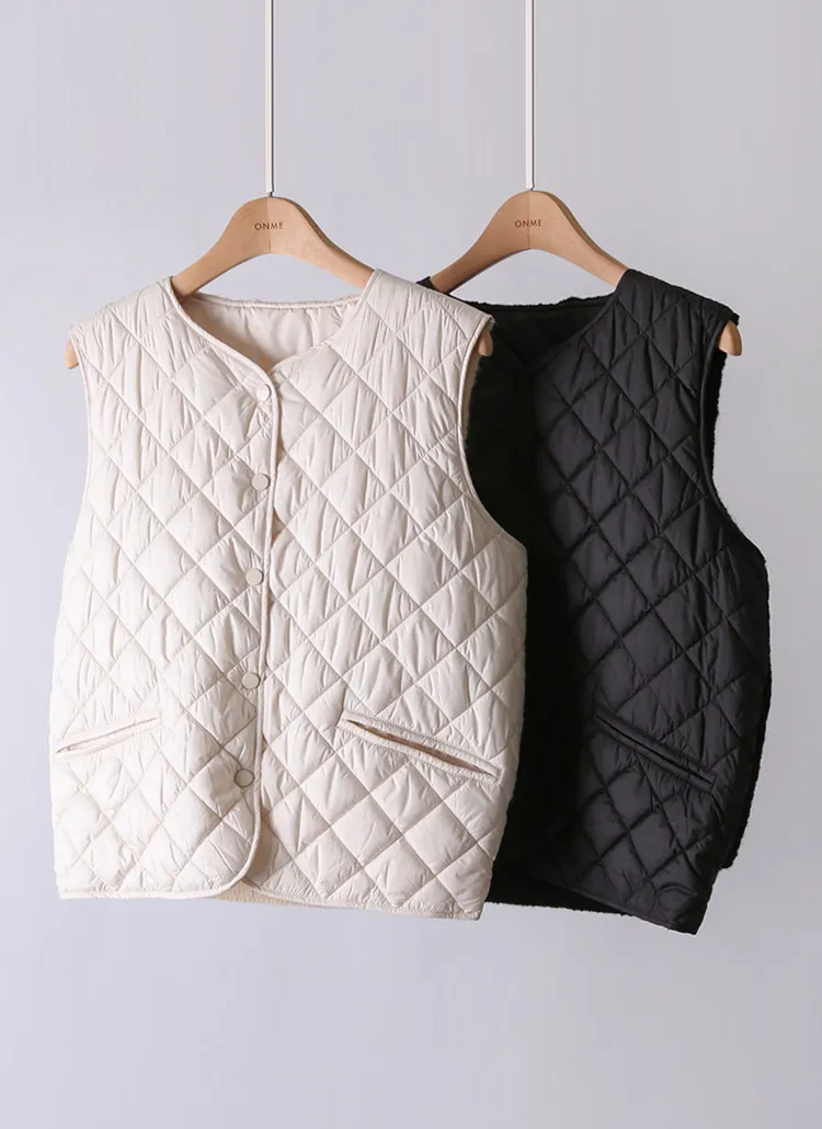 ニットコンビキルティングポケットケーブルベスト軽量ダウンジャケット・S1942022