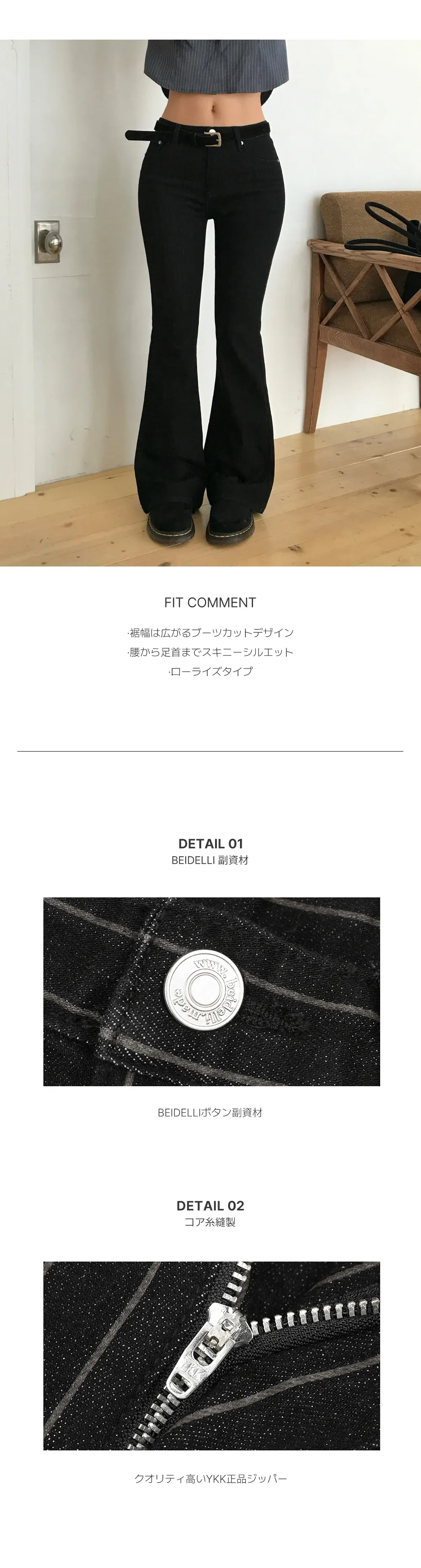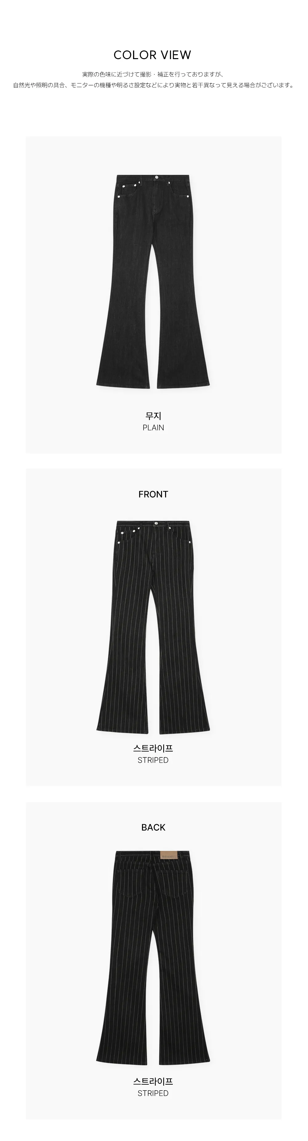 | Size | ウエスト | ヒップ | 裾幅 | わたり | 股上 | 着丈 |