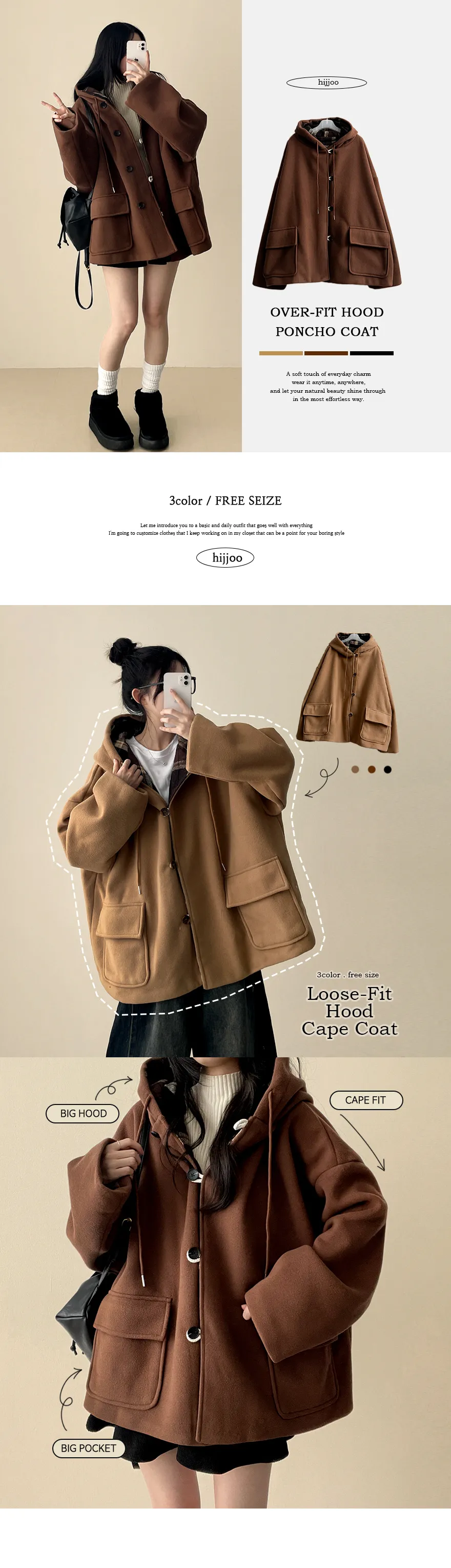 着用 : ベージュ / FREE,ブラウン / FREE,ブラック / FREE