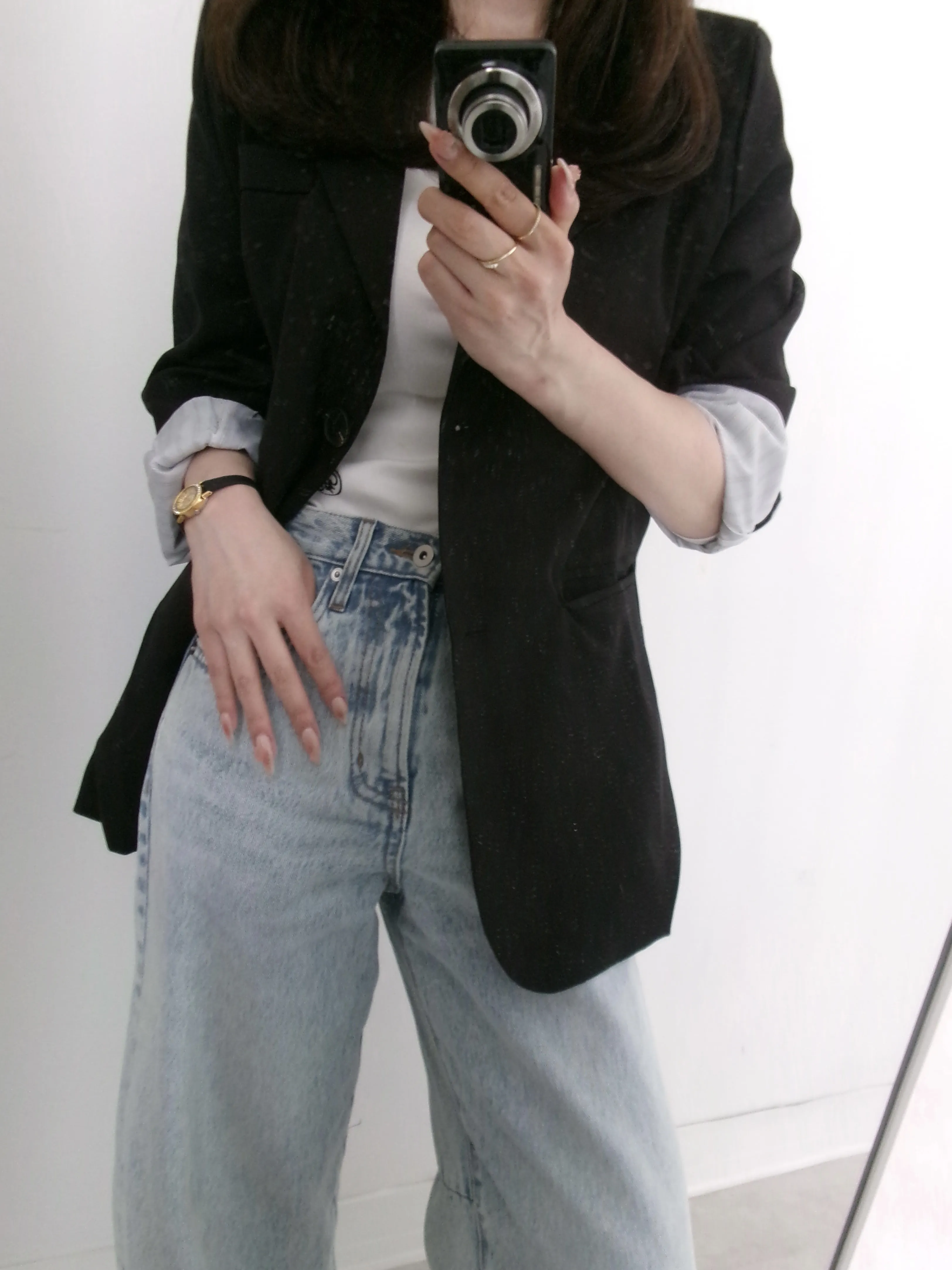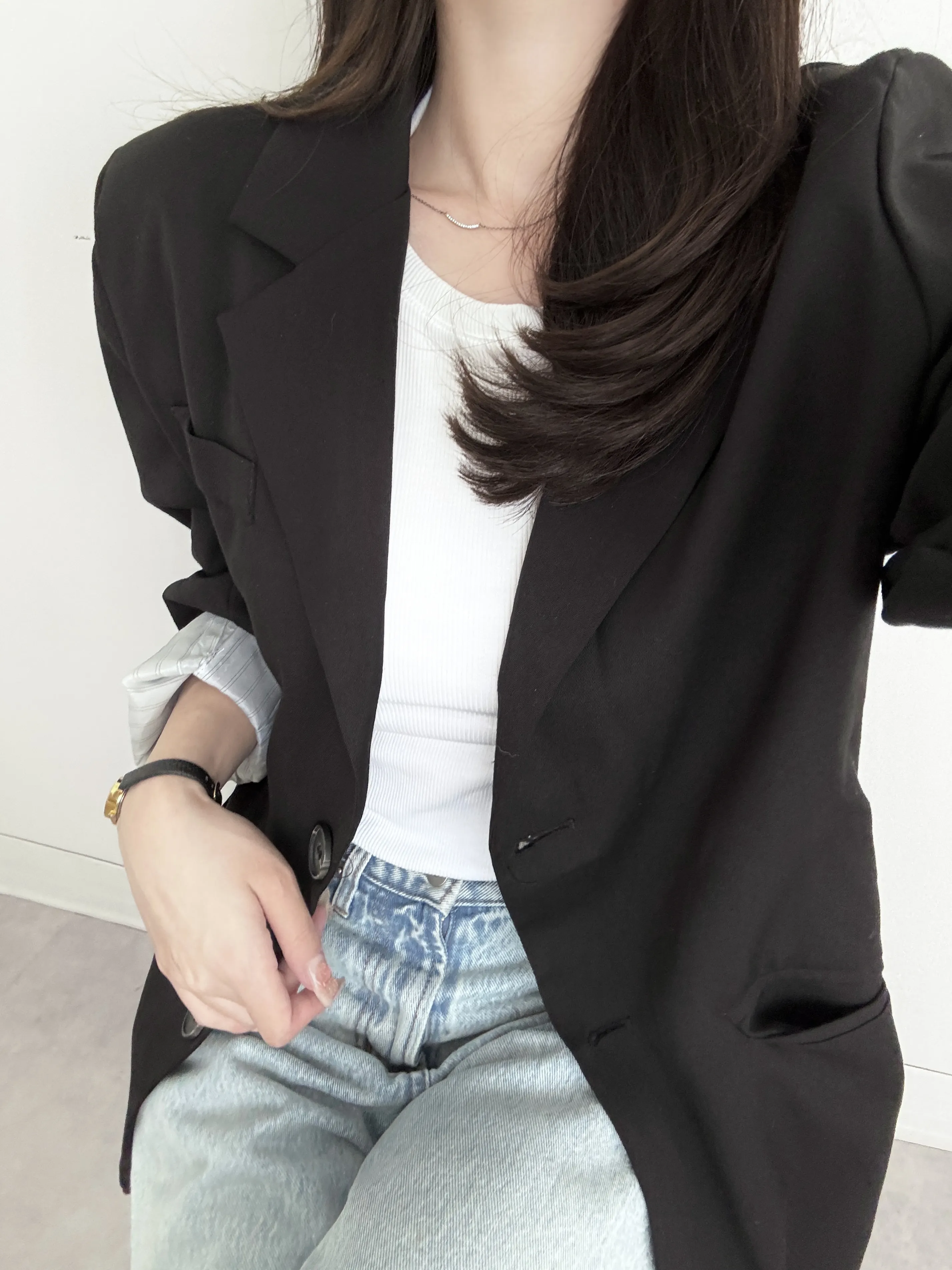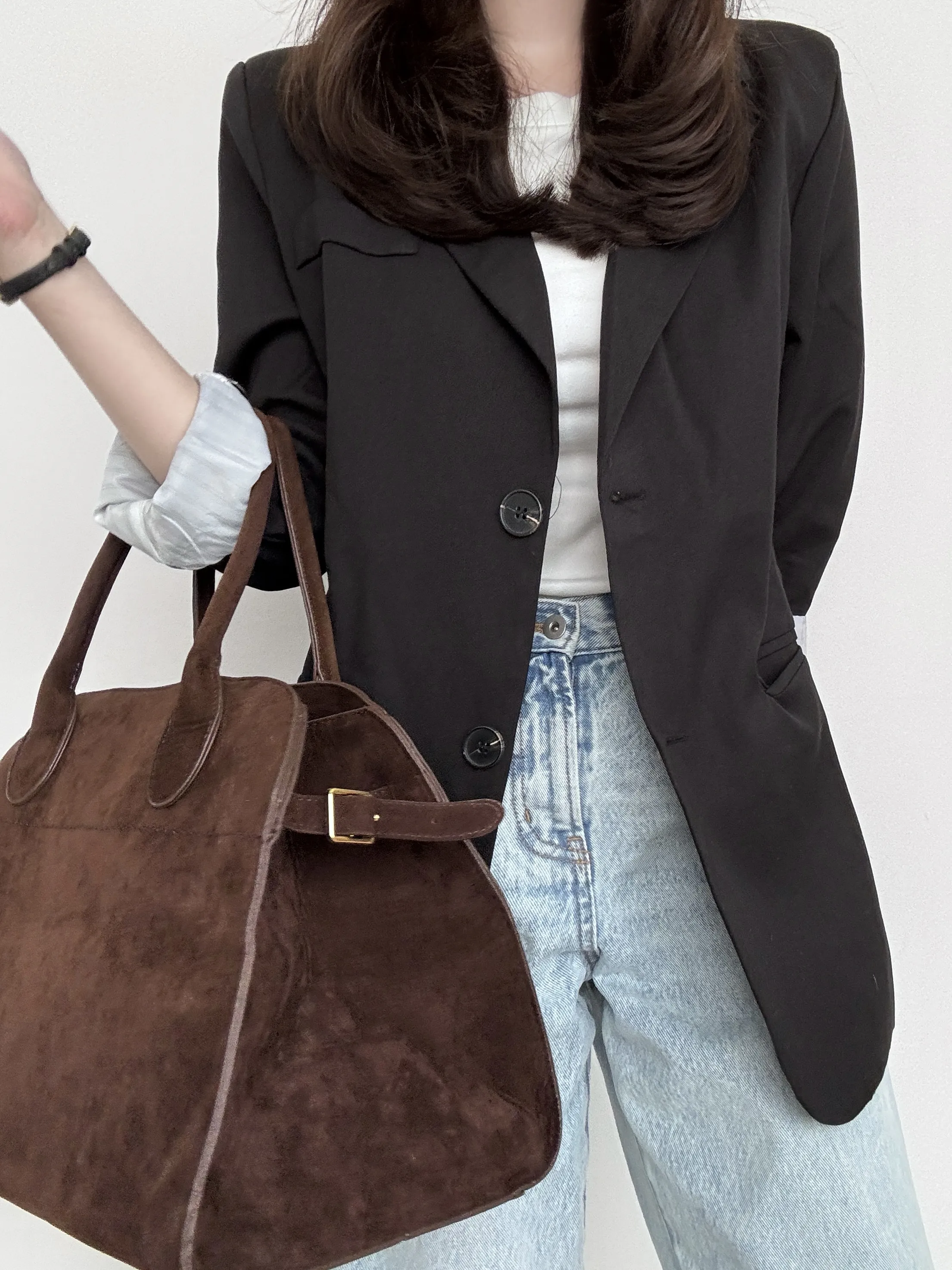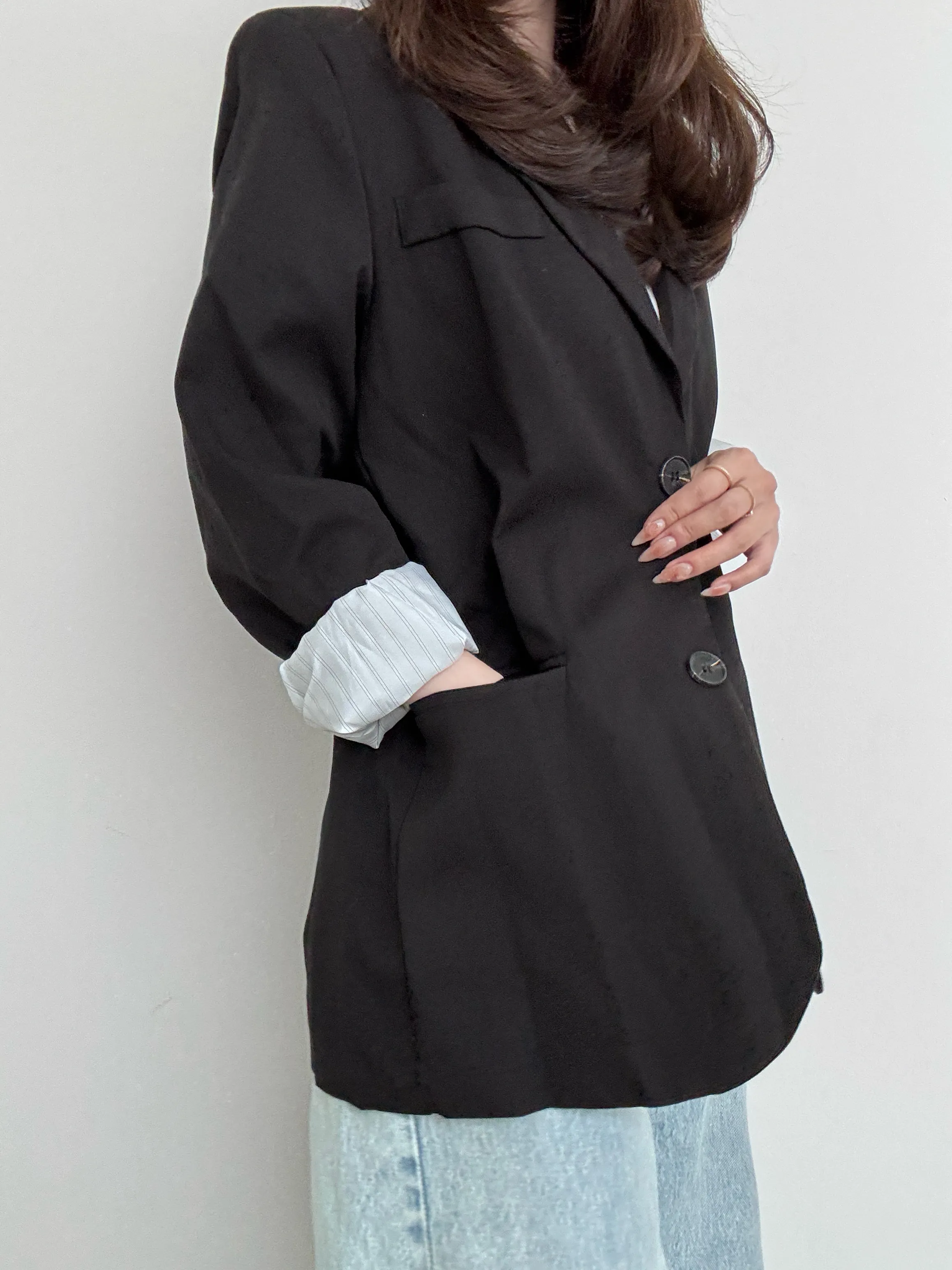 印象的なテーラードジャケット。