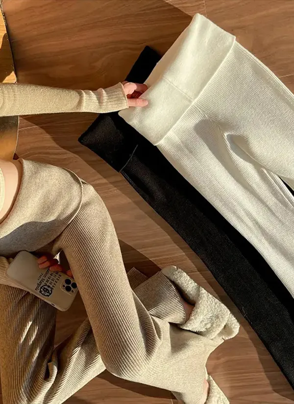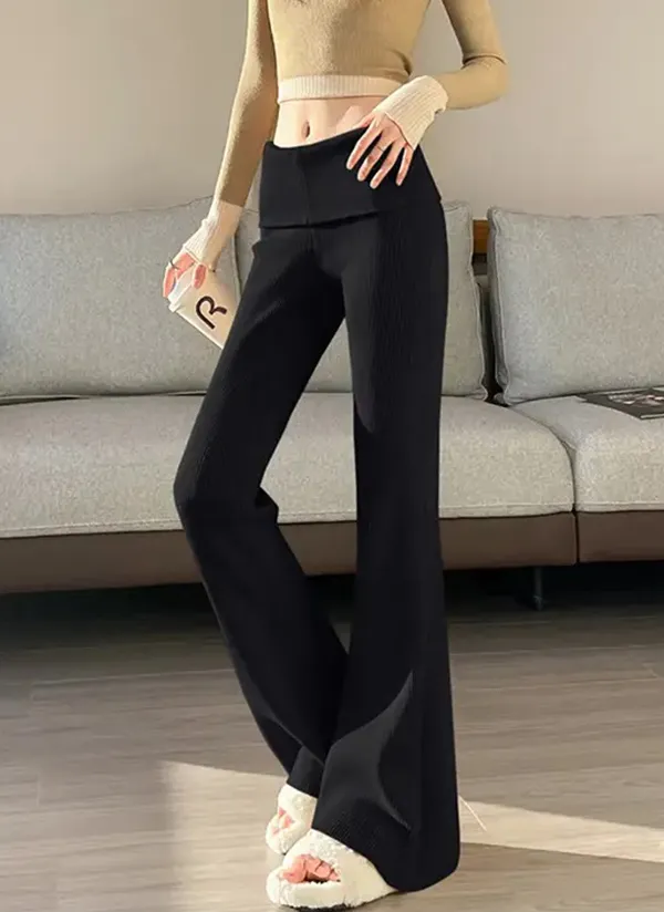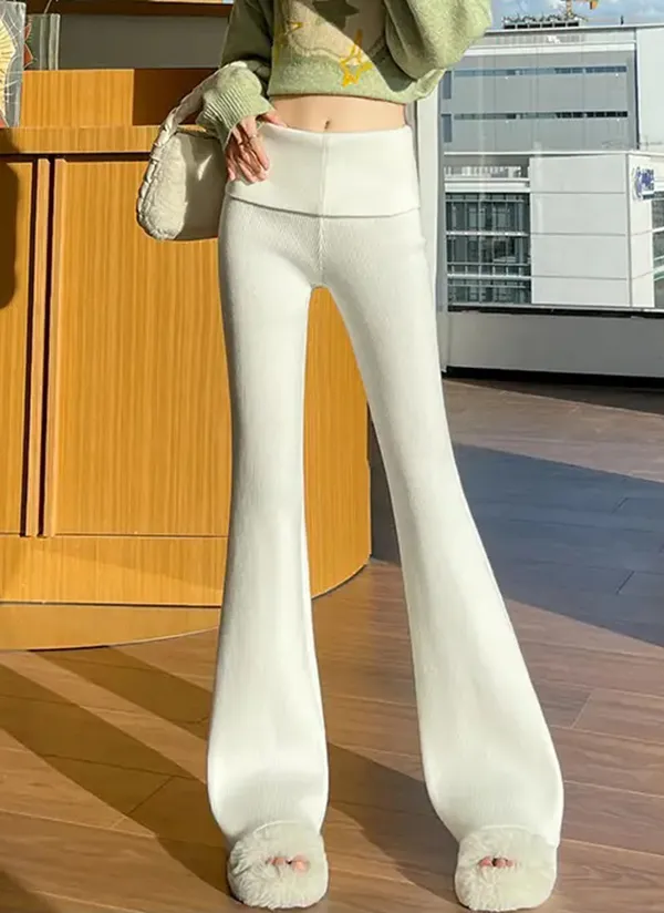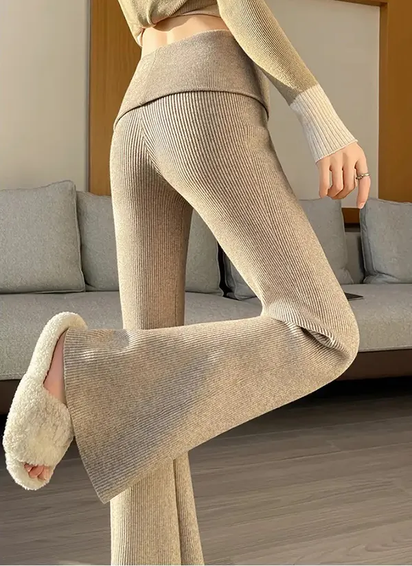 リブハイウエストブーツカットパンツニット・V1943301