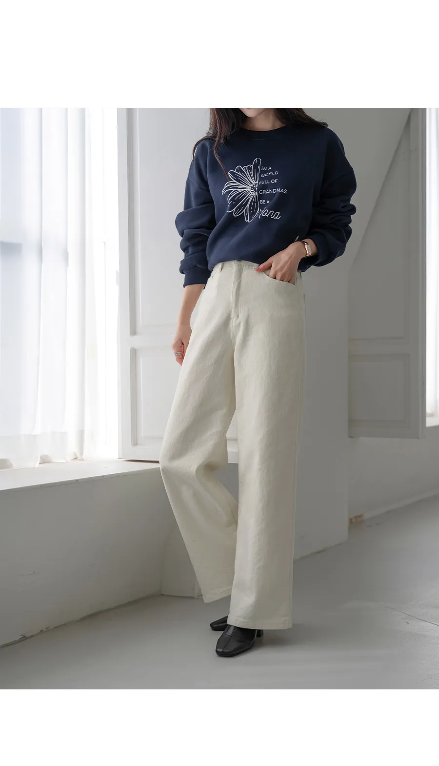 | Size | ウエスト | ヒップ | 裾幅 | わたり | 股上 | 着丈 |
