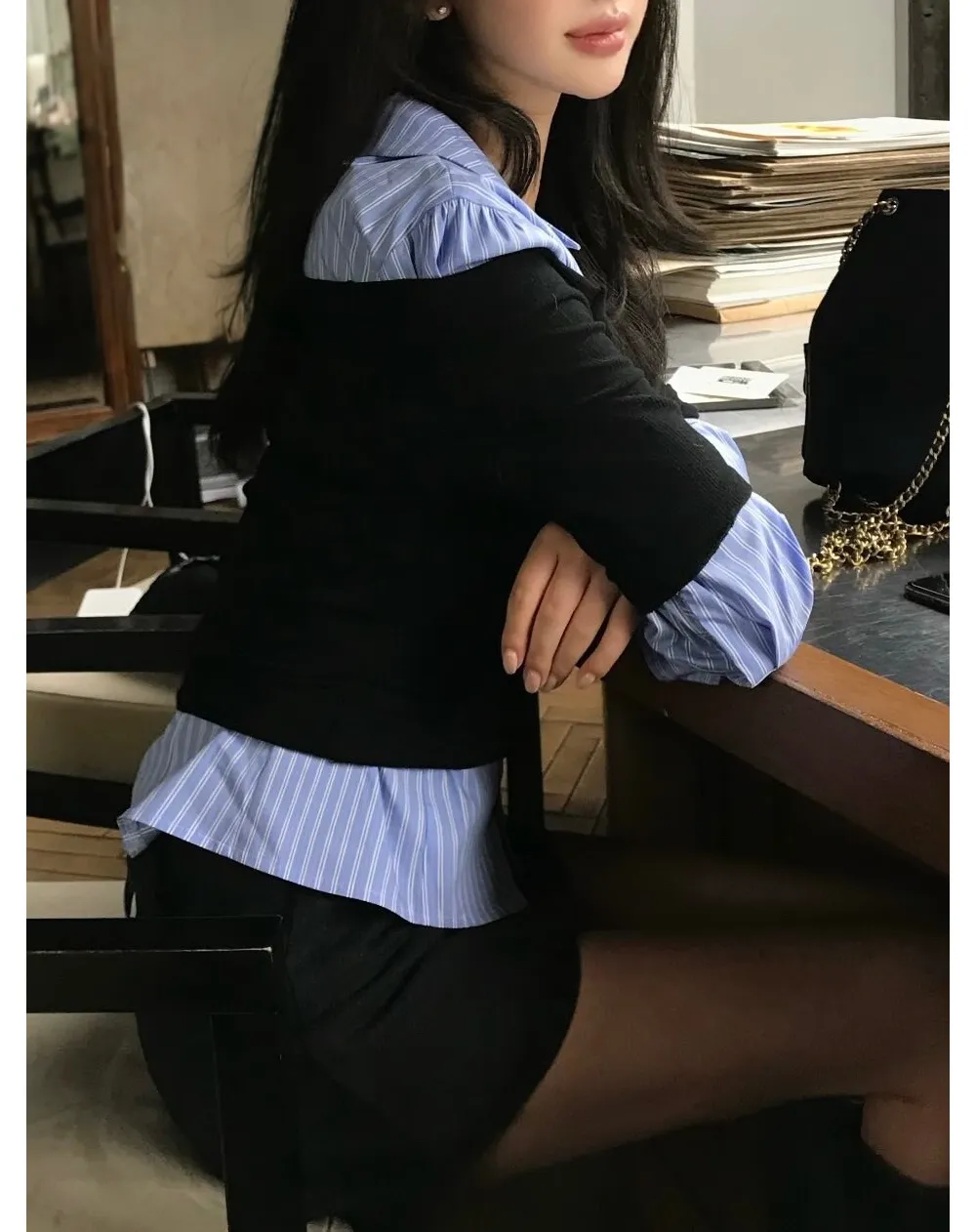 着用 : アイボリー / FREE,ストライプ / FREE