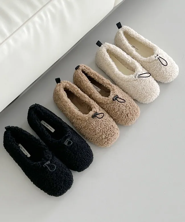 ボア裏起毛リボンメリージェーンフラットシューズ