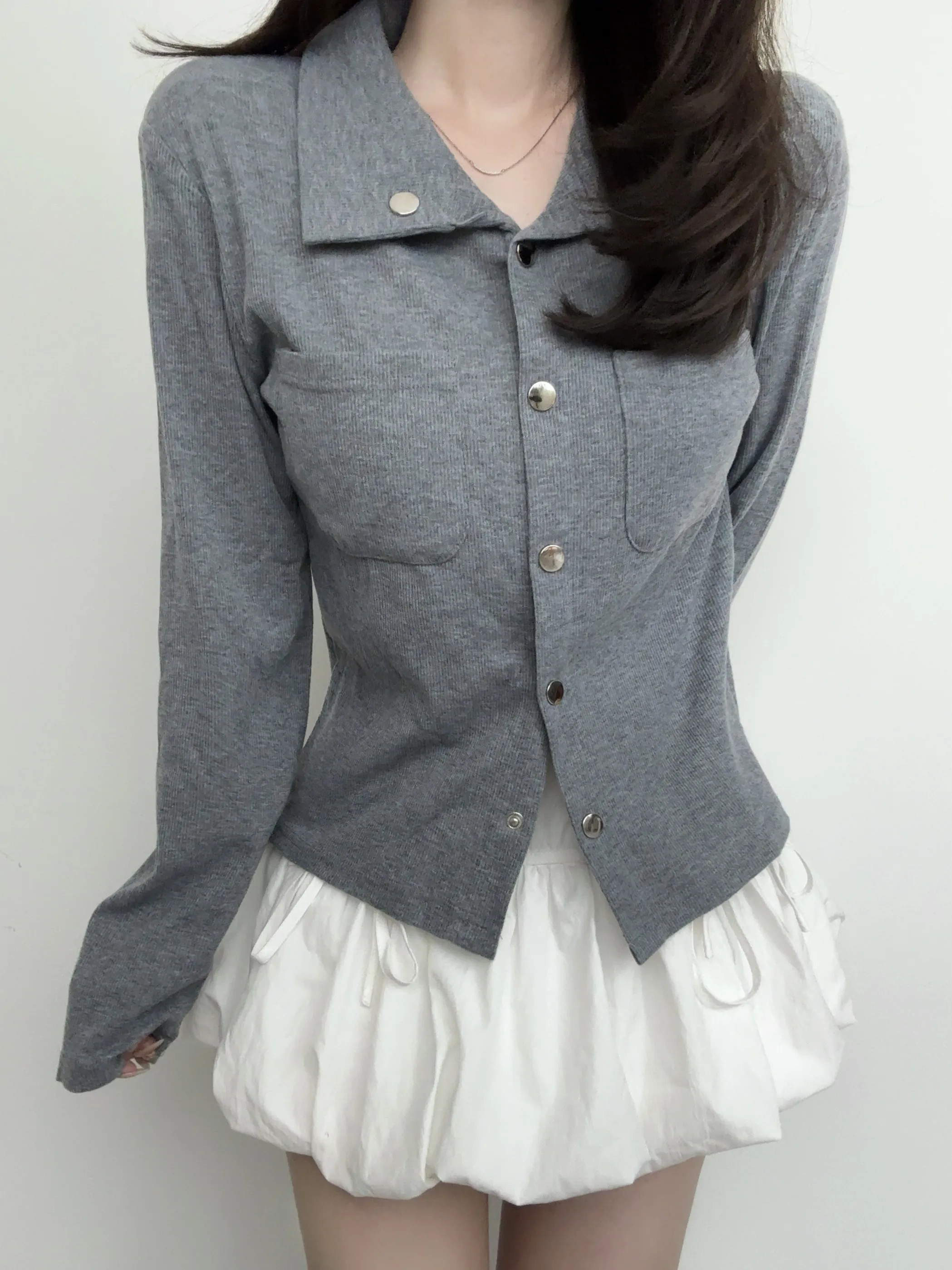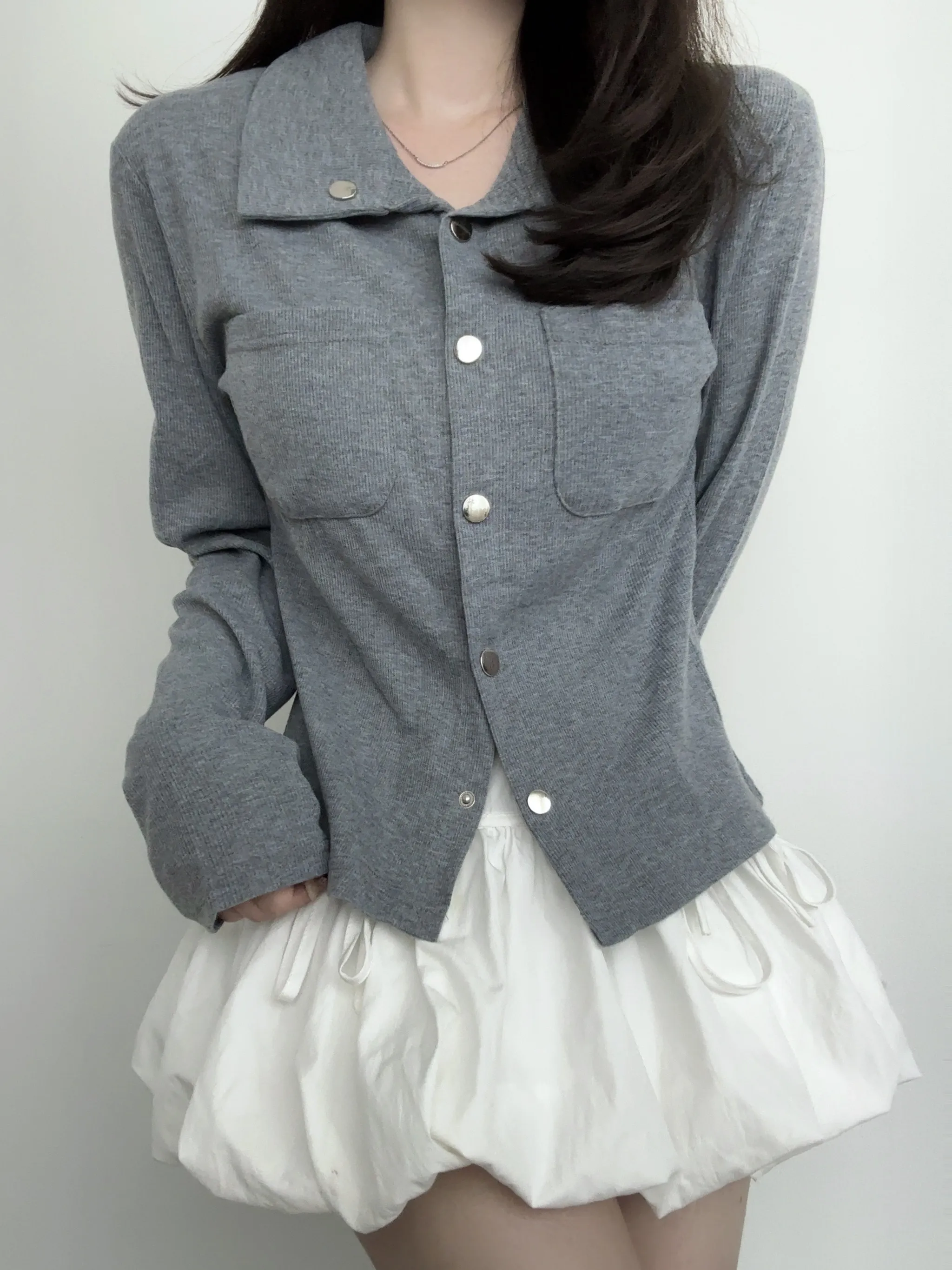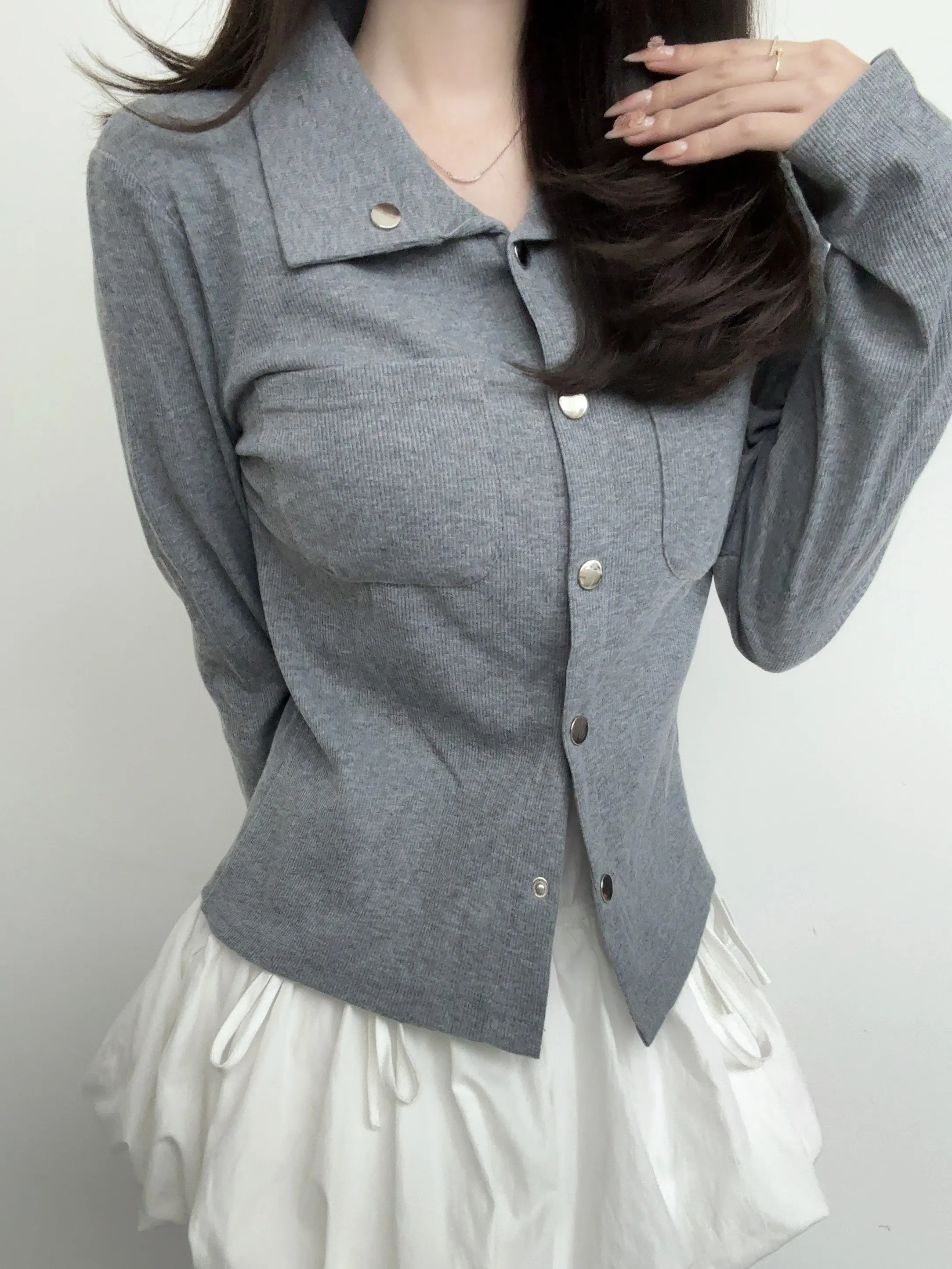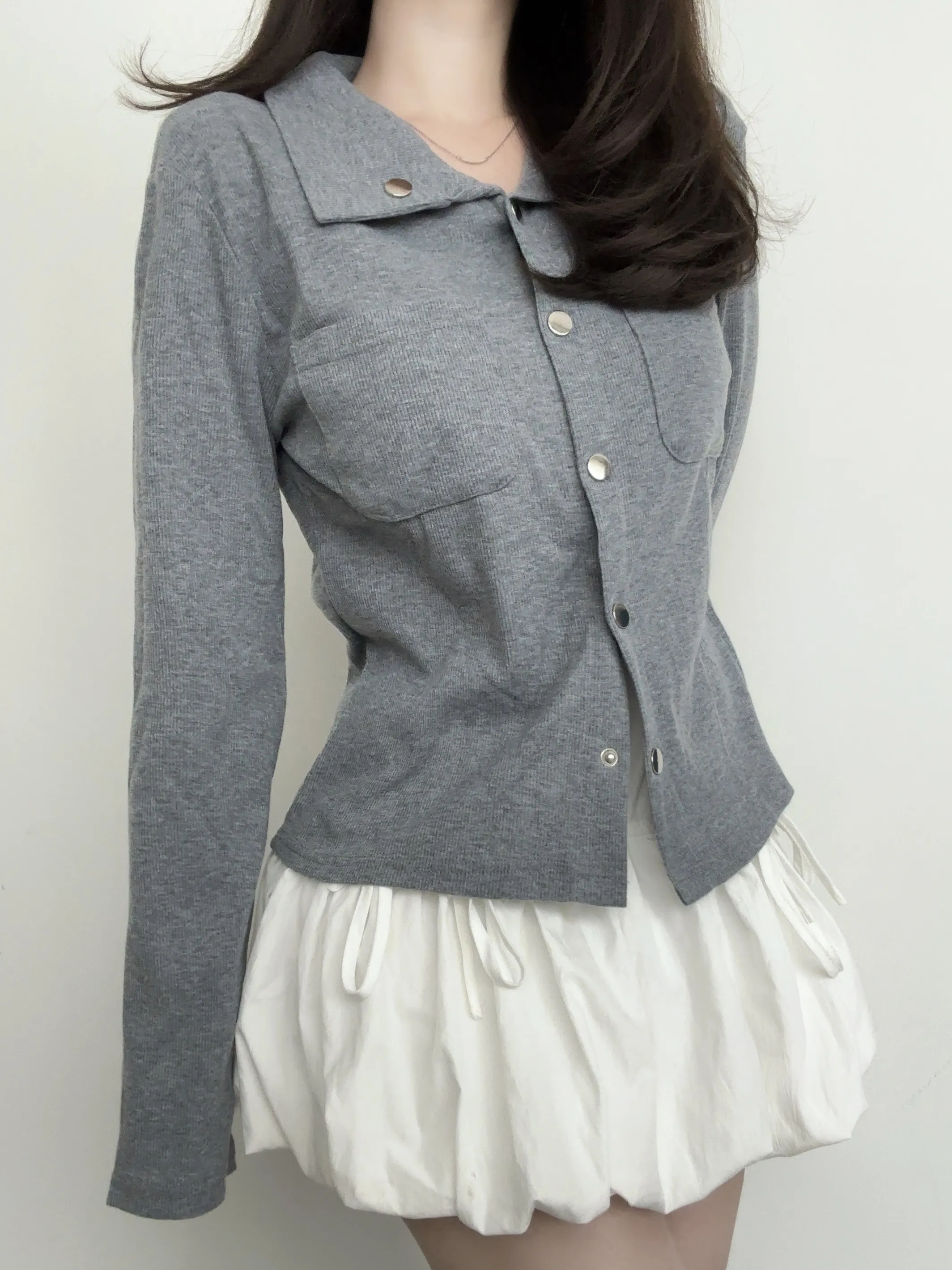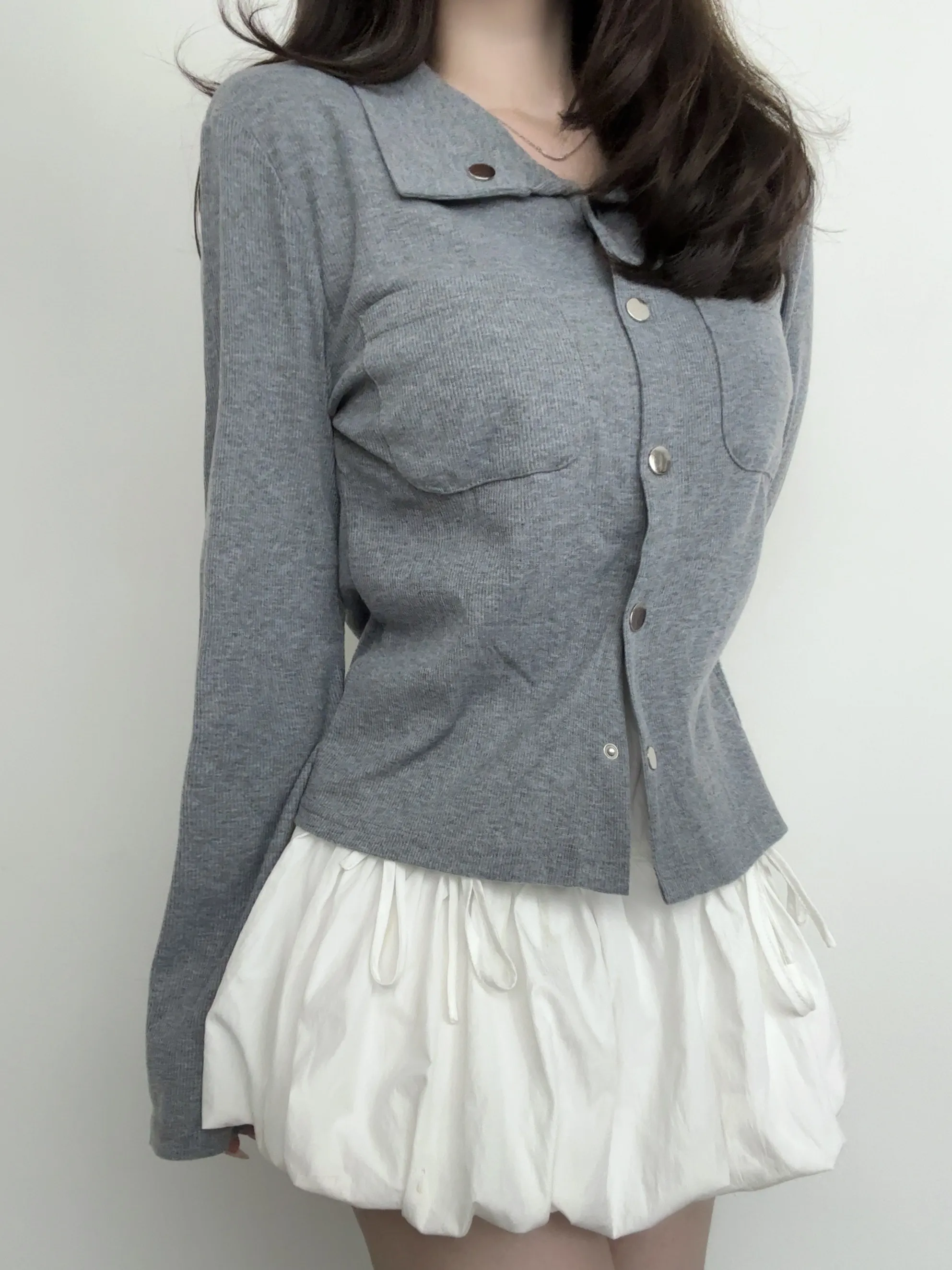 ボタンをはずして、トレンドの肌見せスタイルでヘルシーな着こなしに!