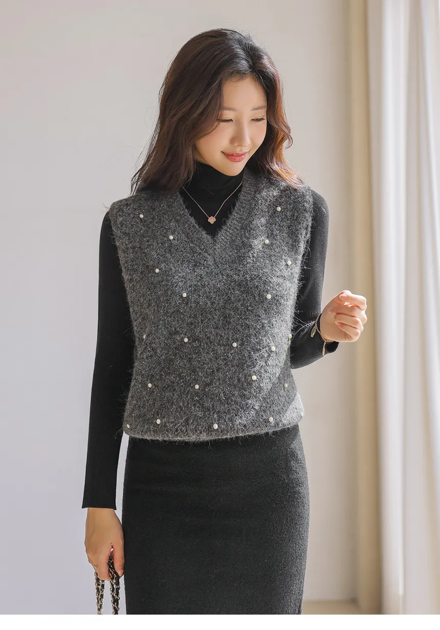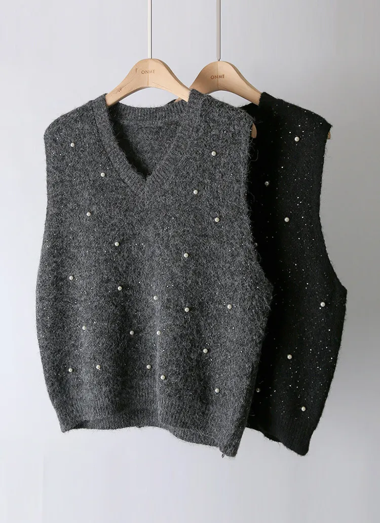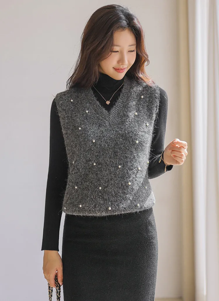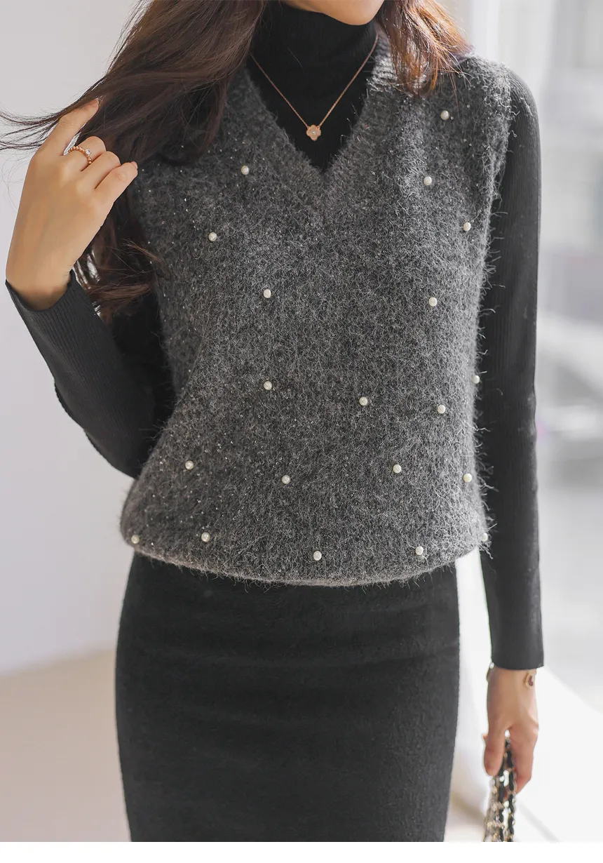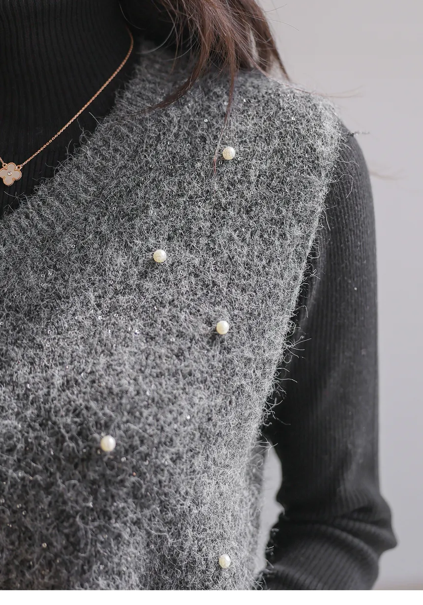 ウール混アンゴラ混Vネックビスチェ