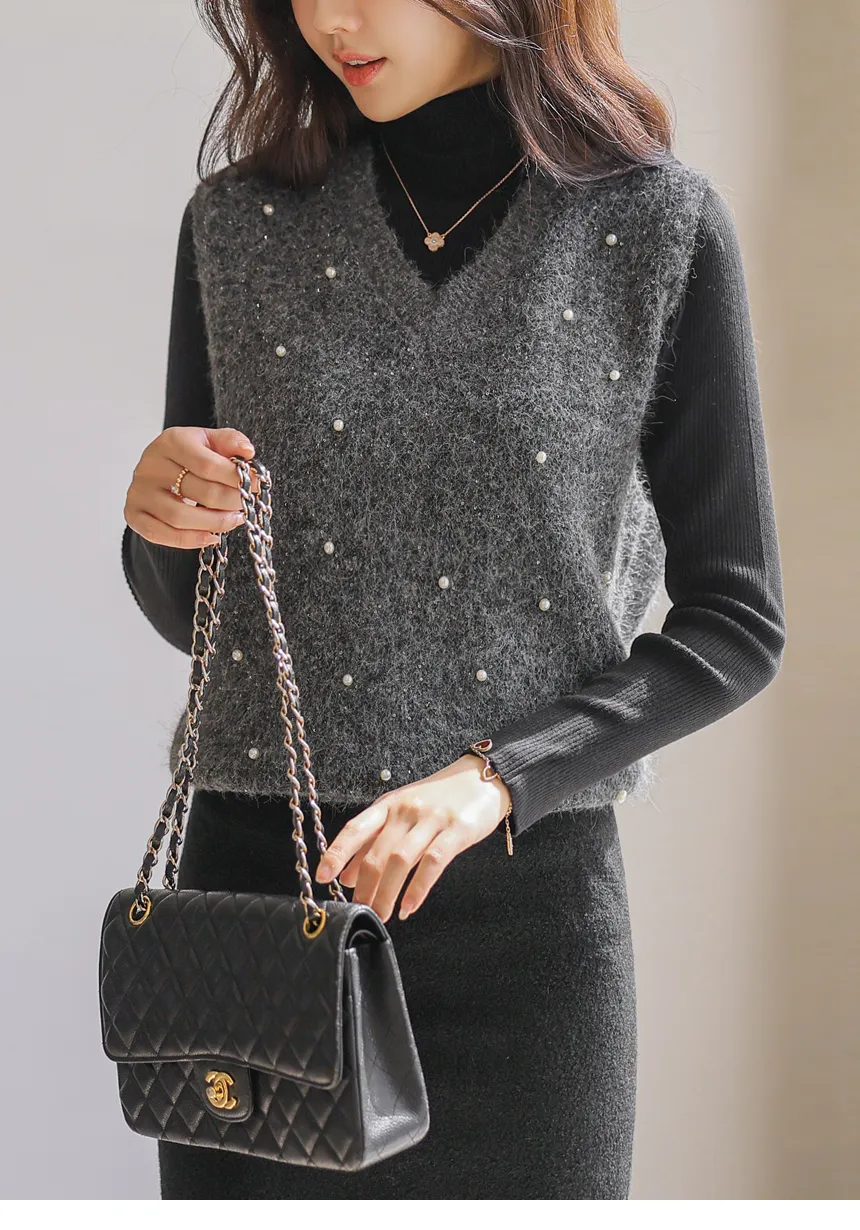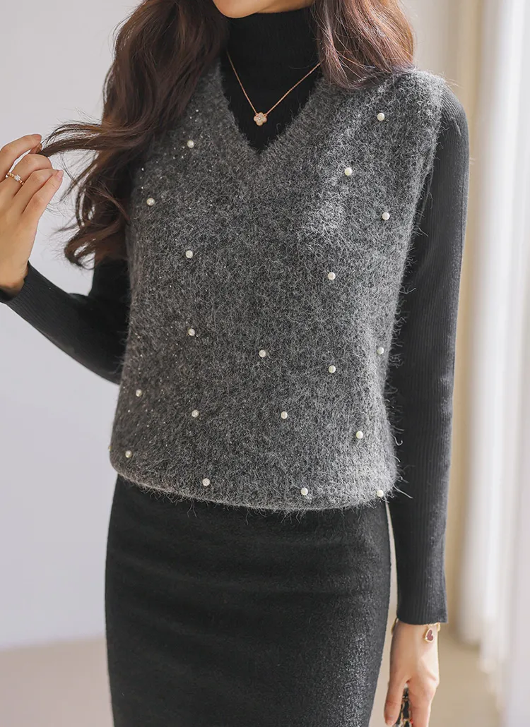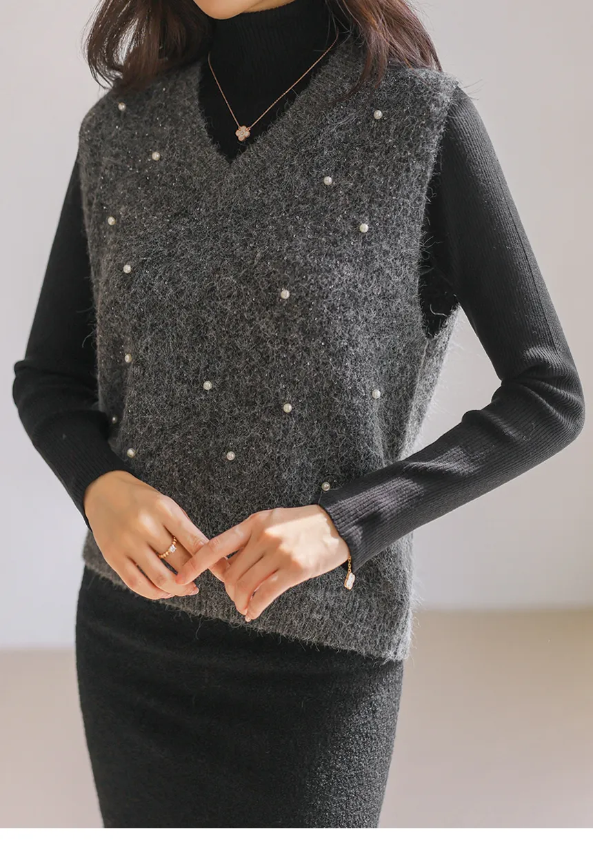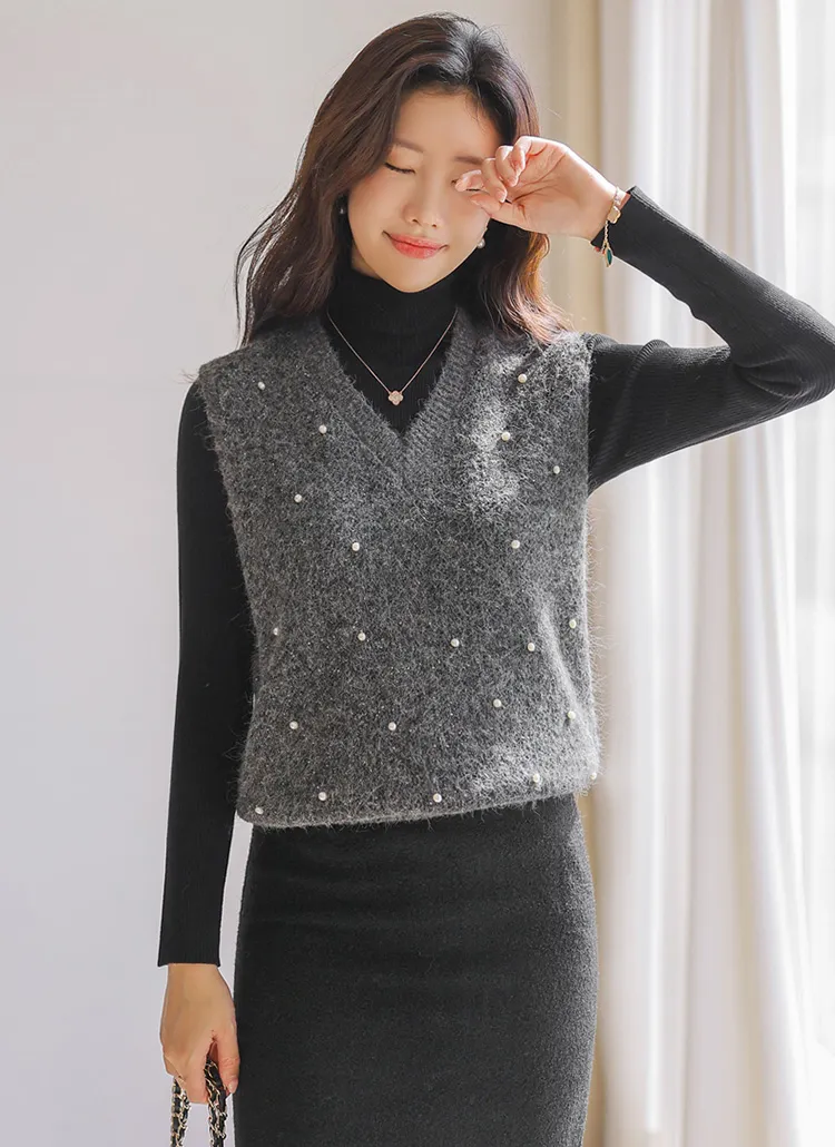 ウール混アンゴラ混Vネックビスチェ